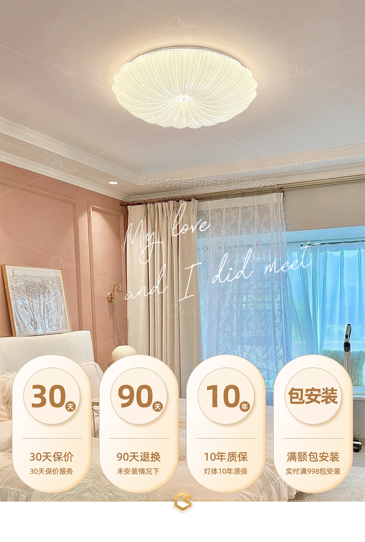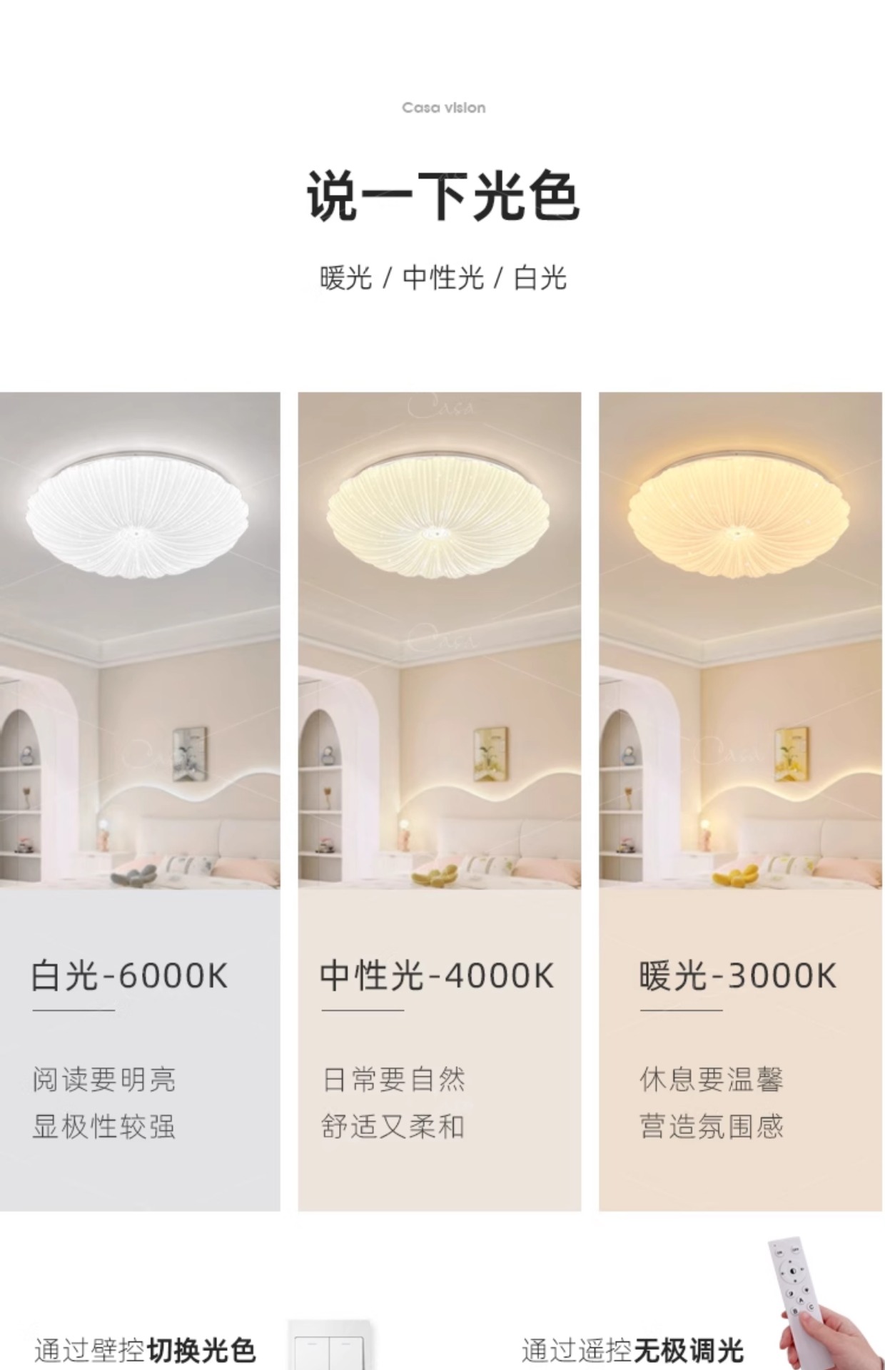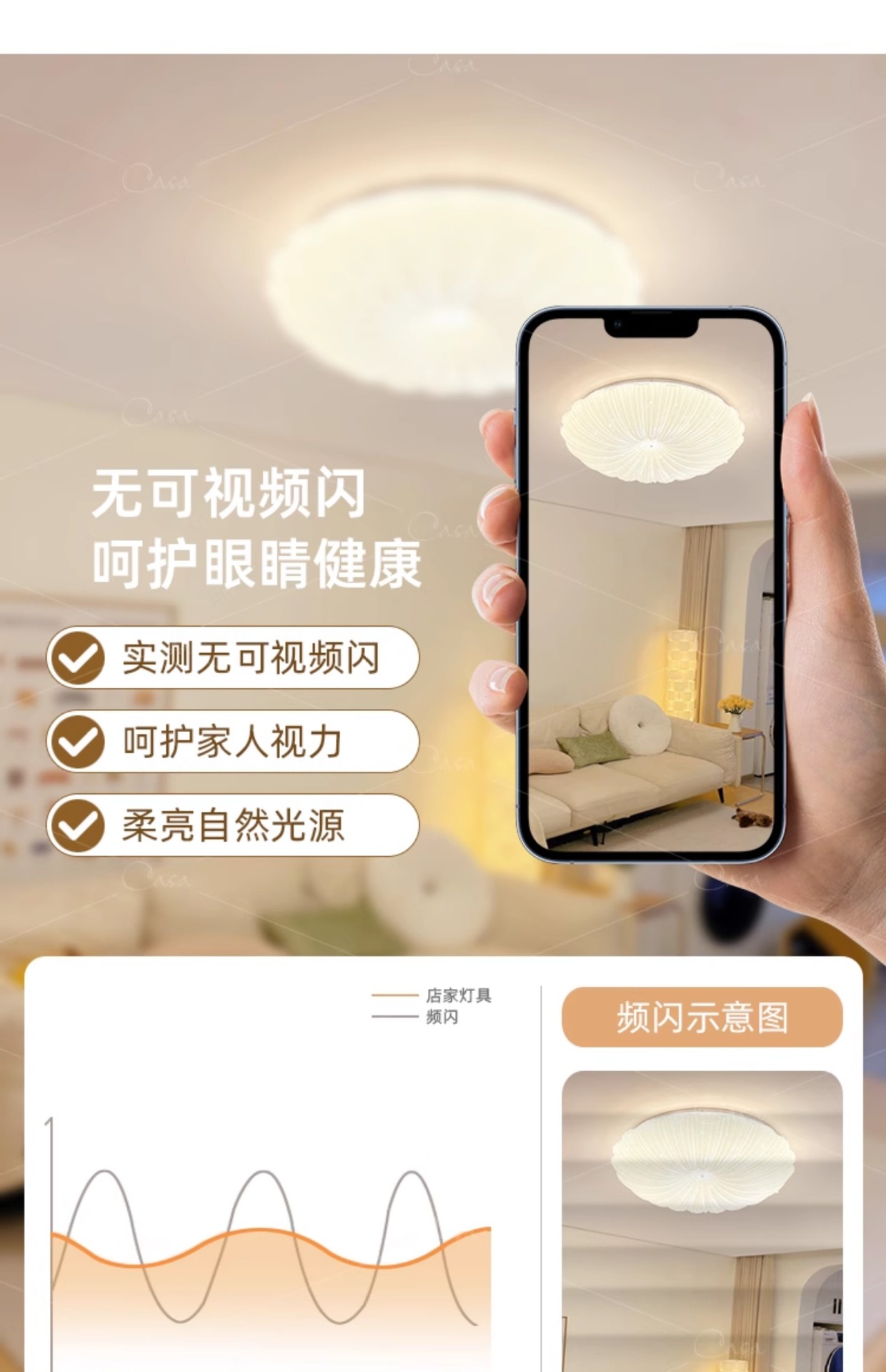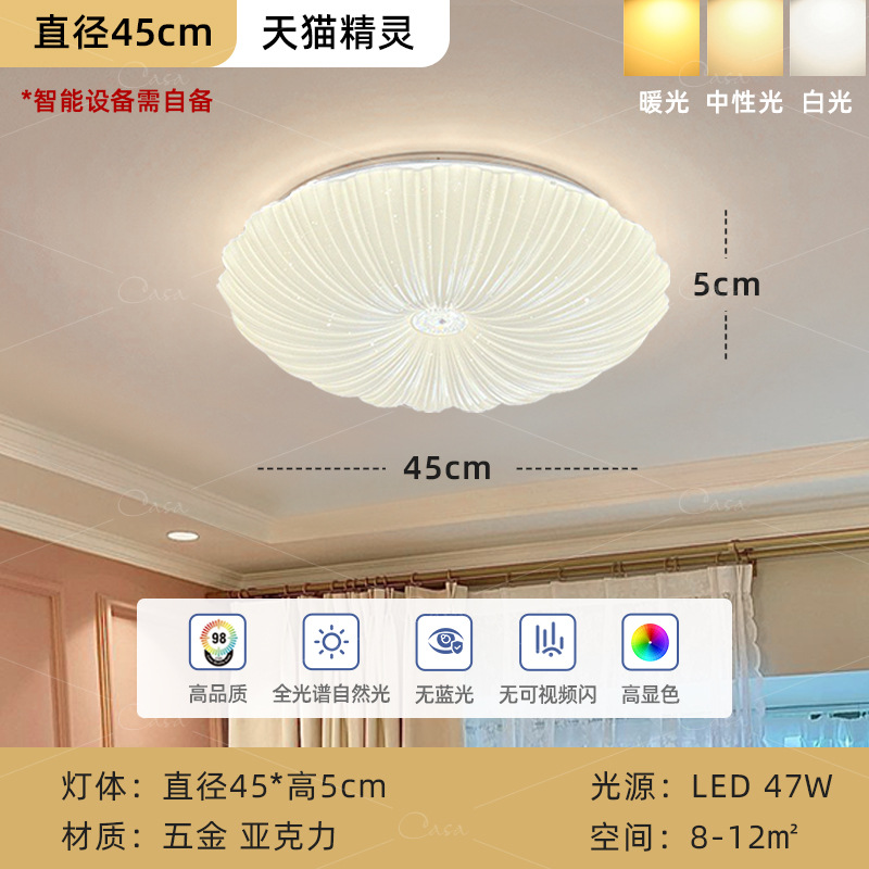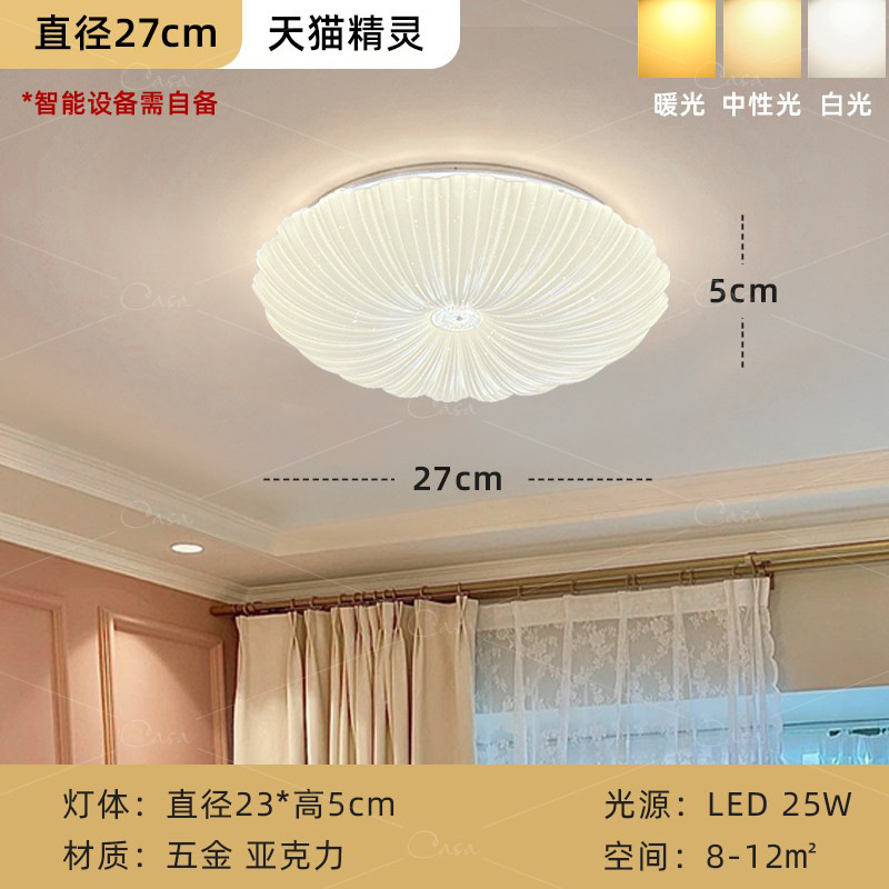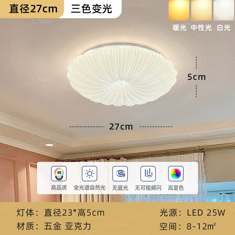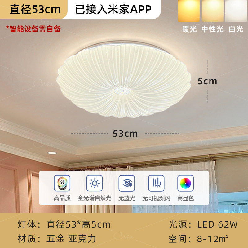 全光谱奶油风贝壳客厅吸顶灯现代简约护眼儿童房卧室led灯具 casa