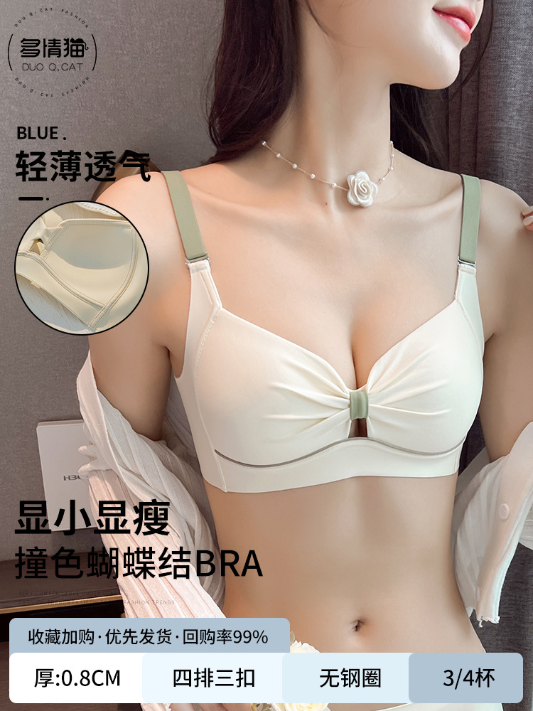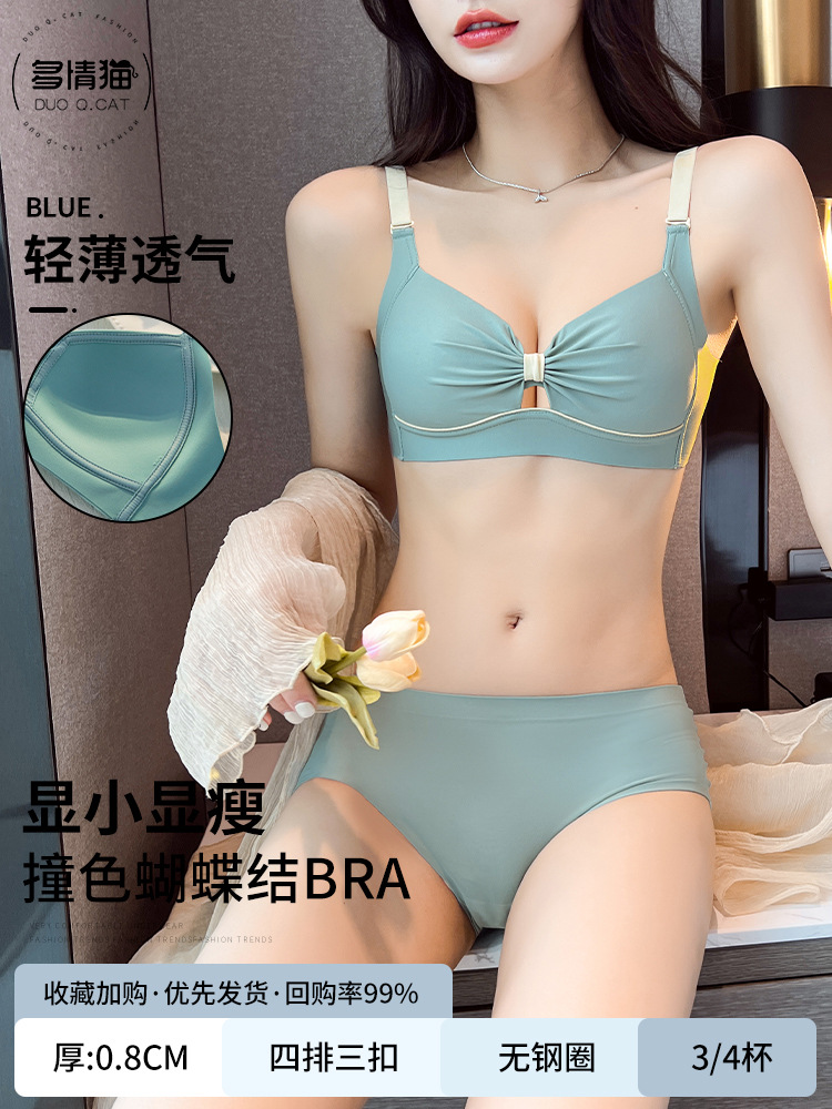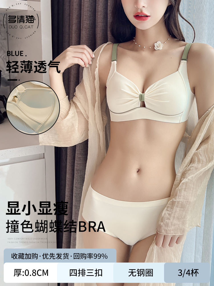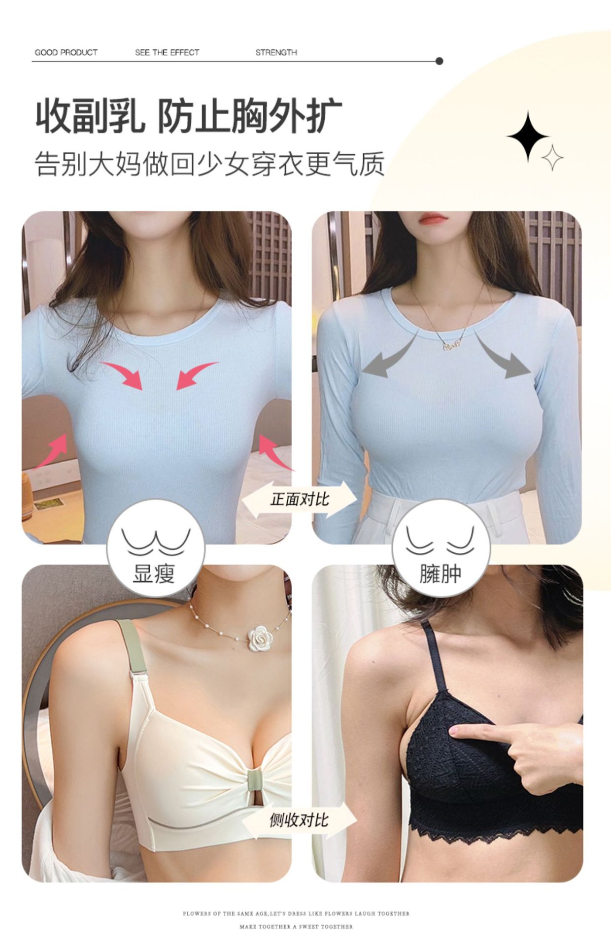 内衣女士夏薄款无钢圈胸大显小胸聚拢无痕防下垂收副乳文胸罩套装