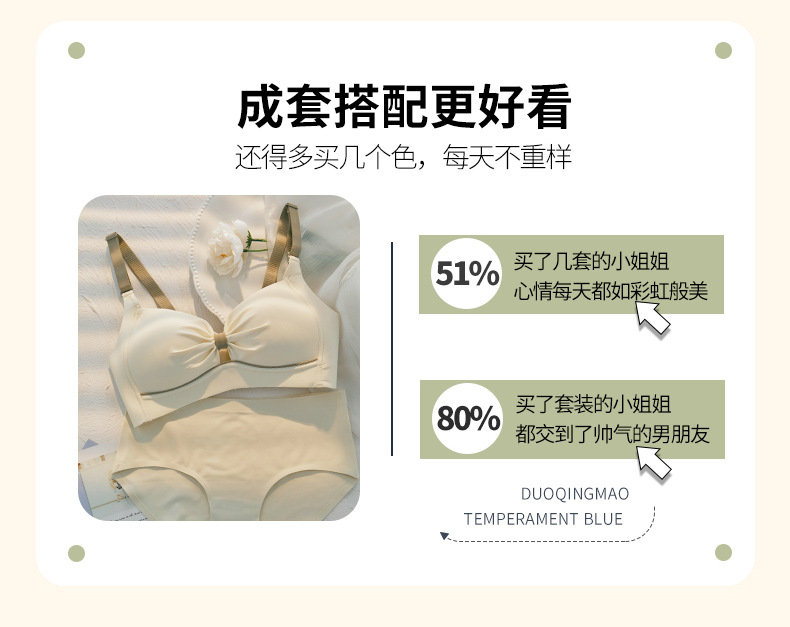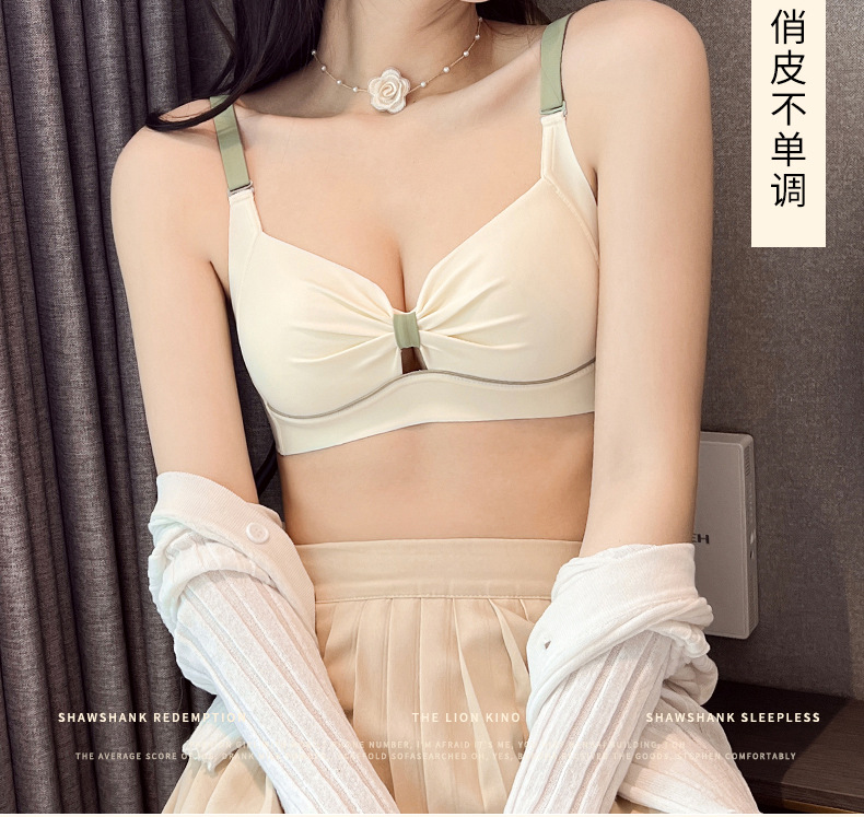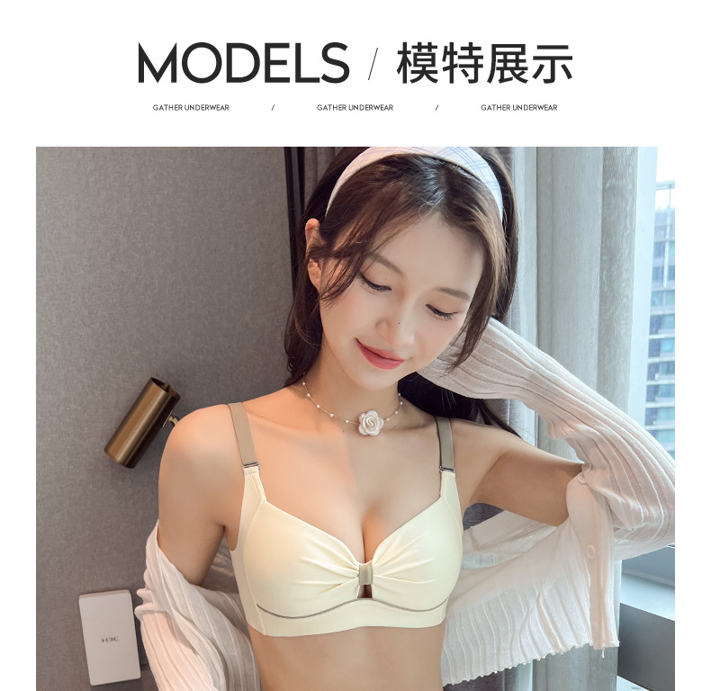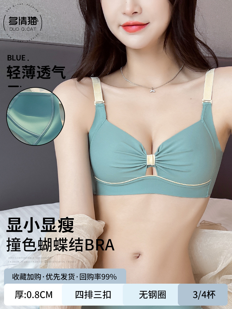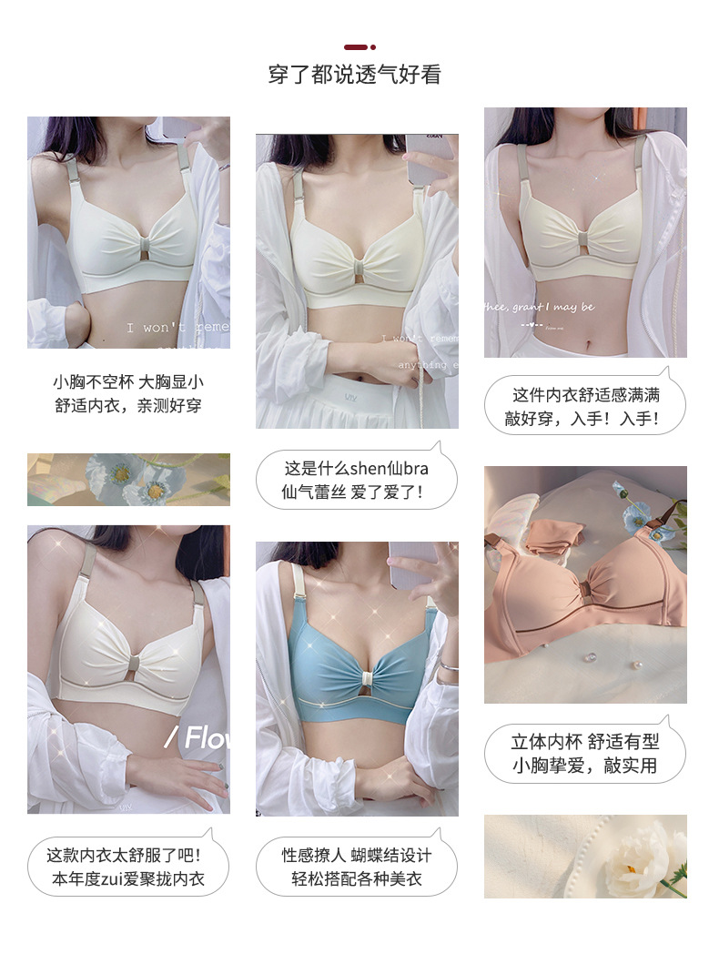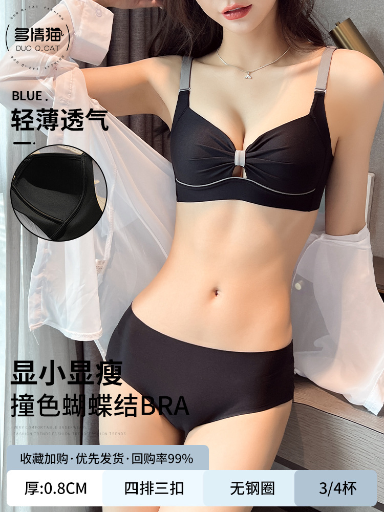 内衣女士夏薄款无钢圈胸大显小胸聚拢无痕防下垂收副乳文胸罩套装