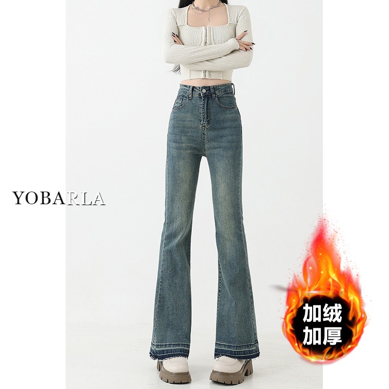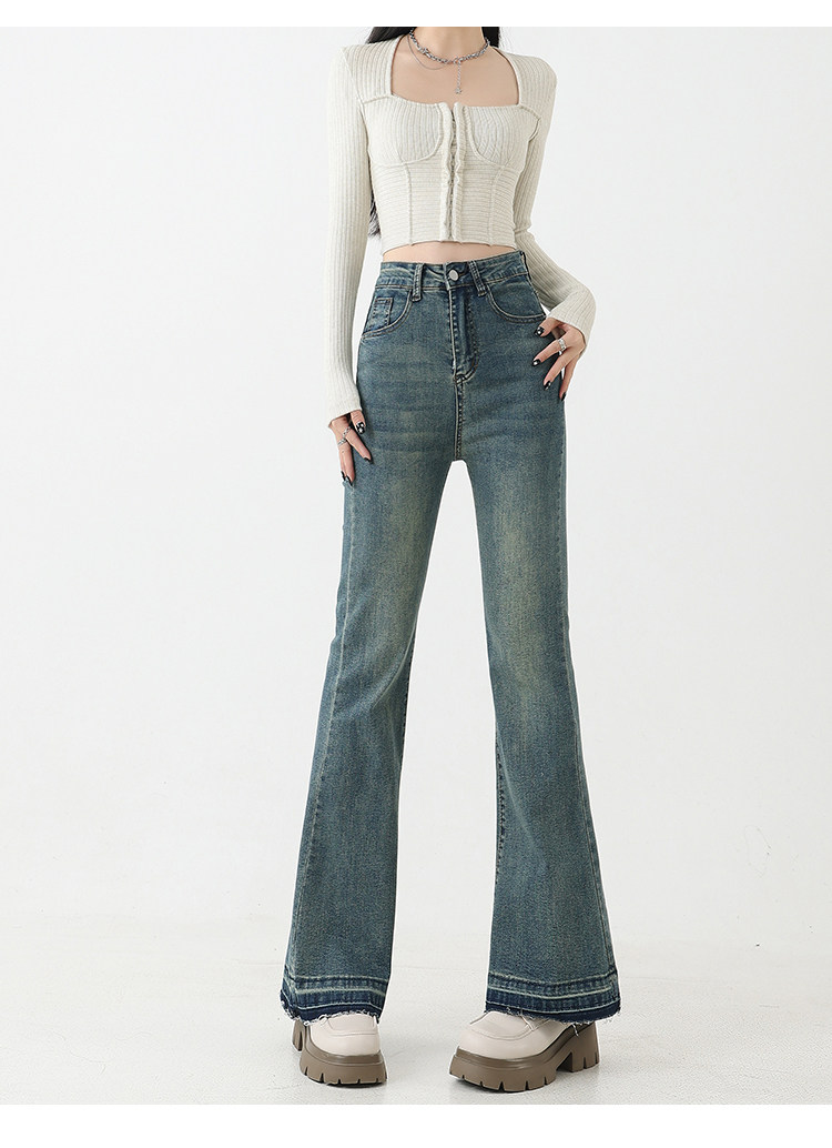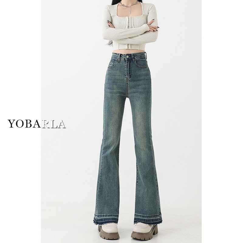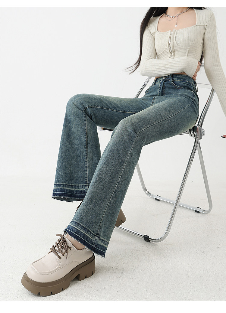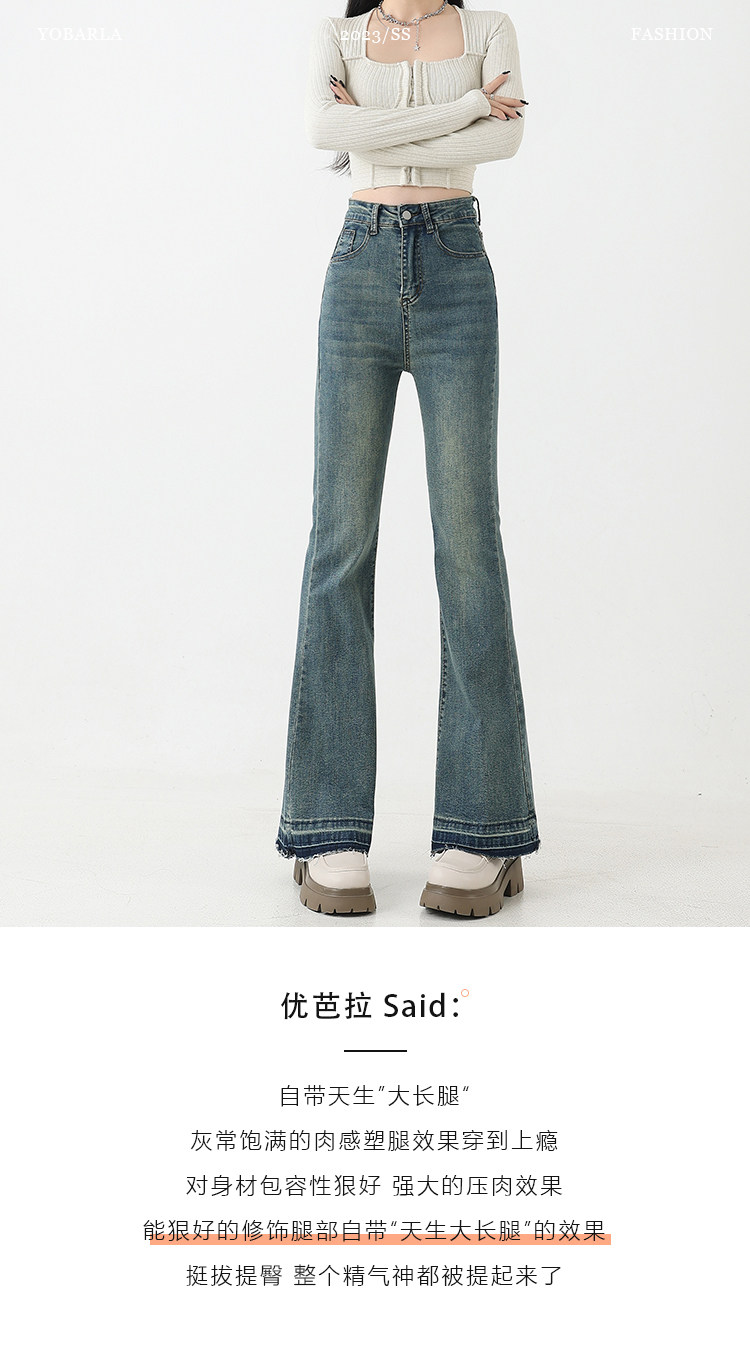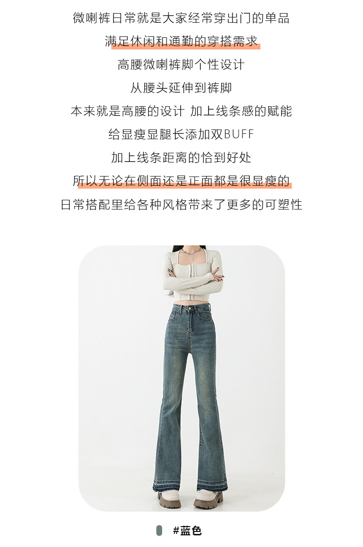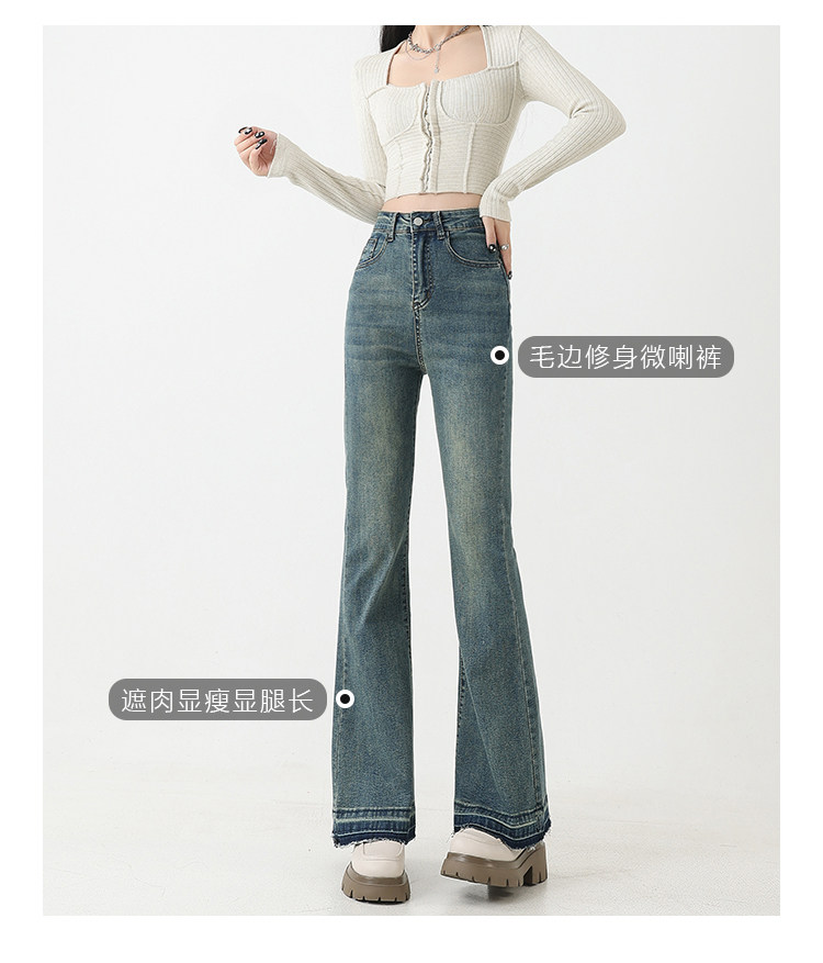 复古微喇牛仔裤女秋季新款高腰弹力大码显瘦胖mm梨形身材马蹄裤子