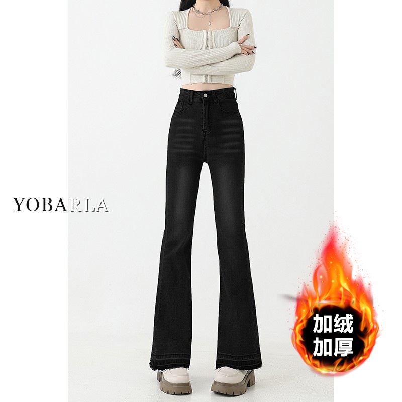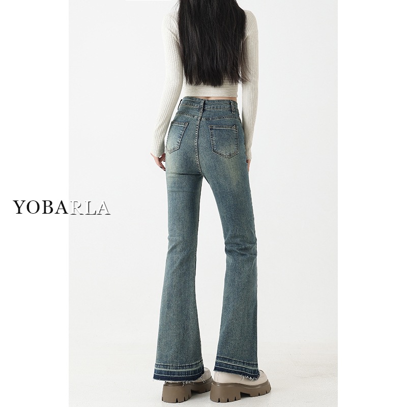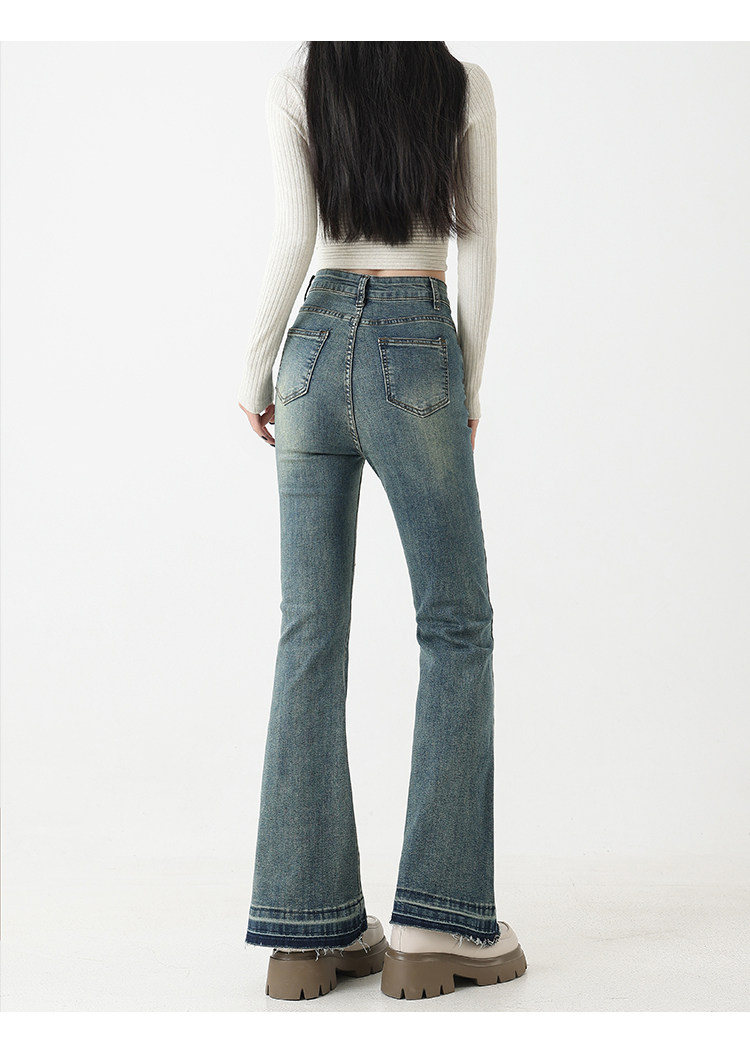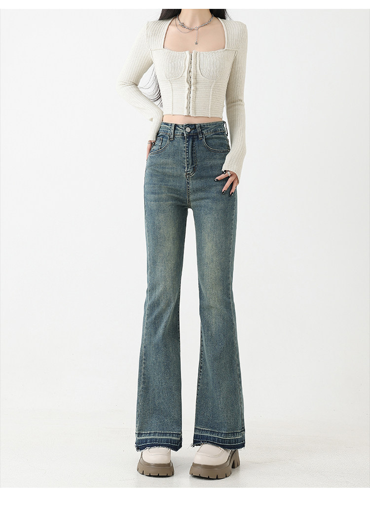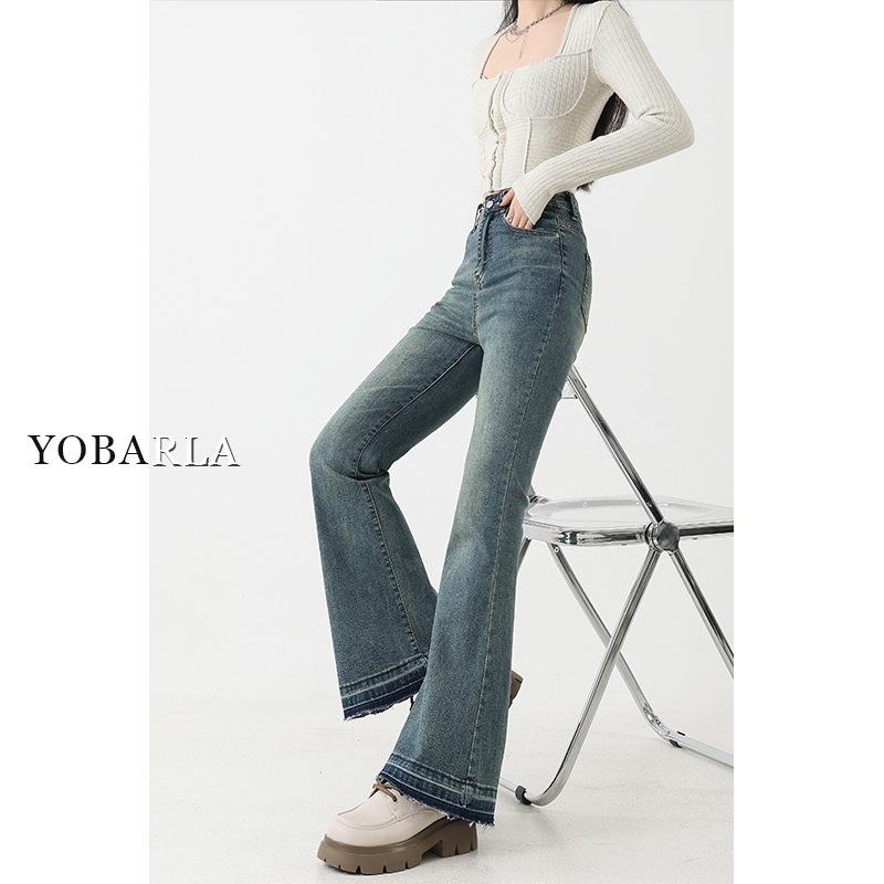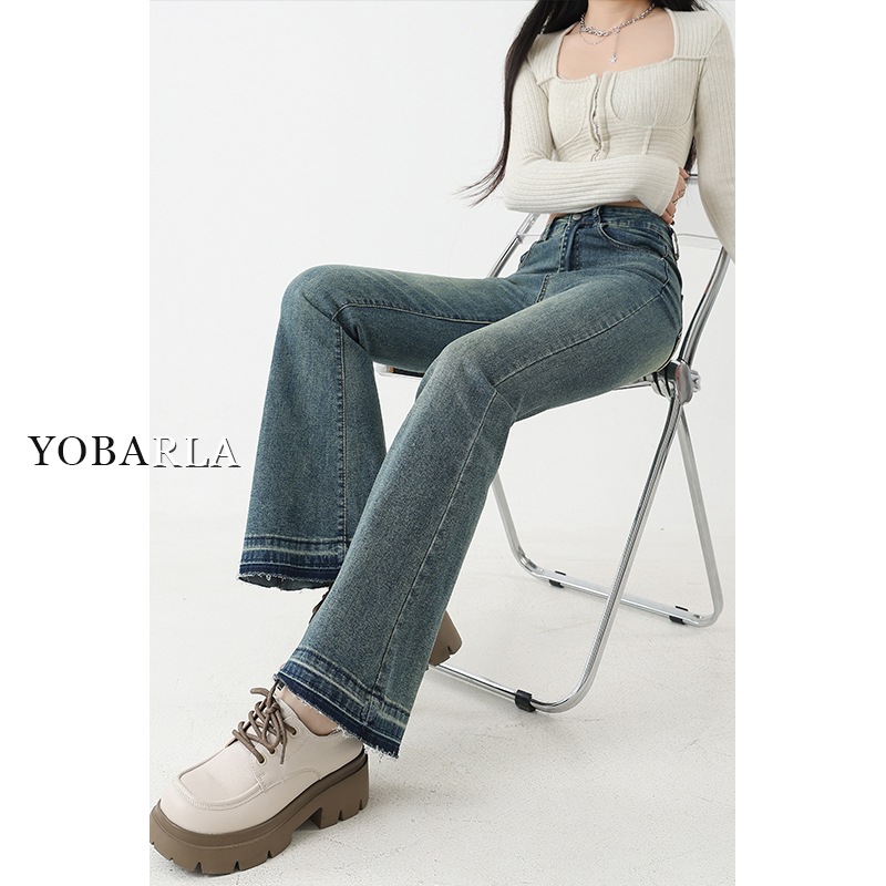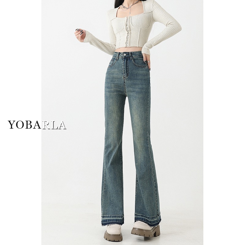 复古微喇牛仔裤女秋季新款高腰弹力大码显瘦胖mm梨形身材马蹄裤子