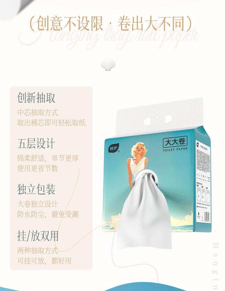 植护卷纸8大卷整箱纸巾商用卫生纸家用厕纸一件代发悬挂式卷筒纸