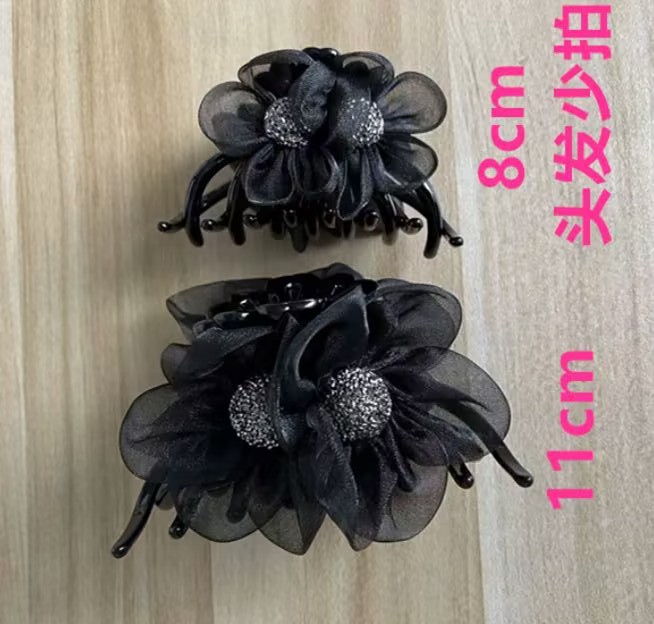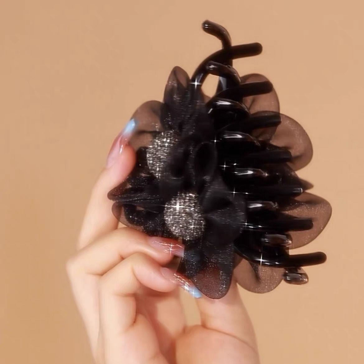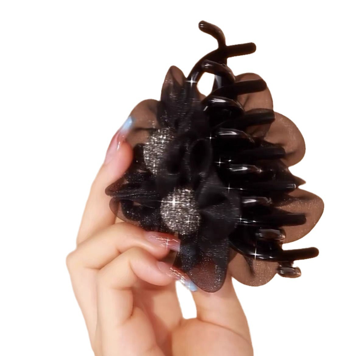 太阳花抓夹后脑勺发抓盘发发夹网纱花朵夹子轻奢头饰简约百搭跨境