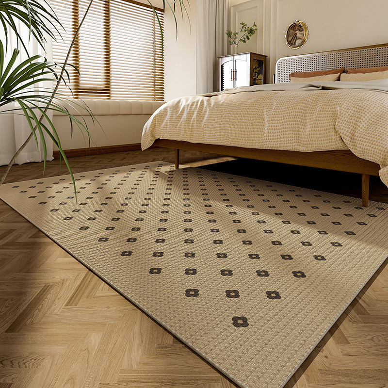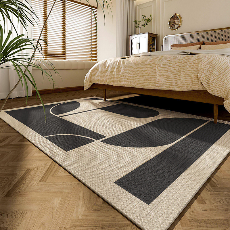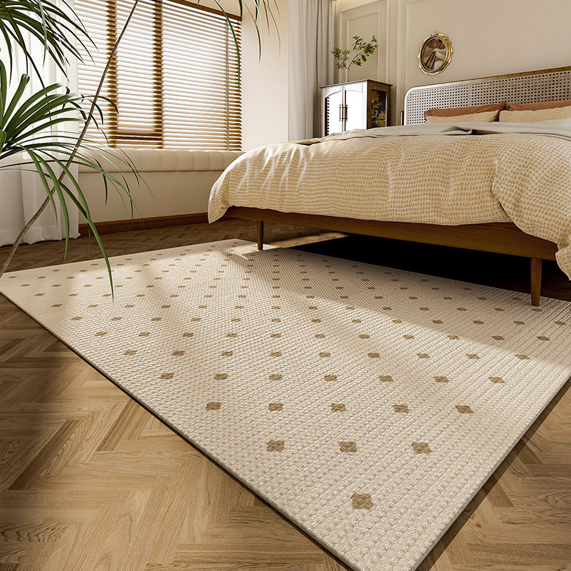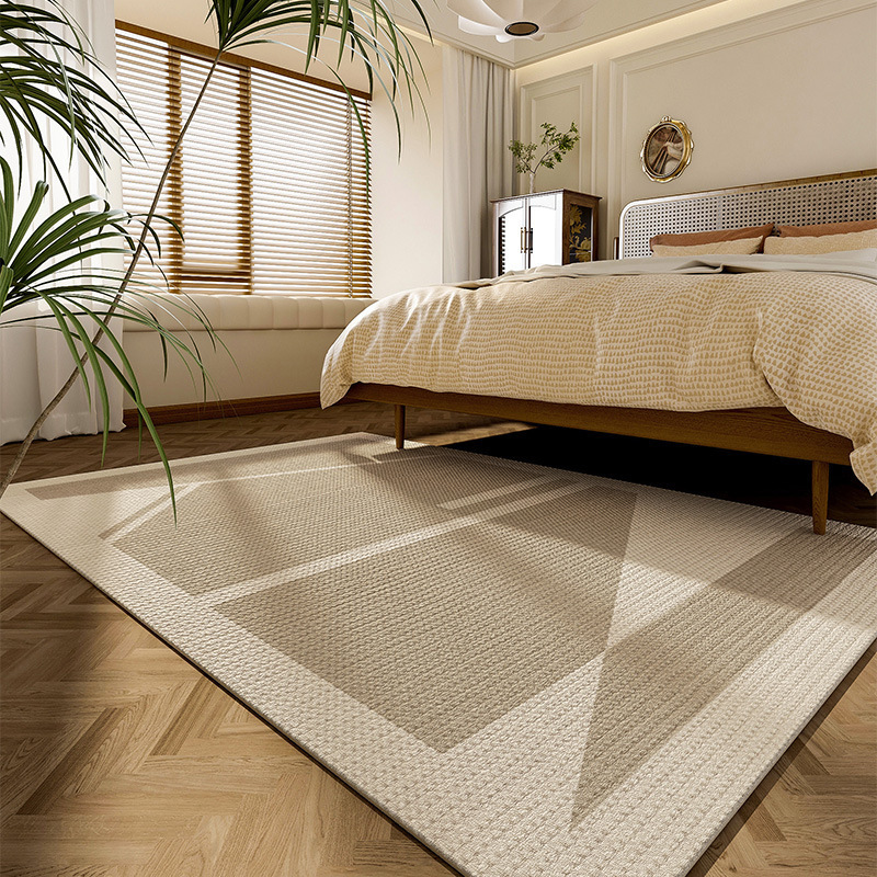 法式简约客厅地毯 耐脏防水易打理高级感圈绒棉麻可水洗卧室地垫