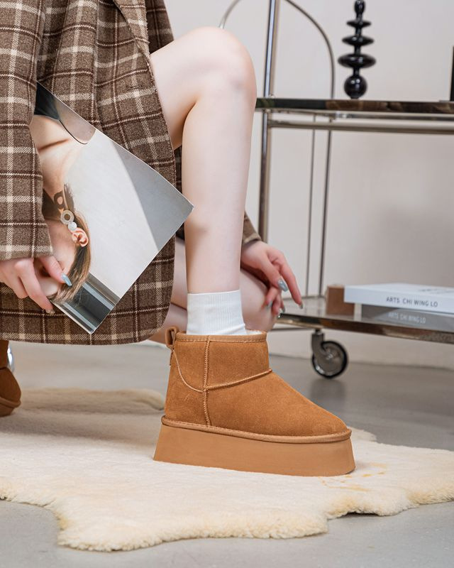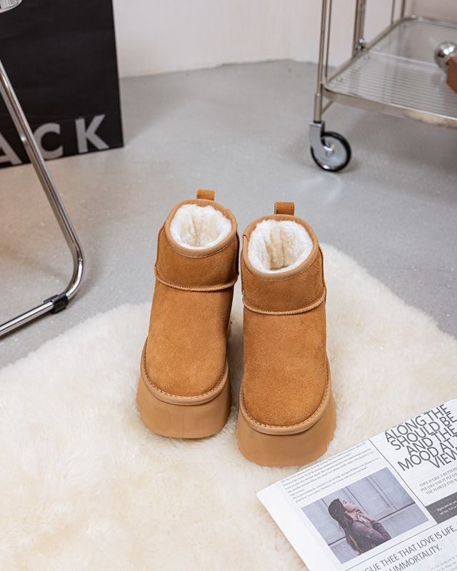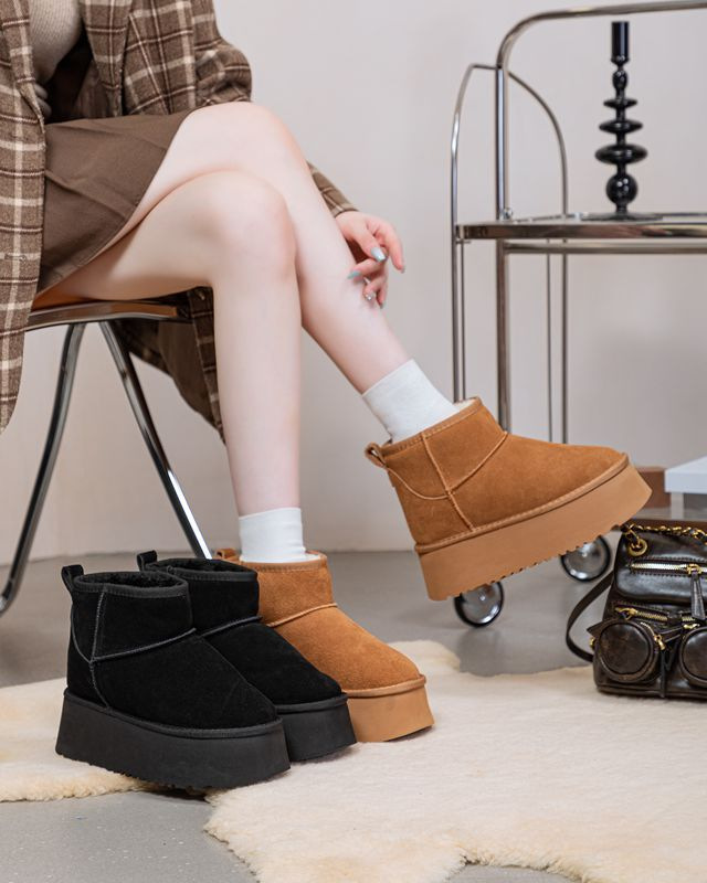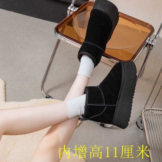 内增高11厘米松糕超轻厚底厚绒面包鞋冬季保暖周冬雨毛真皮雪地靴