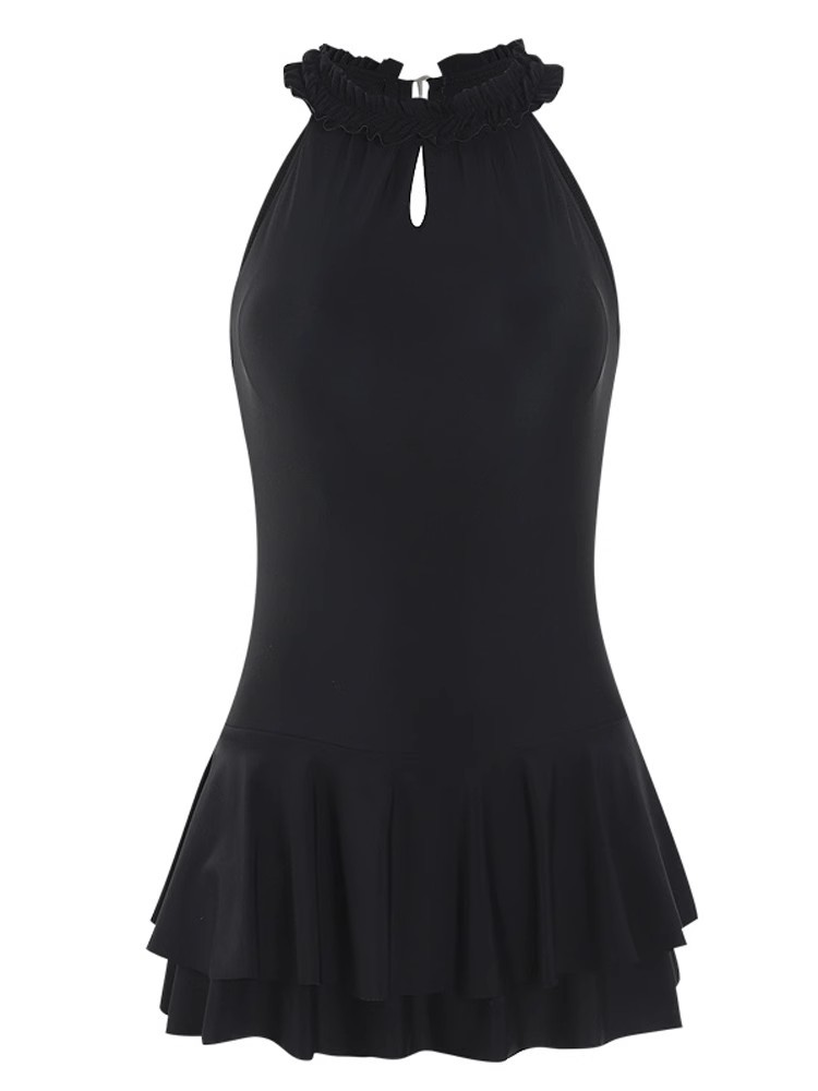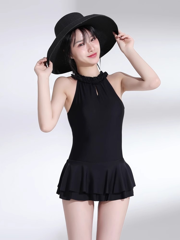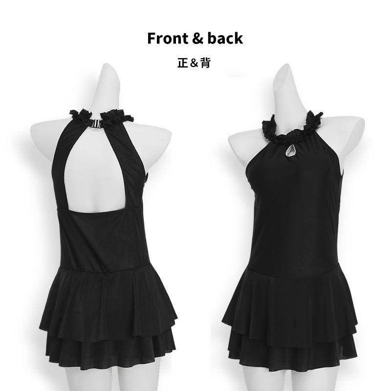 泳衣女新款连体韩系纯欲ins风裙式遮肚显瘦露背纯黑色泡温泉泳装