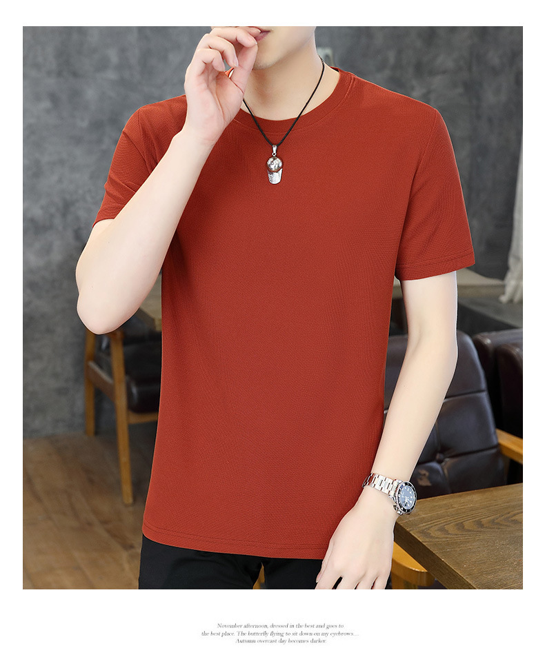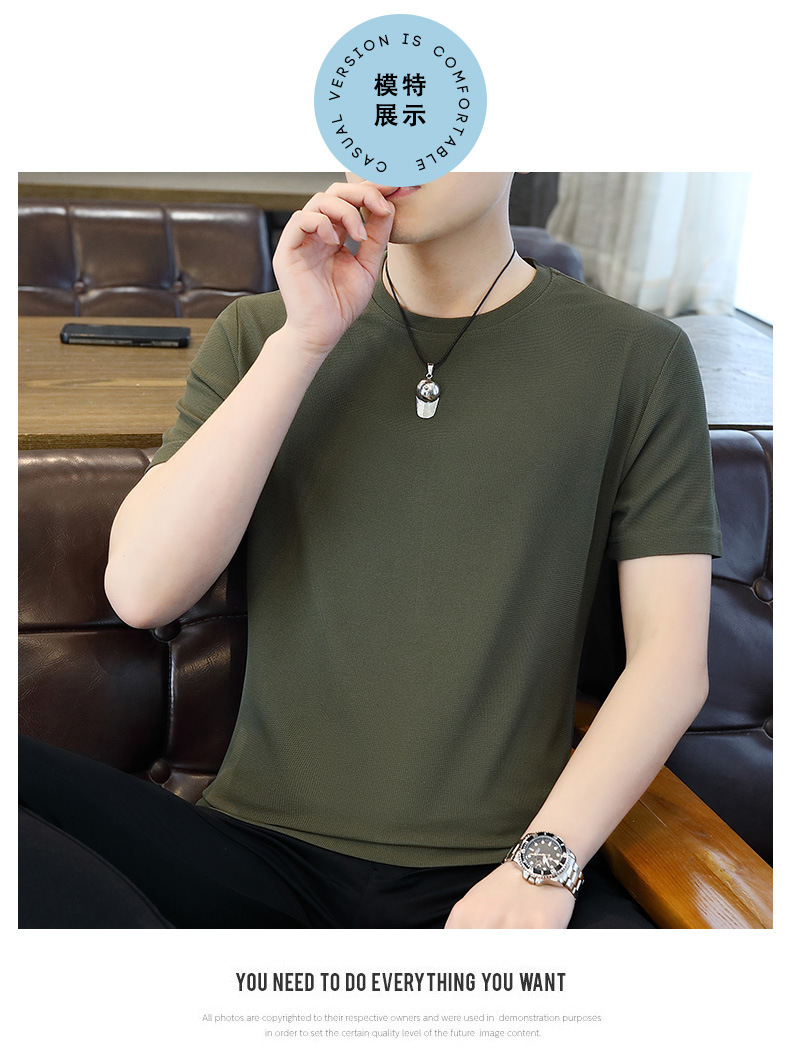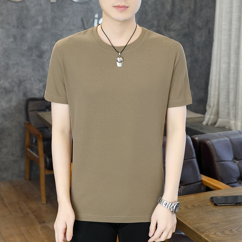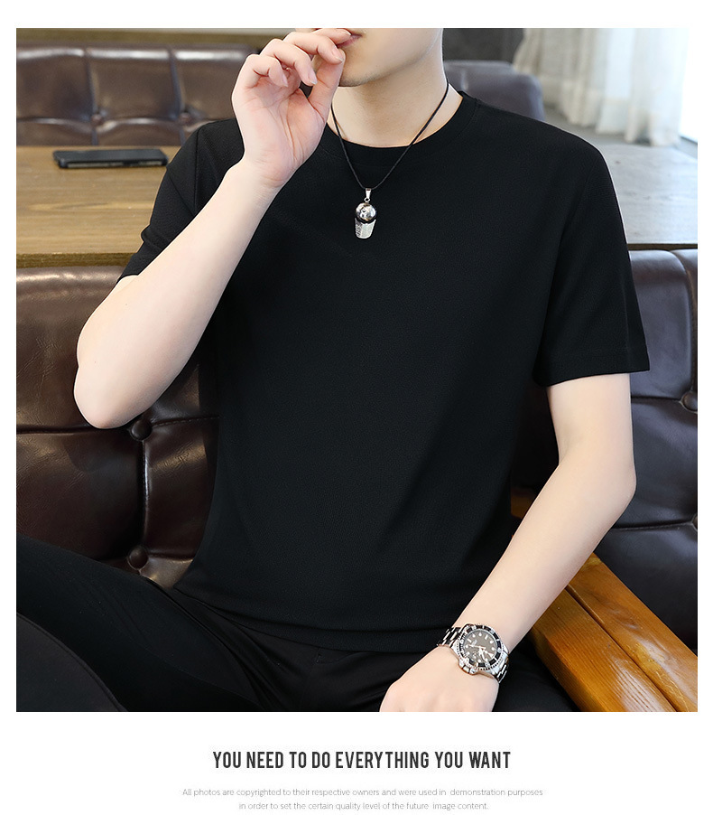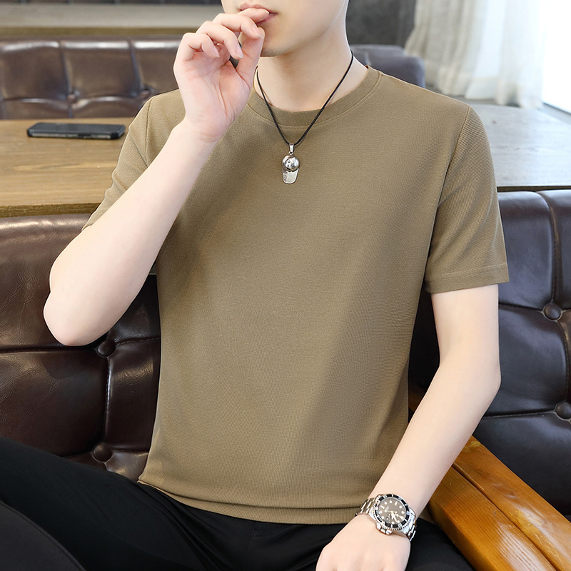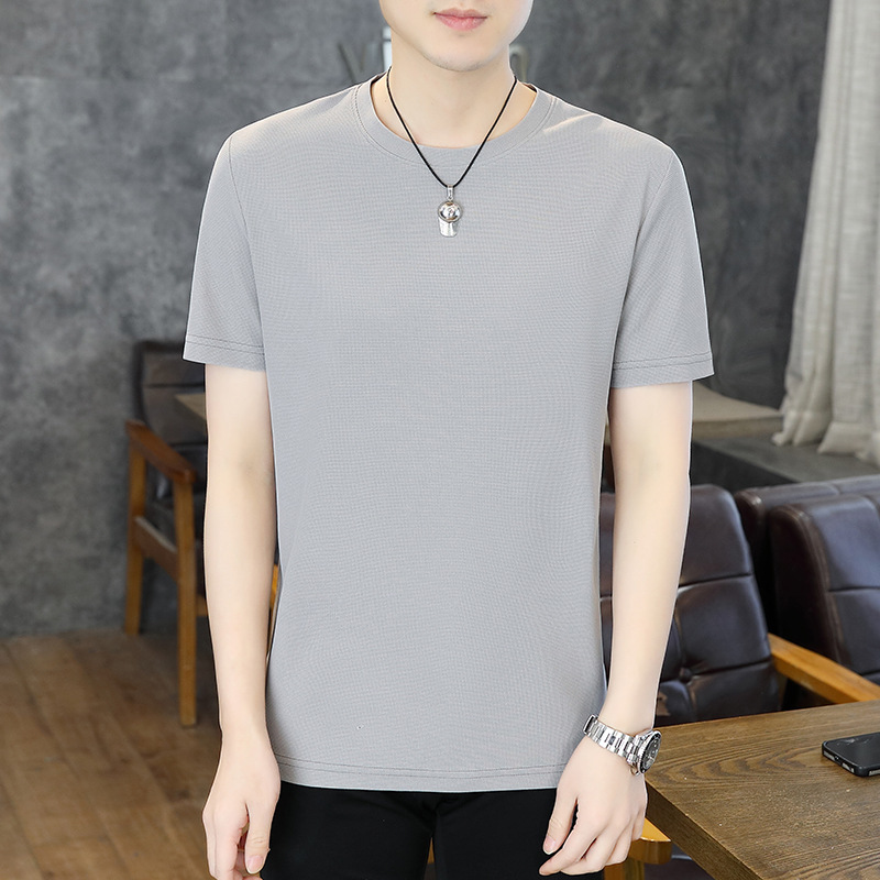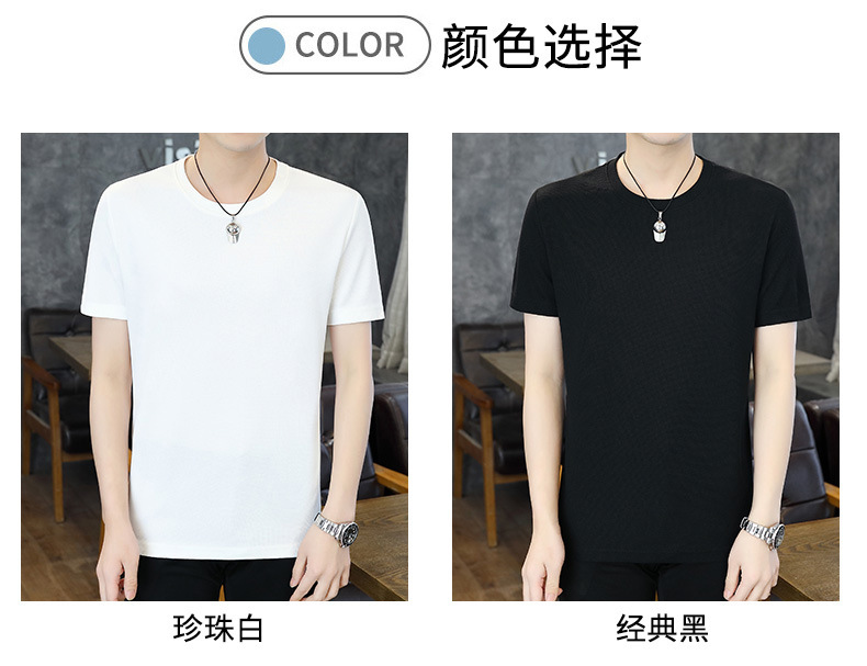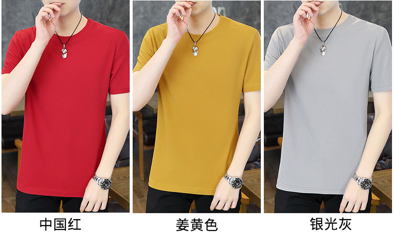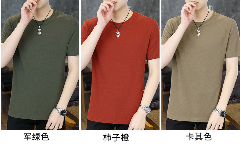 夏季男士短袖T恤纯色合体净版圆领透气休闲男装打底衫上衣代发