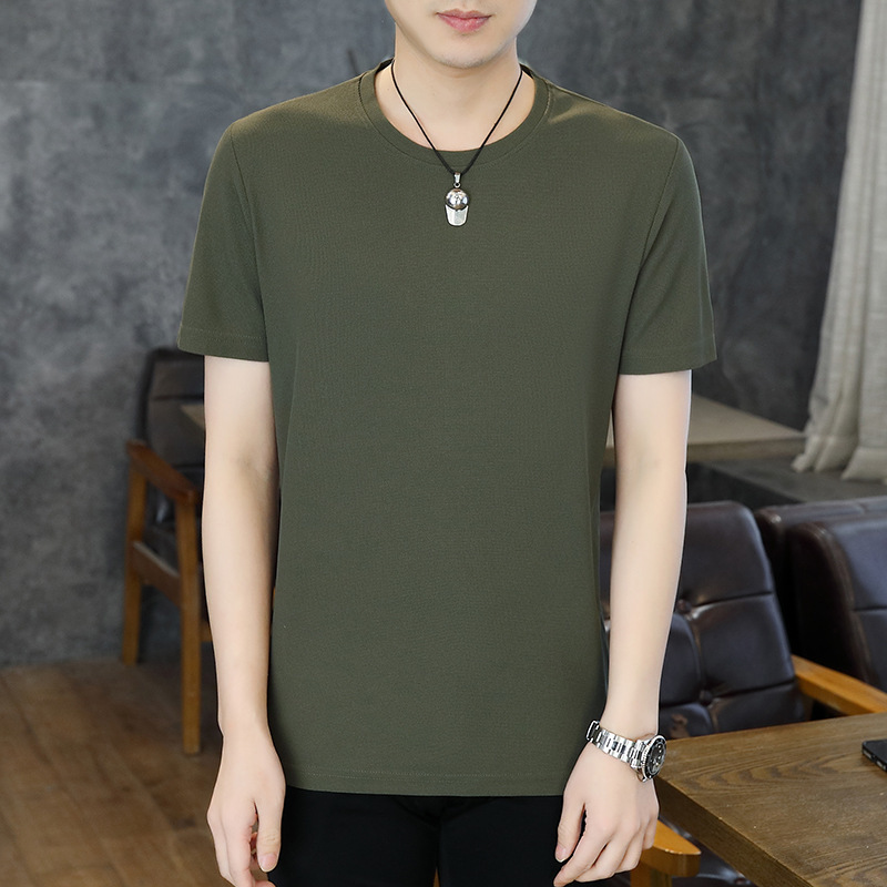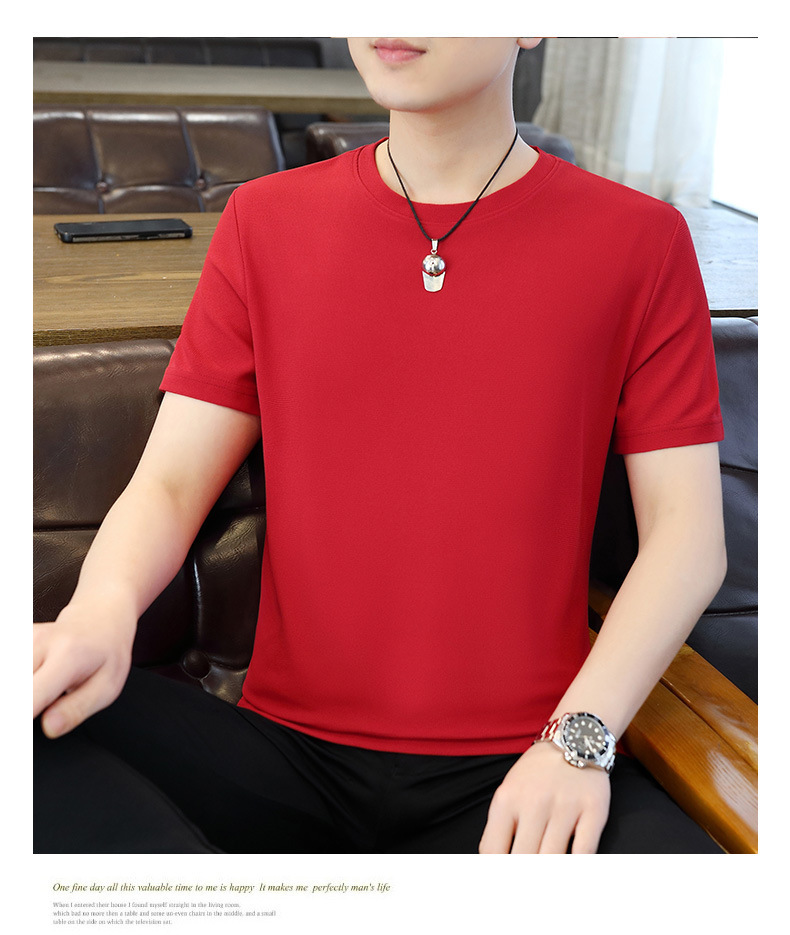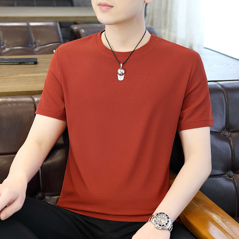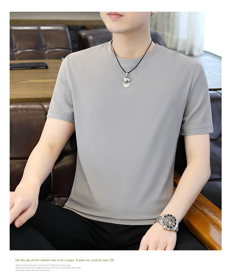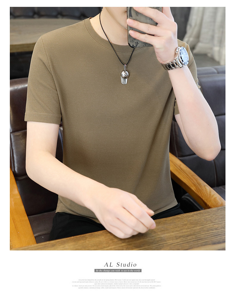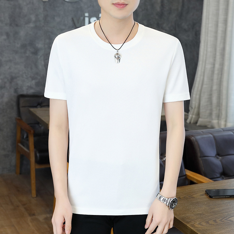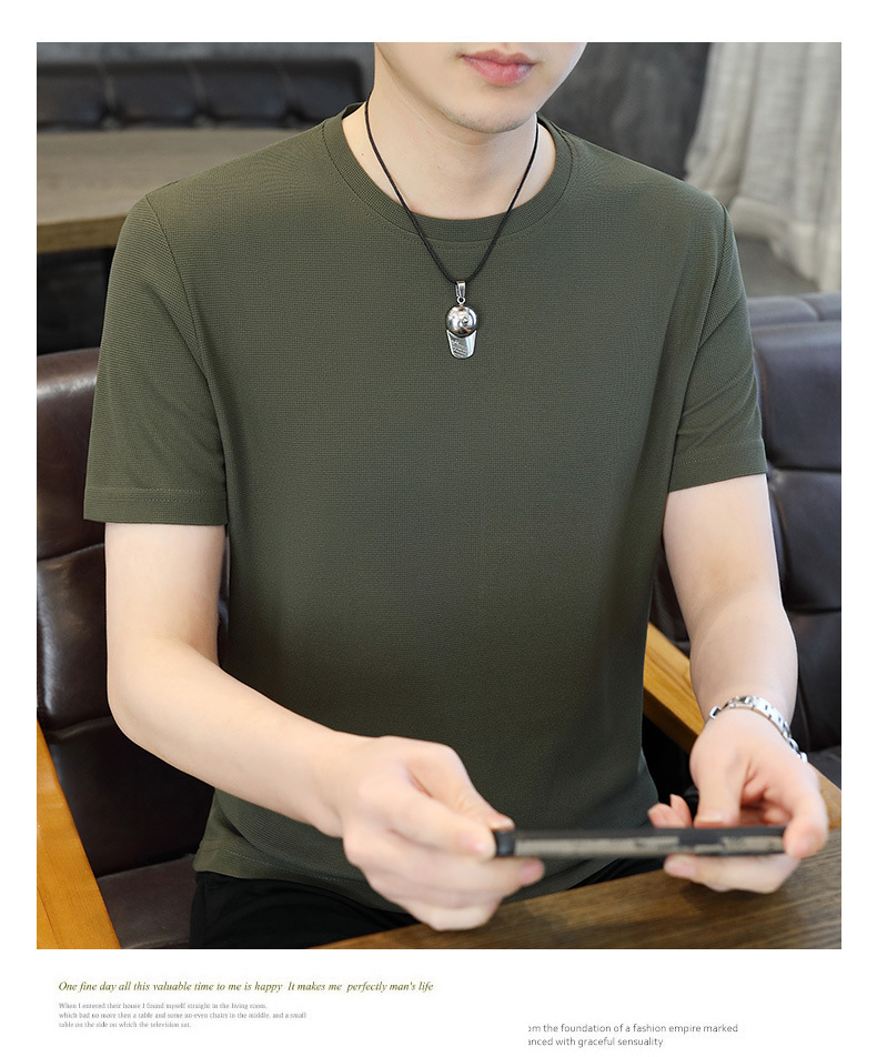 夏季男士短袖T恤纯色合体净版圆领透气休闲男装打底衫上衣代发