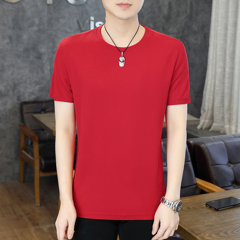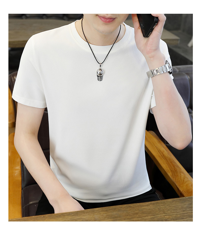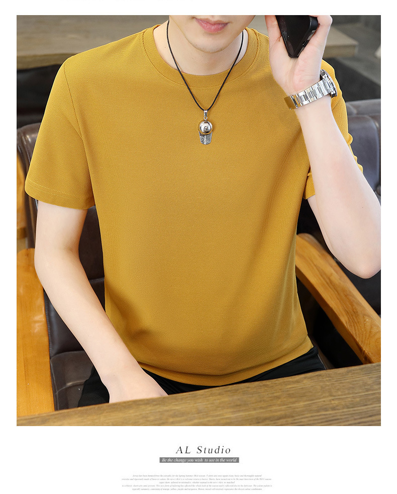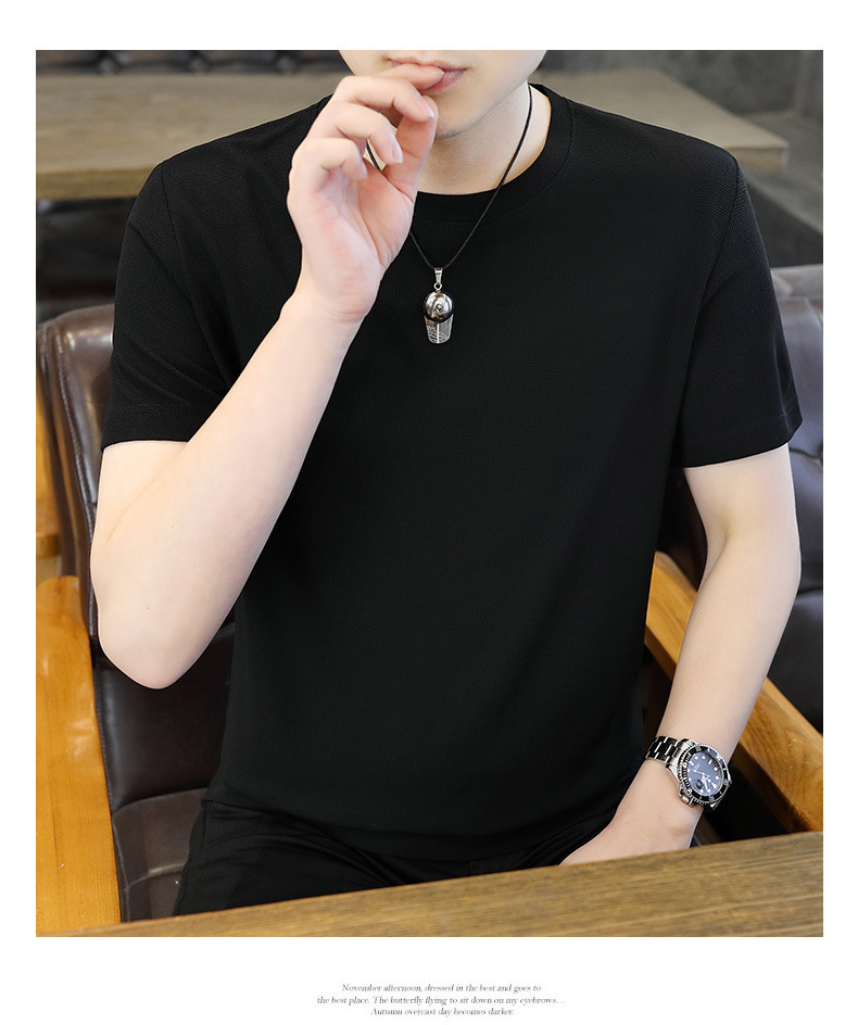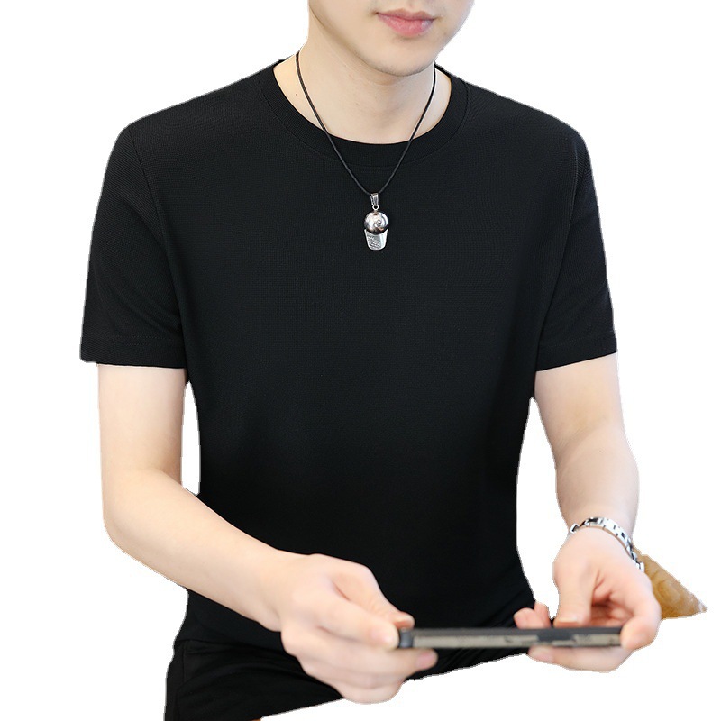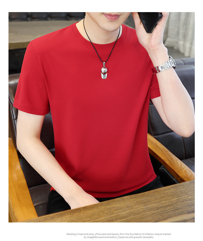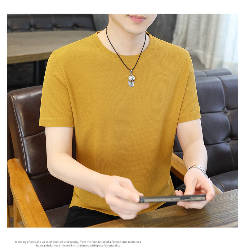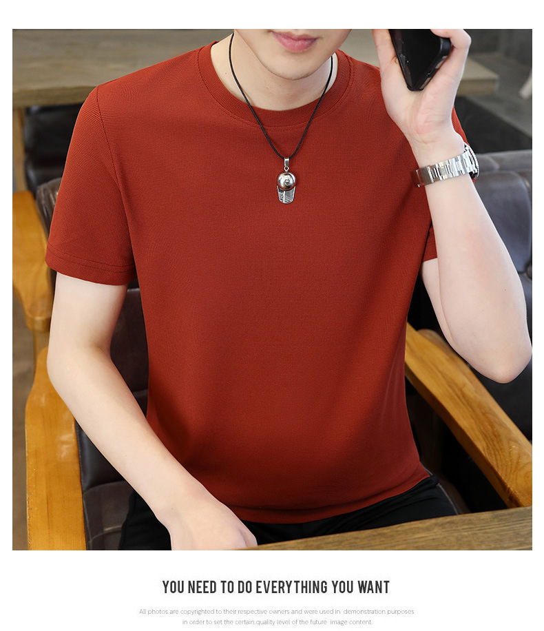 夏季男士短袖T恤纯色合体净版圆领透气休闲男装打底衫上衣代发