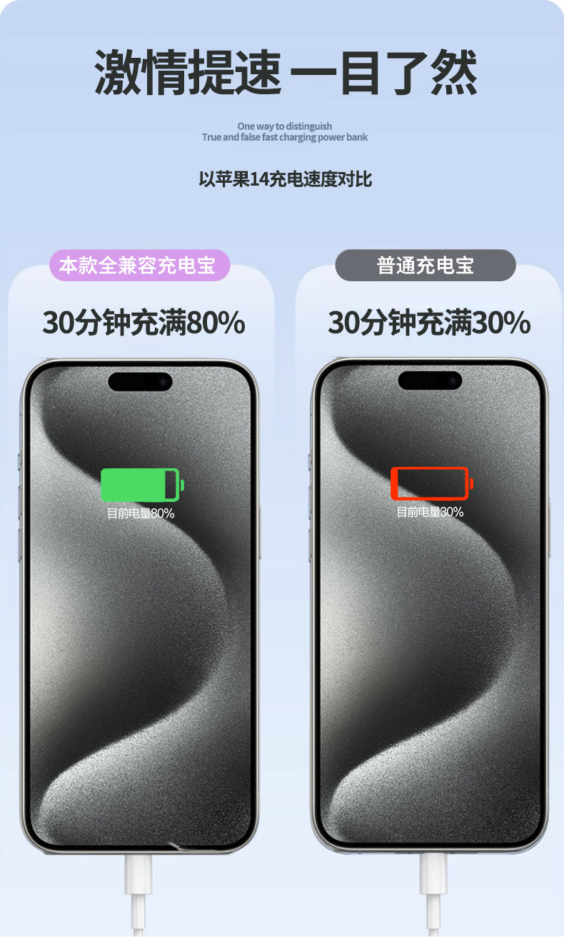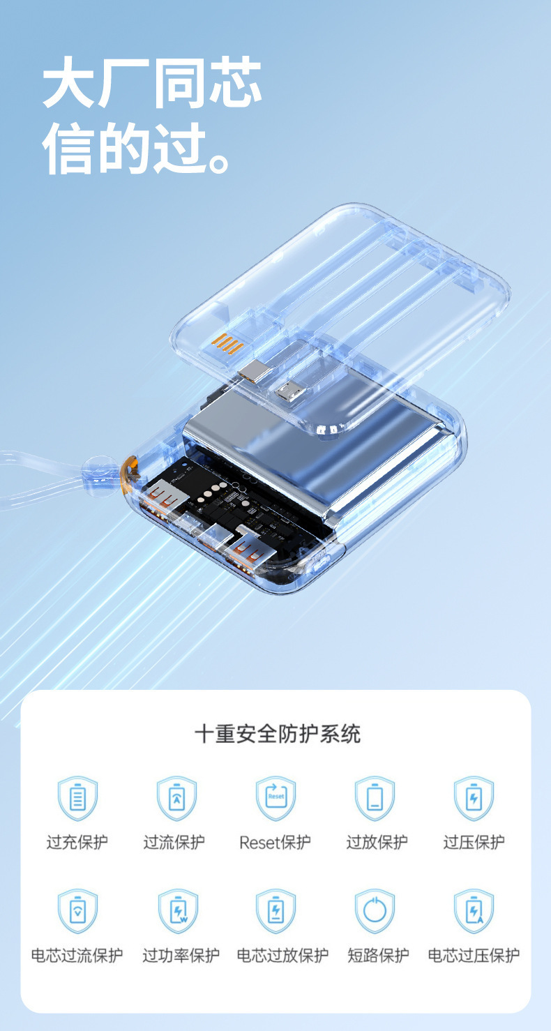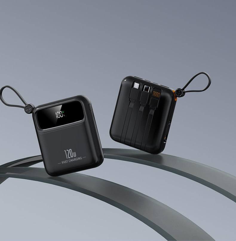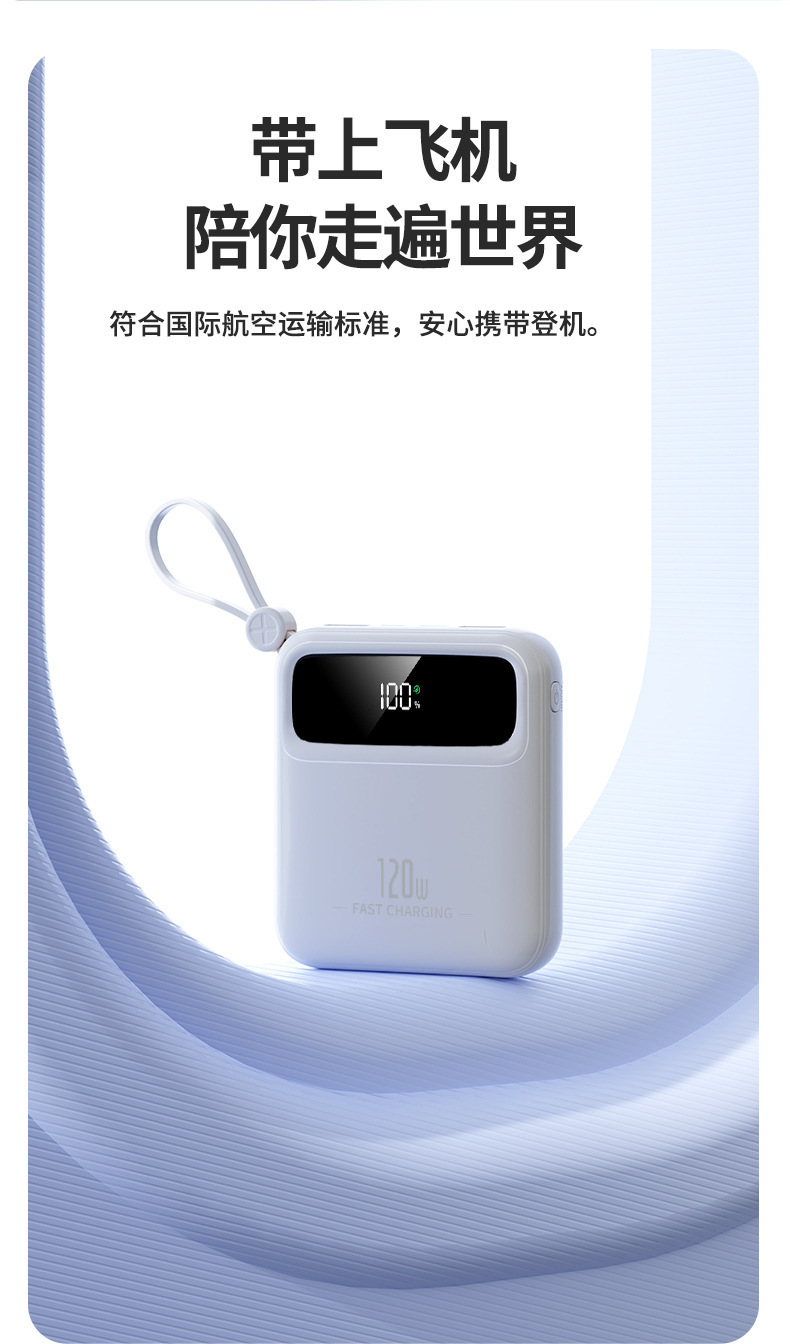 跨境批发120W超级快充20000毫安自带线充电宝大容量迷你移动电源
