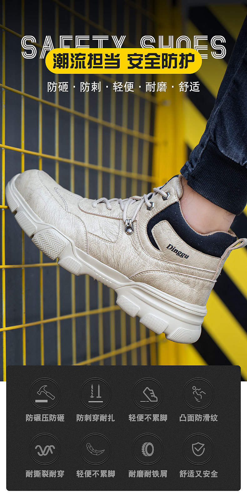 跨境劳保鞋男防砸防刺钢包头工作防臭软底四季轻便安全鞋工厂批发