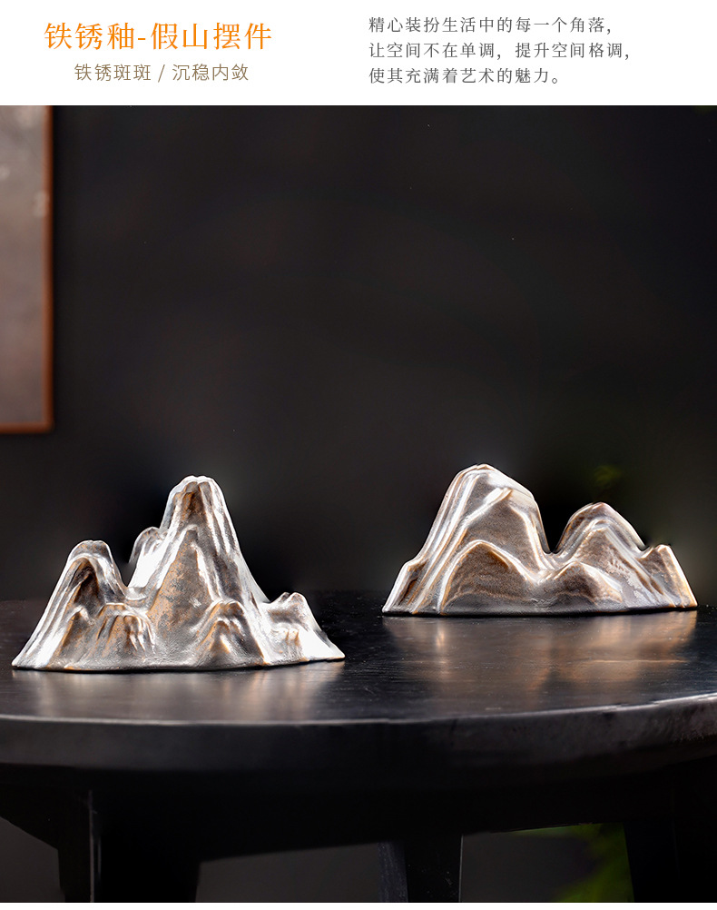 假山小摆件创意微景观鱼缸造景陶瓷客厅玄关中式装饰品搭配摆设