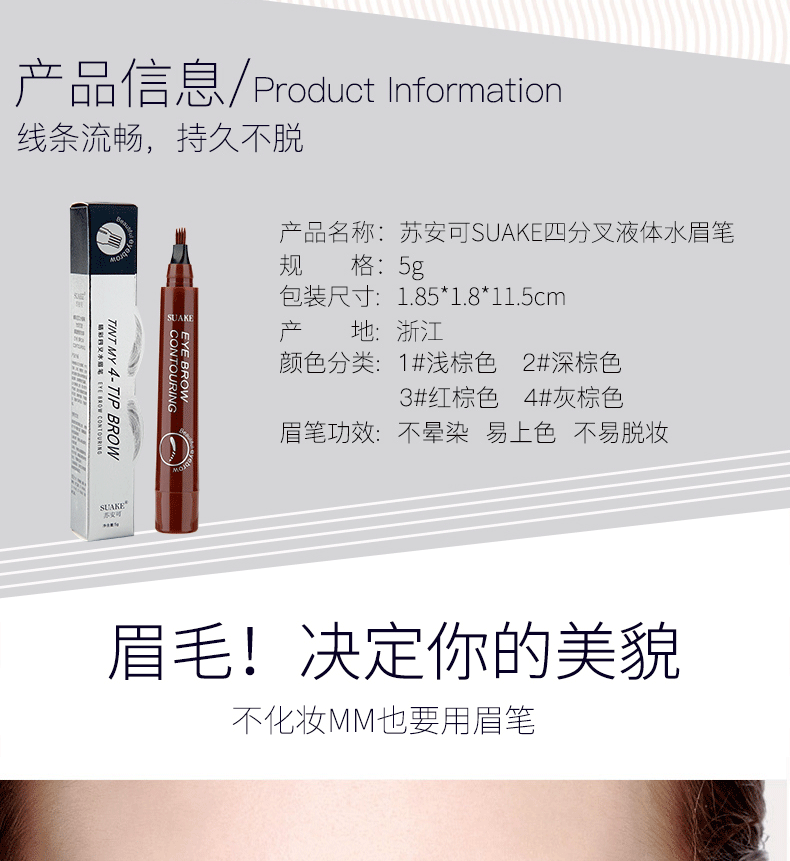 苏安可四叉眉笔持久不晕染眉笔四头眉笔防水防汗液体眉笔厂家爆品