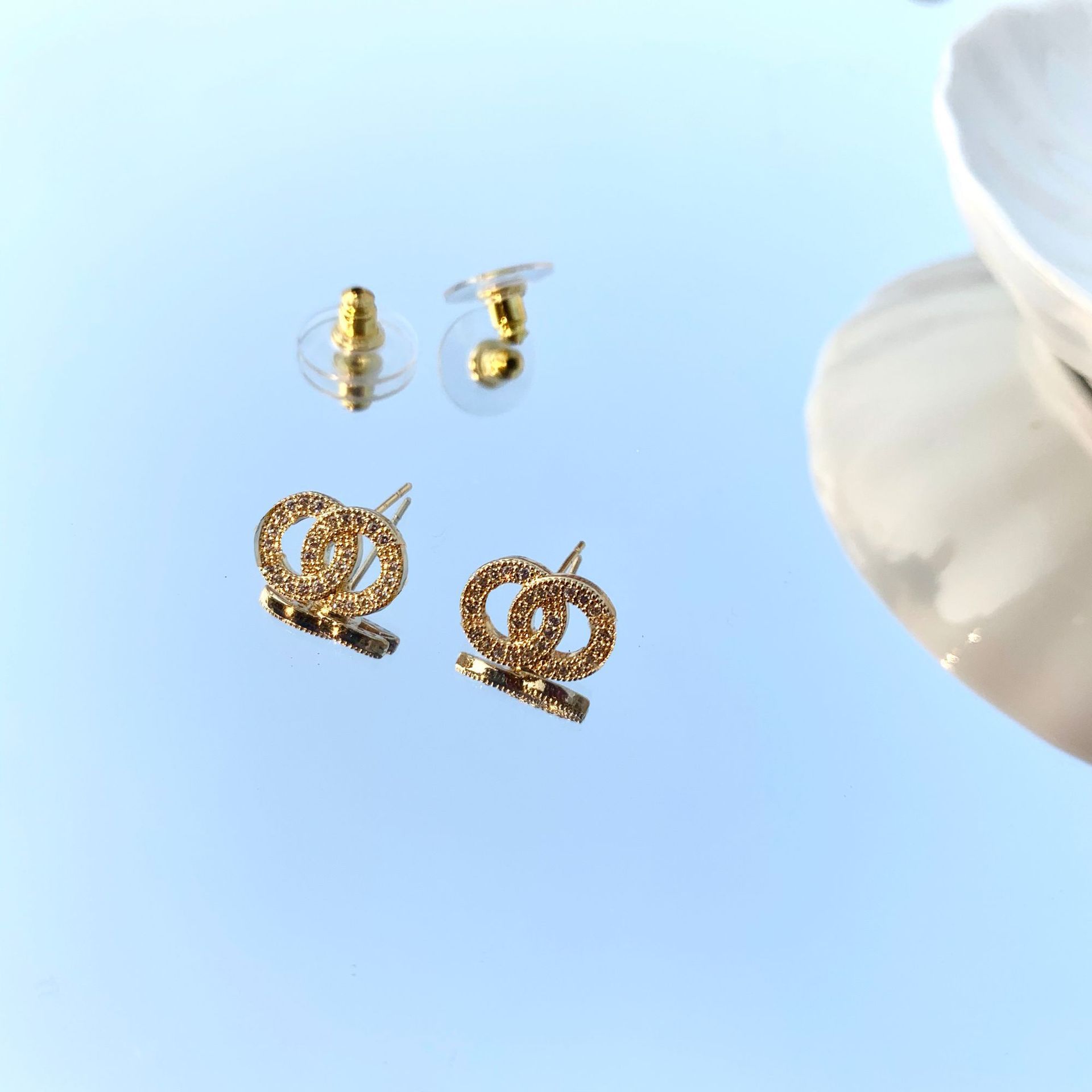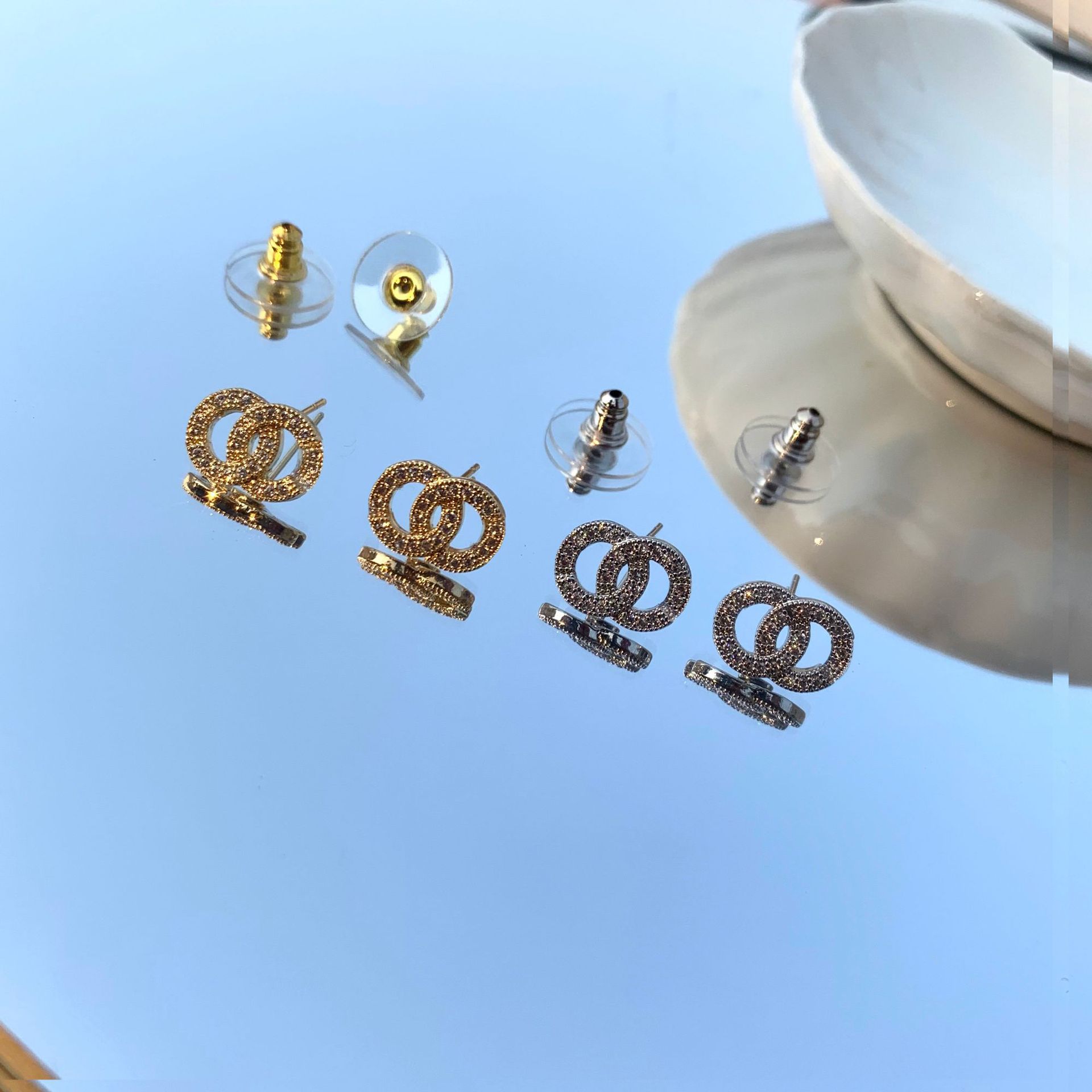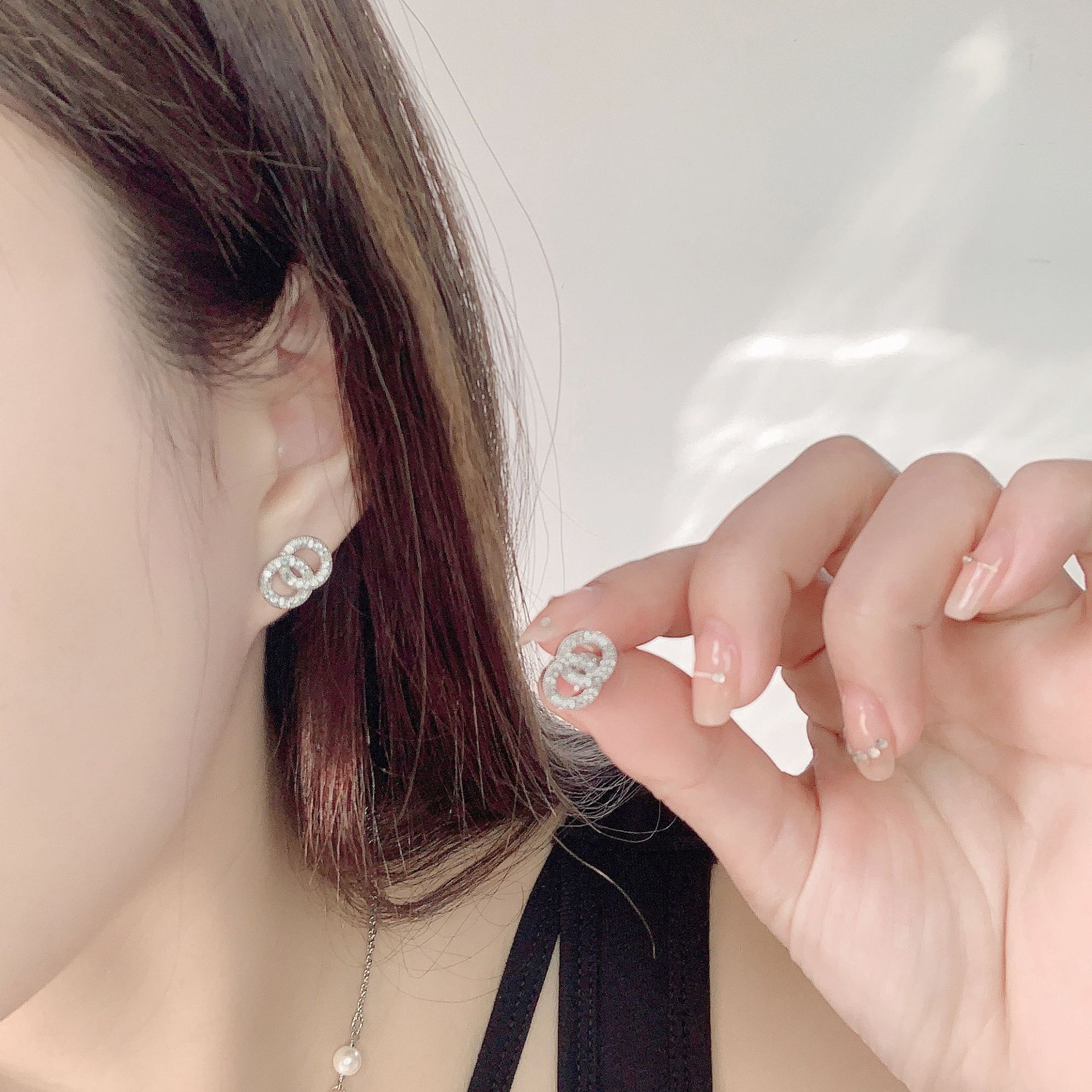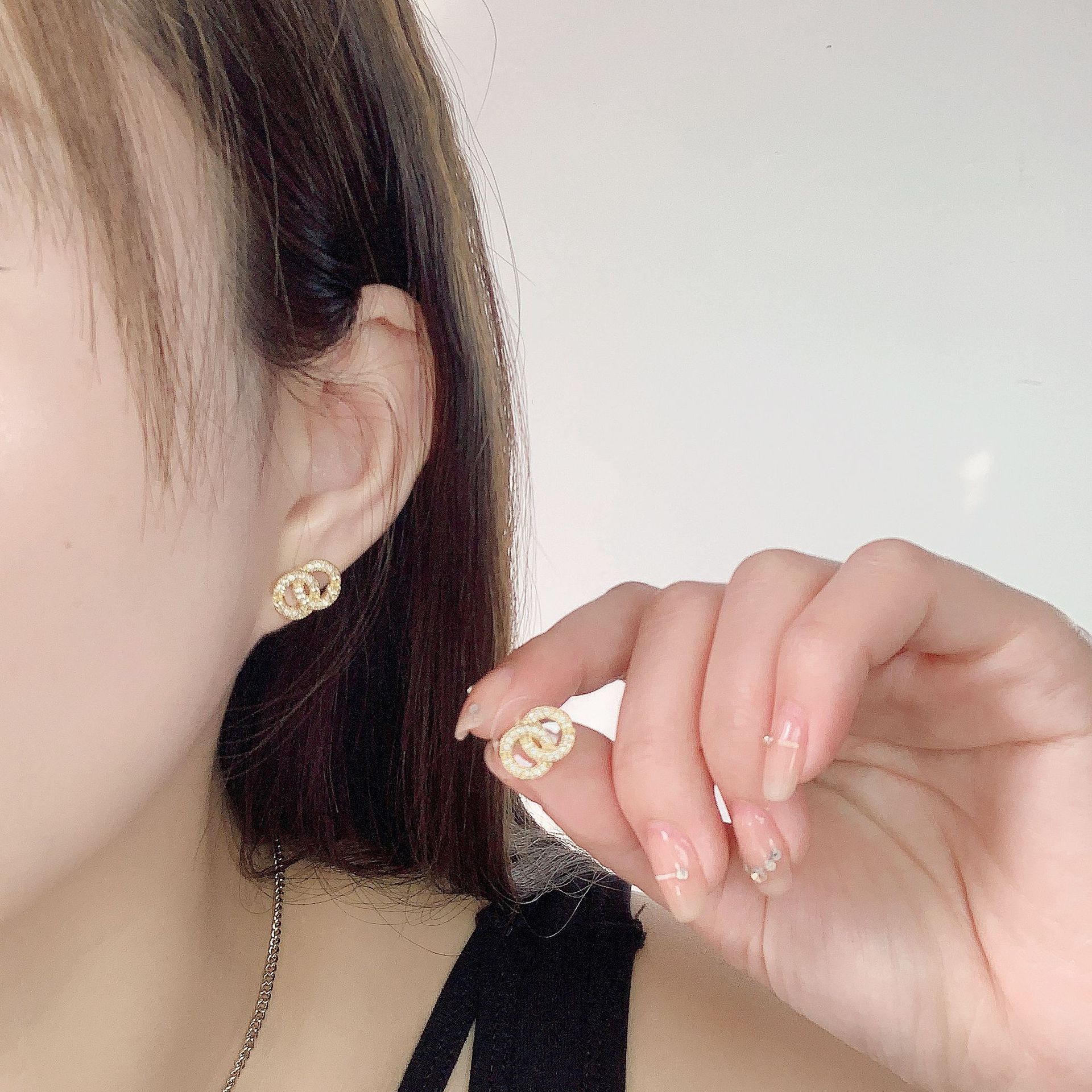 S925银针韩国高级感小香风双c款迷你小巧气质简约耳钉百搭耳环女