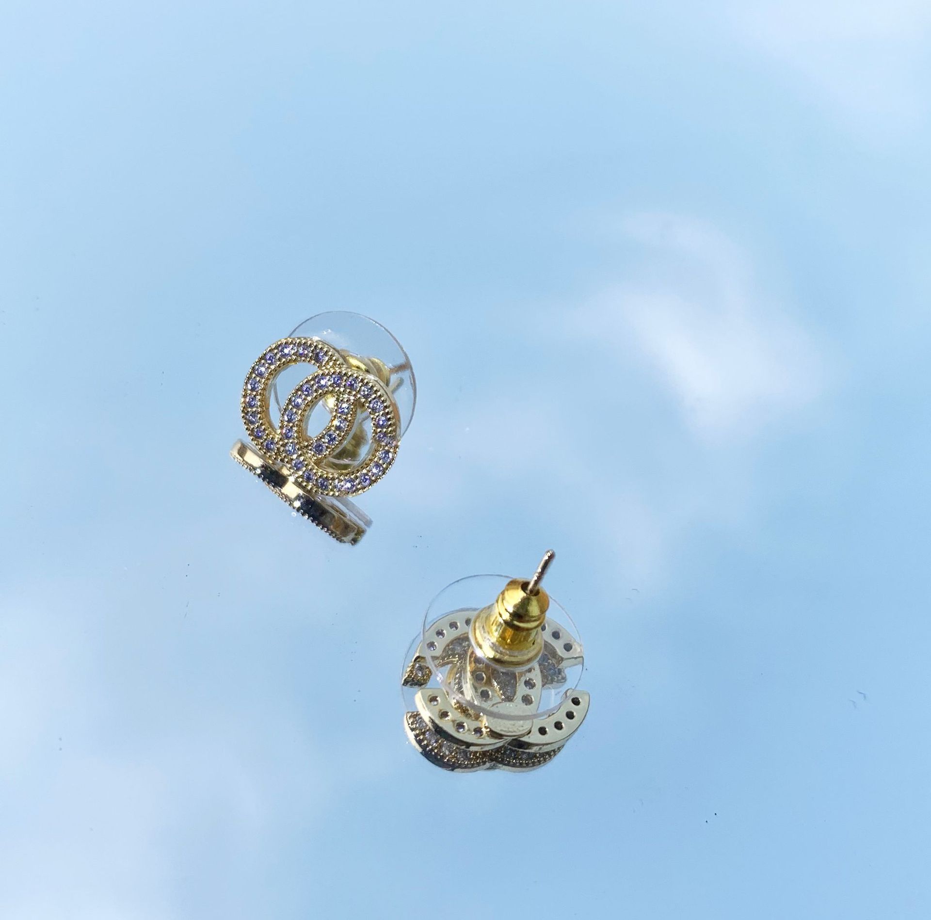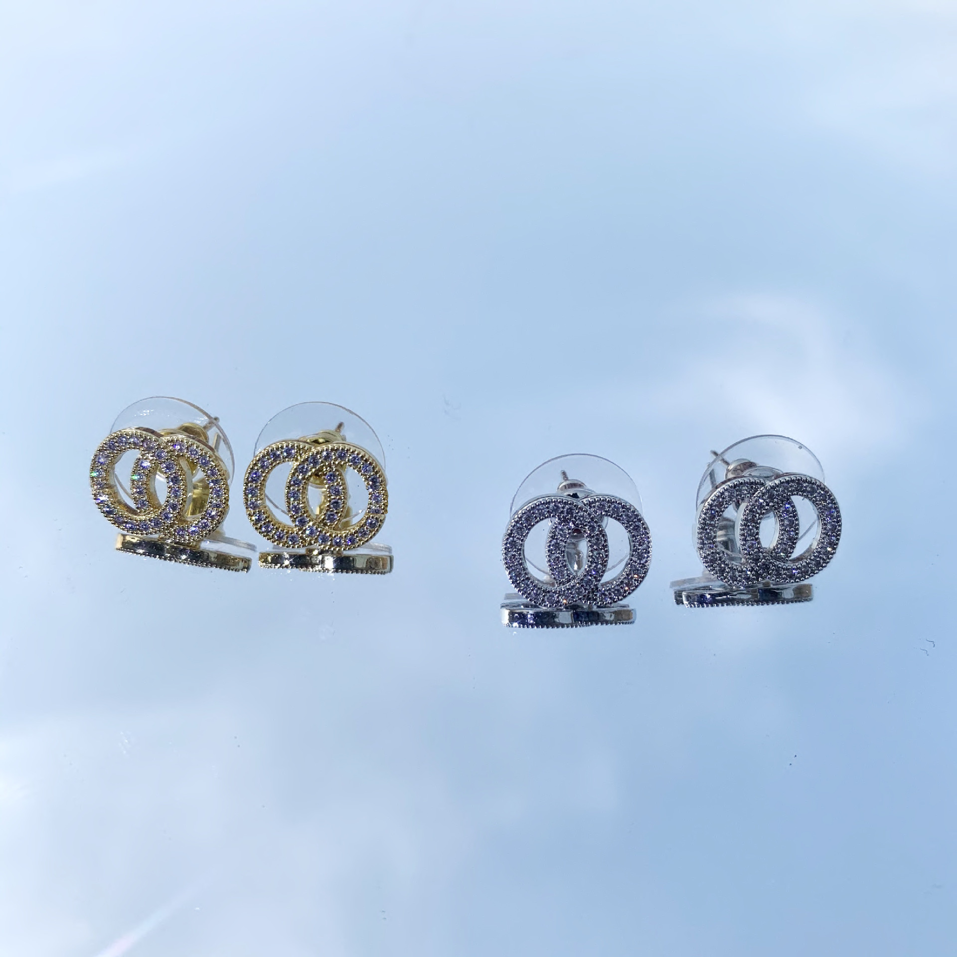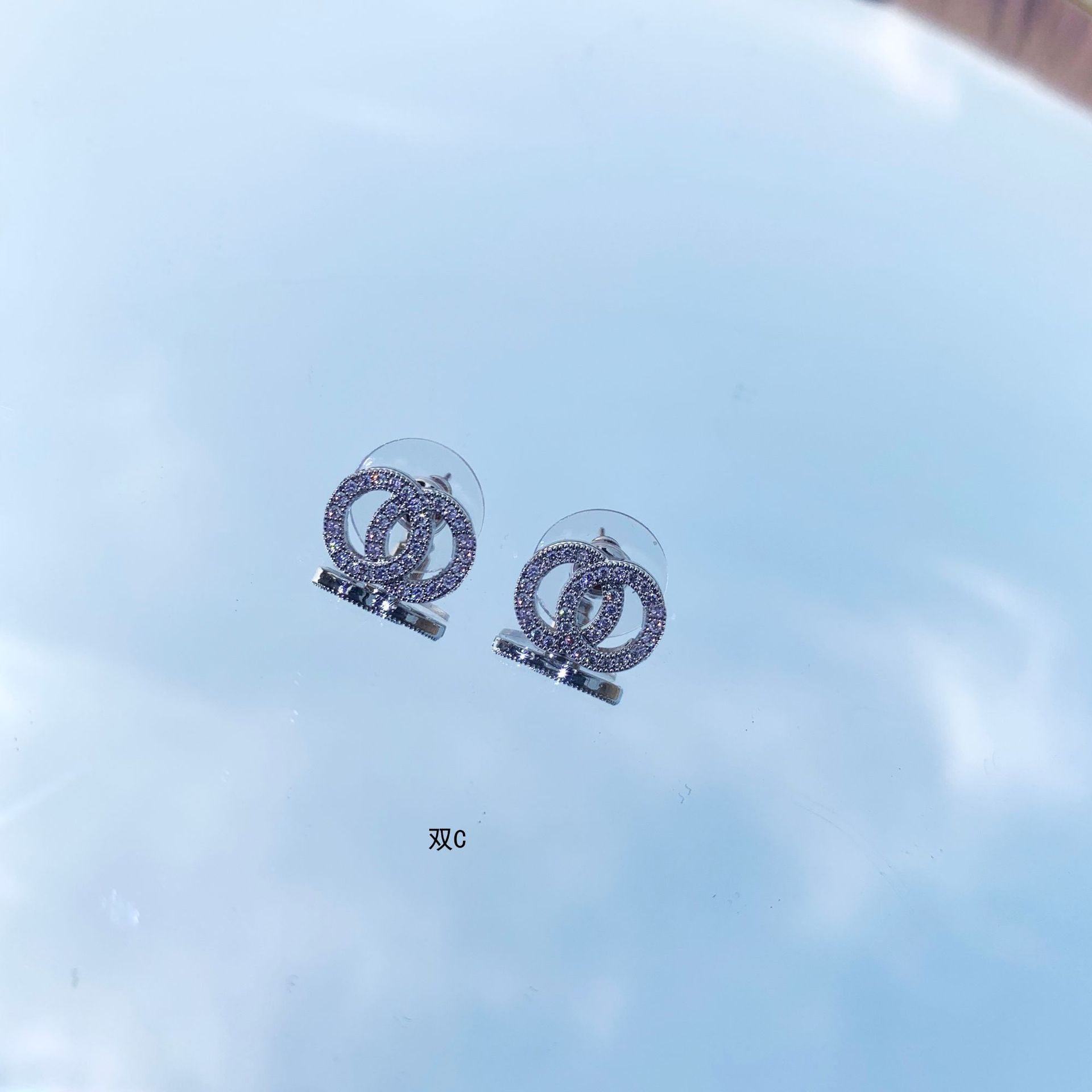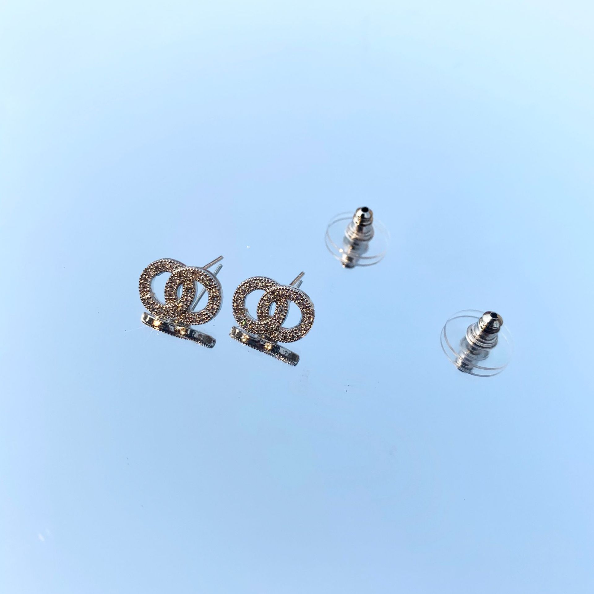 S925银针韩国高级感小香风双c款迷你小巧气质简约耳钉百搭耳环女