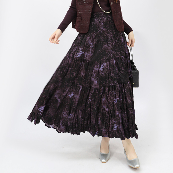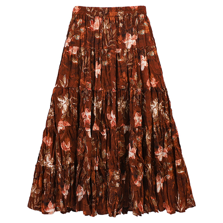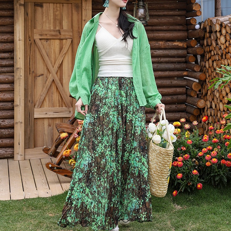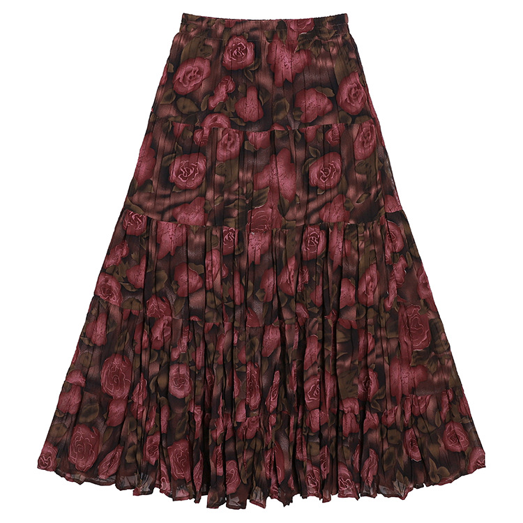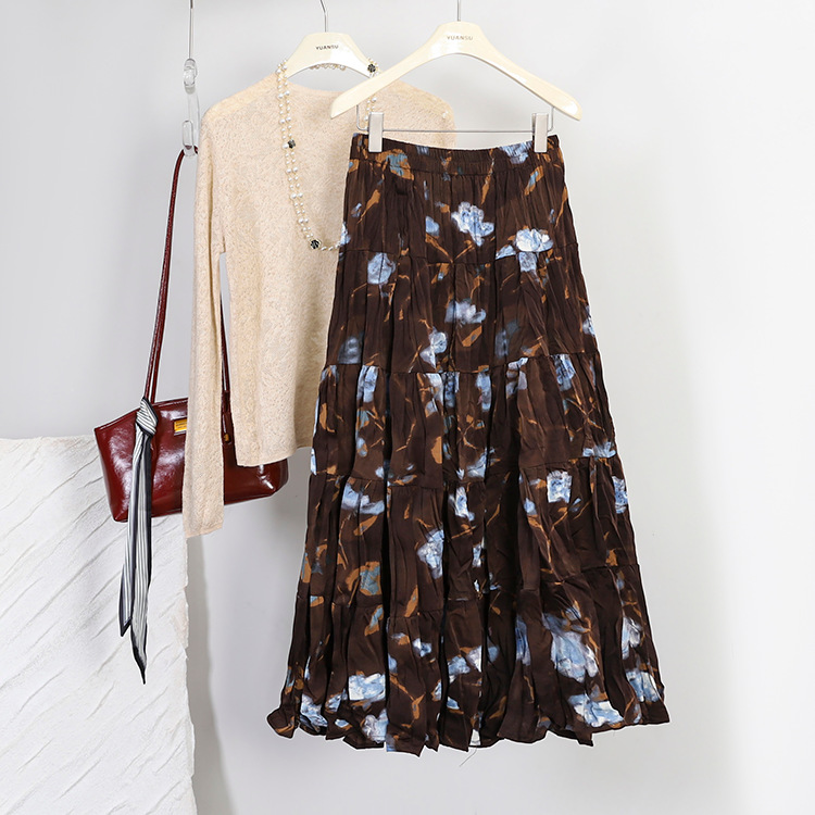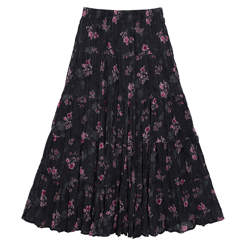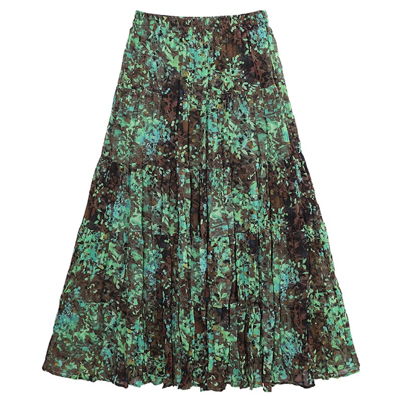 菲媛夏季新款绿野仙踪碎花百褶半身裙 高腰百搭显瘦皱皱A字大摆裙