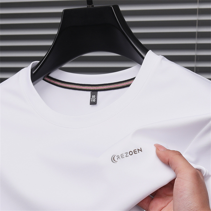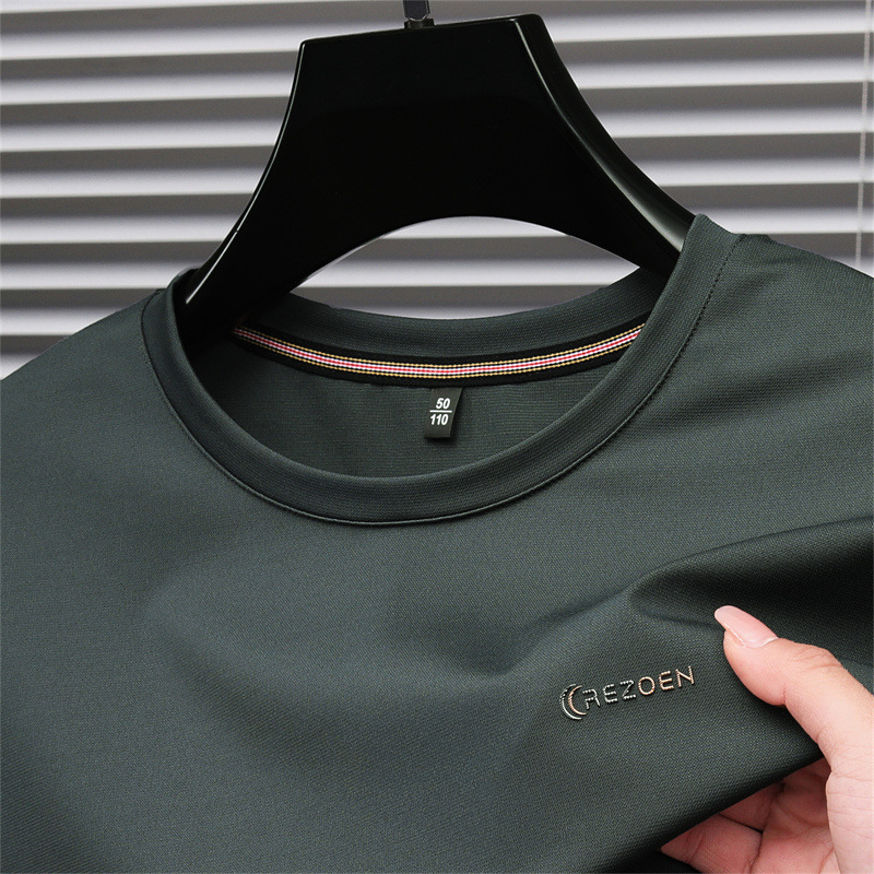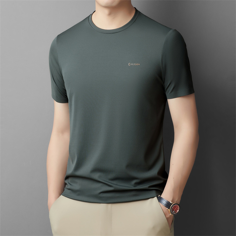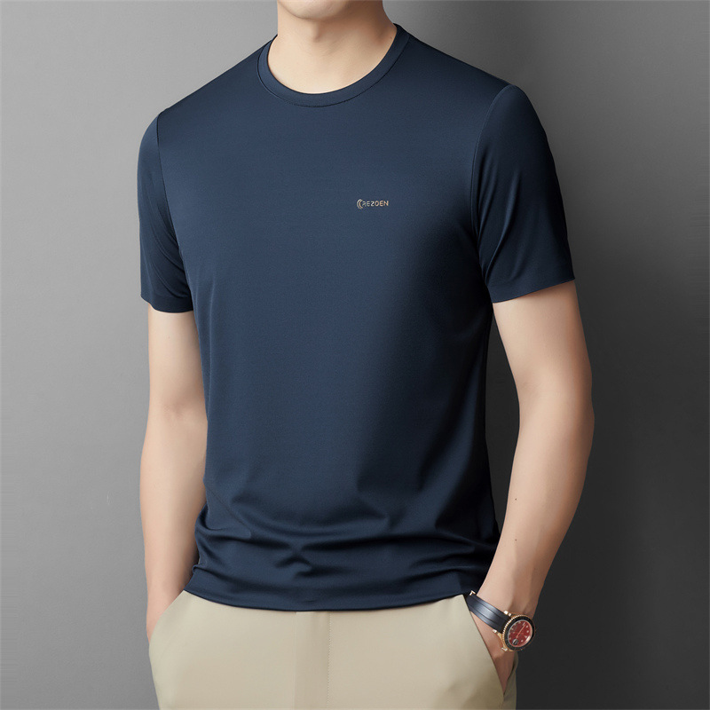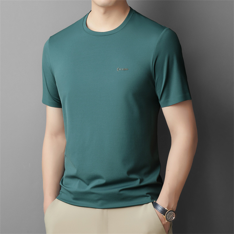 夏季新款桑蚕丝无痕短袖T恤男士青年简约休闲圆领印花体恤衫男装