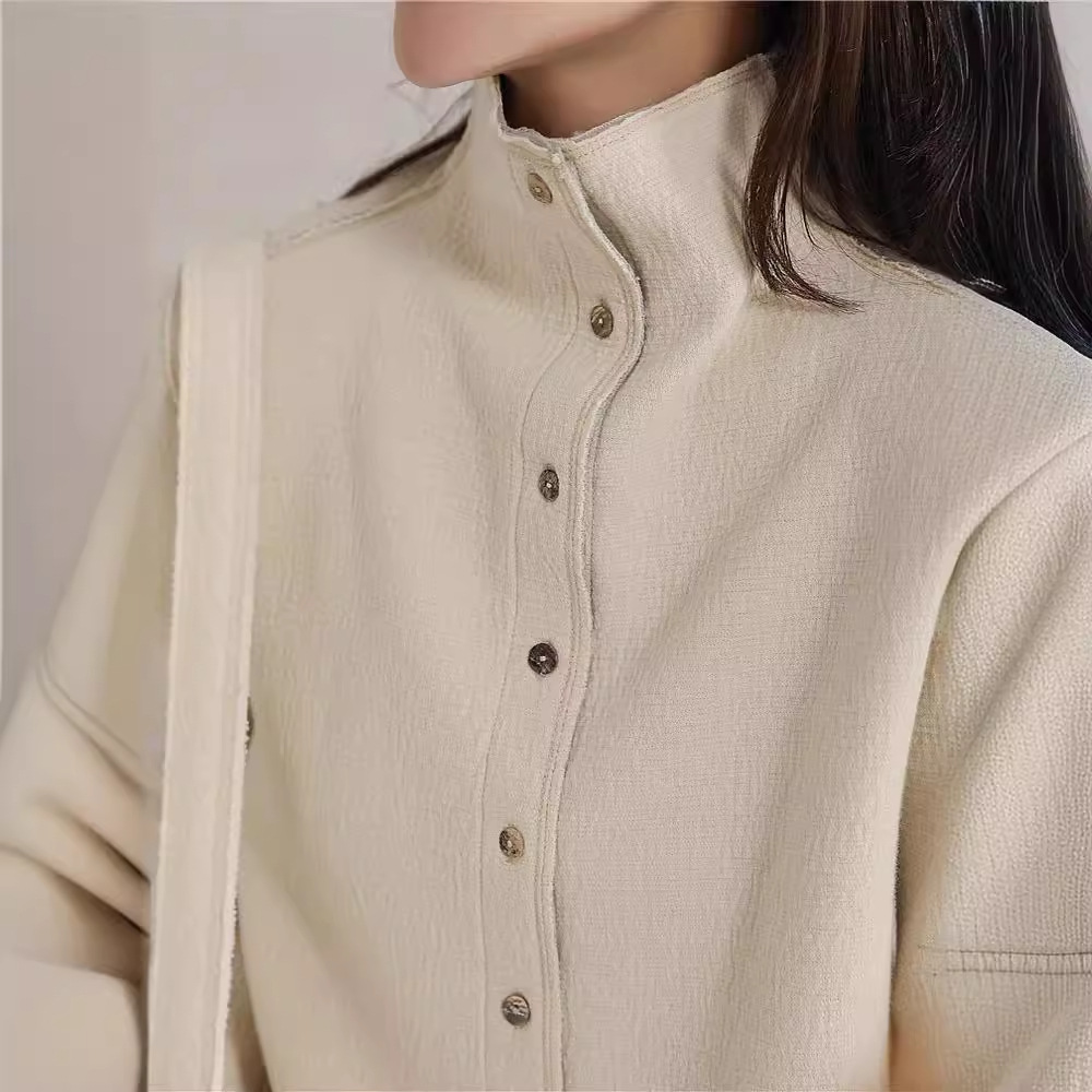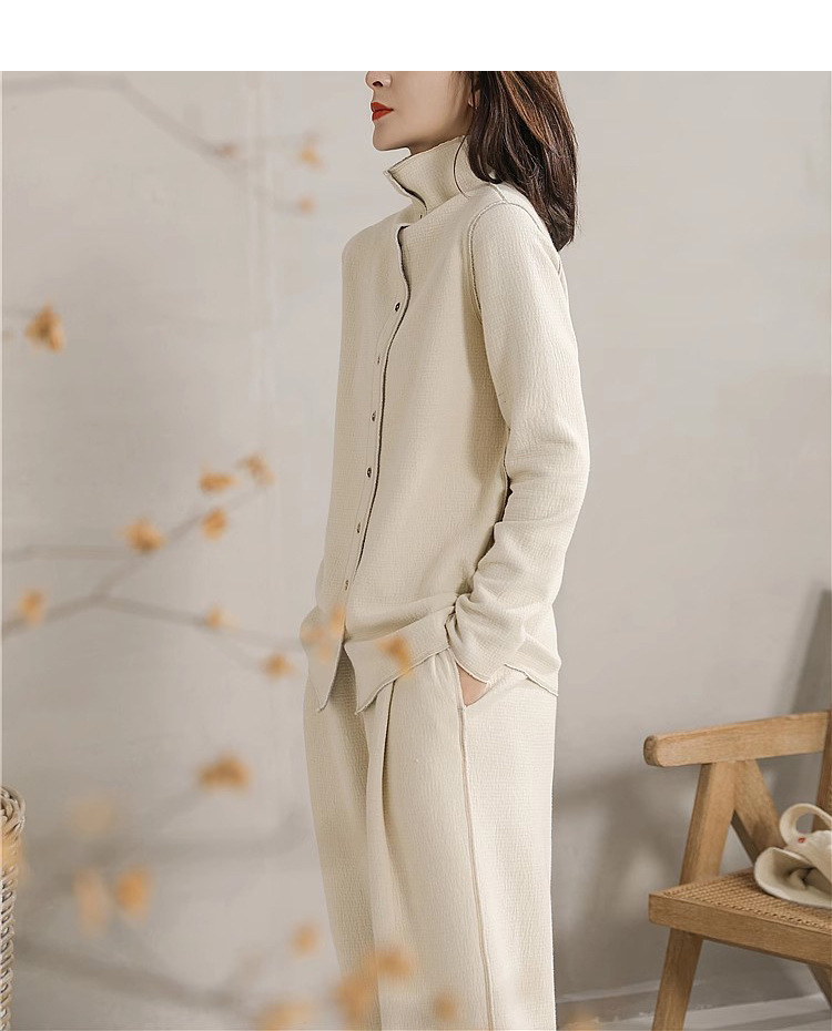 2025春秋款文艺女装蓬松柔软空气层拼色设计高领外套拼色设计长裤