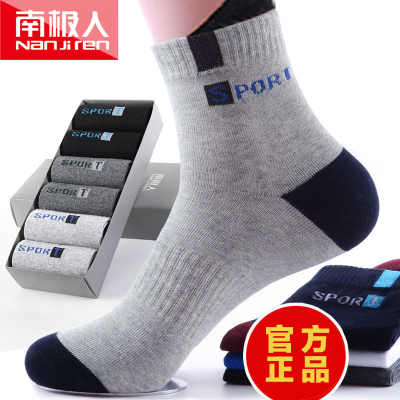 南极厂纯棉袜子男士加厚耐磨中筒袜透气吸汗秋冬提耳护跟运动潮袜