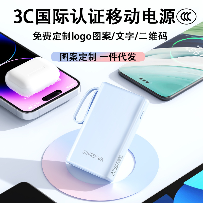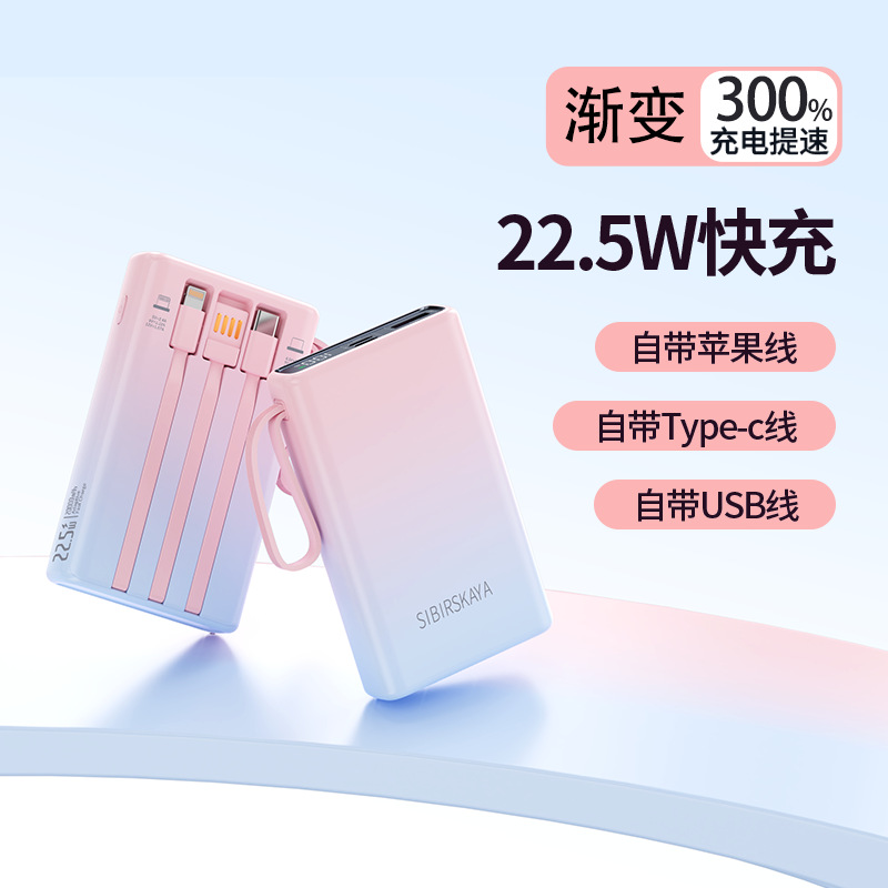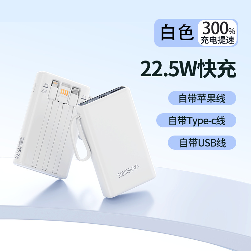 批发新款充电宝快充超大容量20000毫安自带线适用小米华为苹果