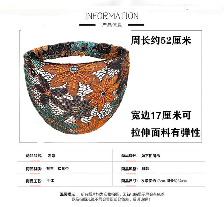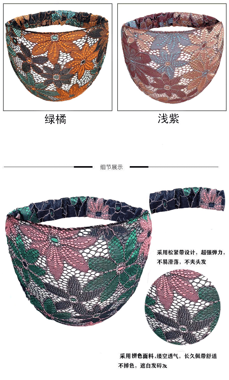 蕾丝宽边遮白发发带女网红外出头巾韩国夏季简约气质头饰复古发箍