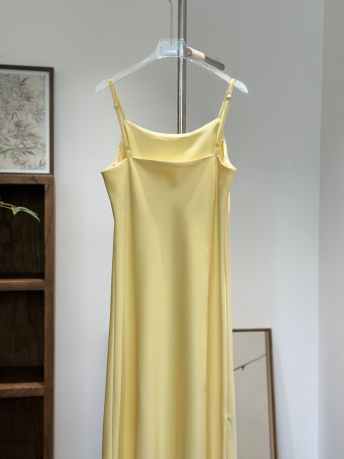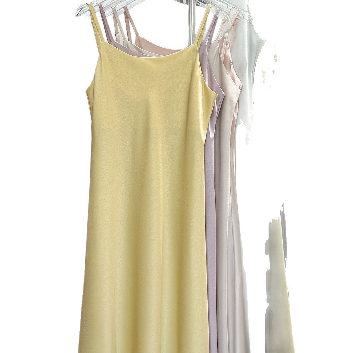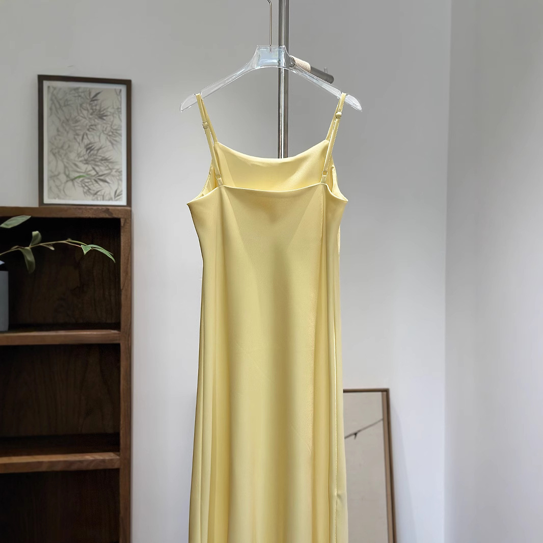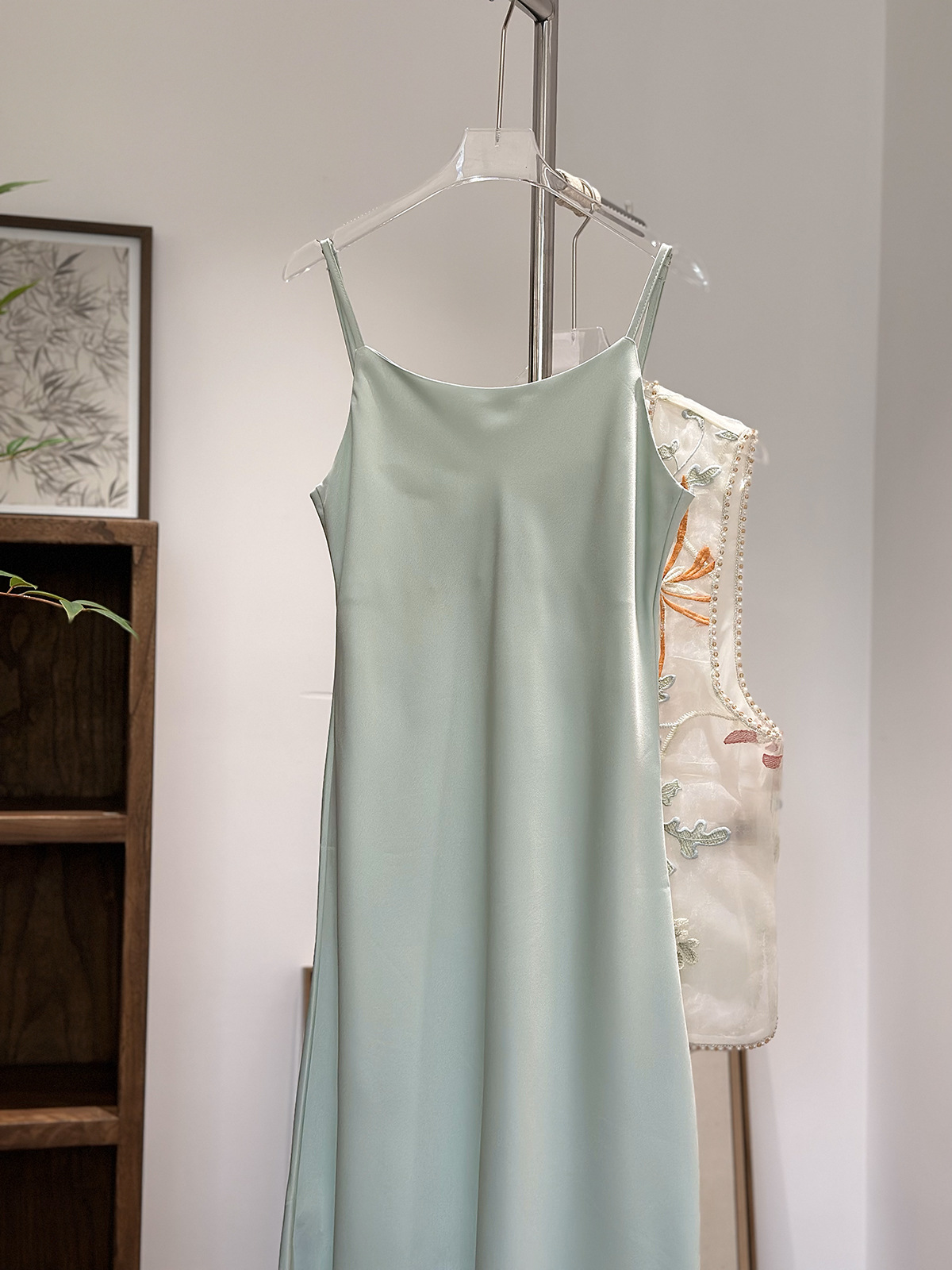 新中式国风基础款百搭醋酸吊带连衣裙女春夏季气质高级感缎面长裙