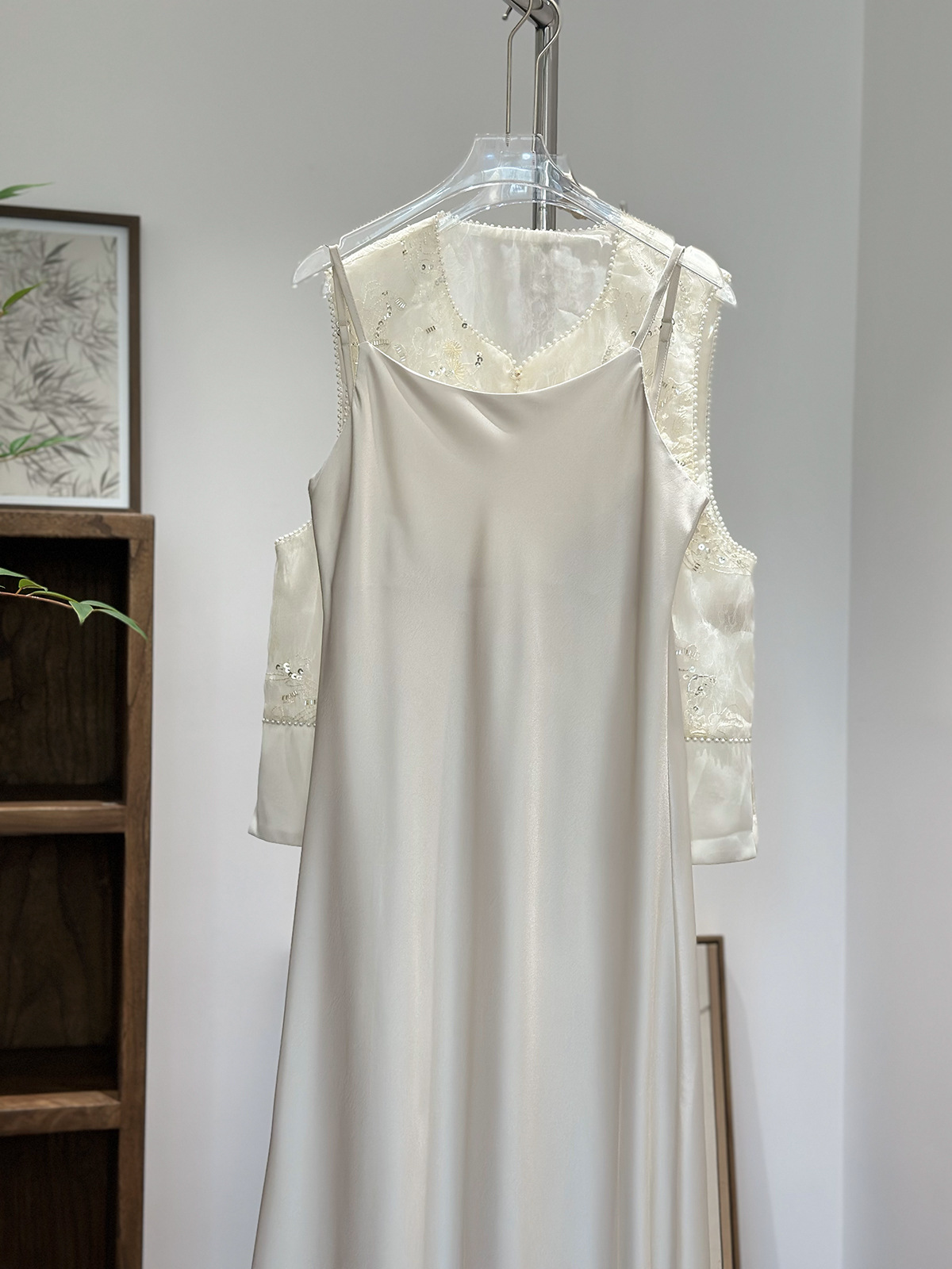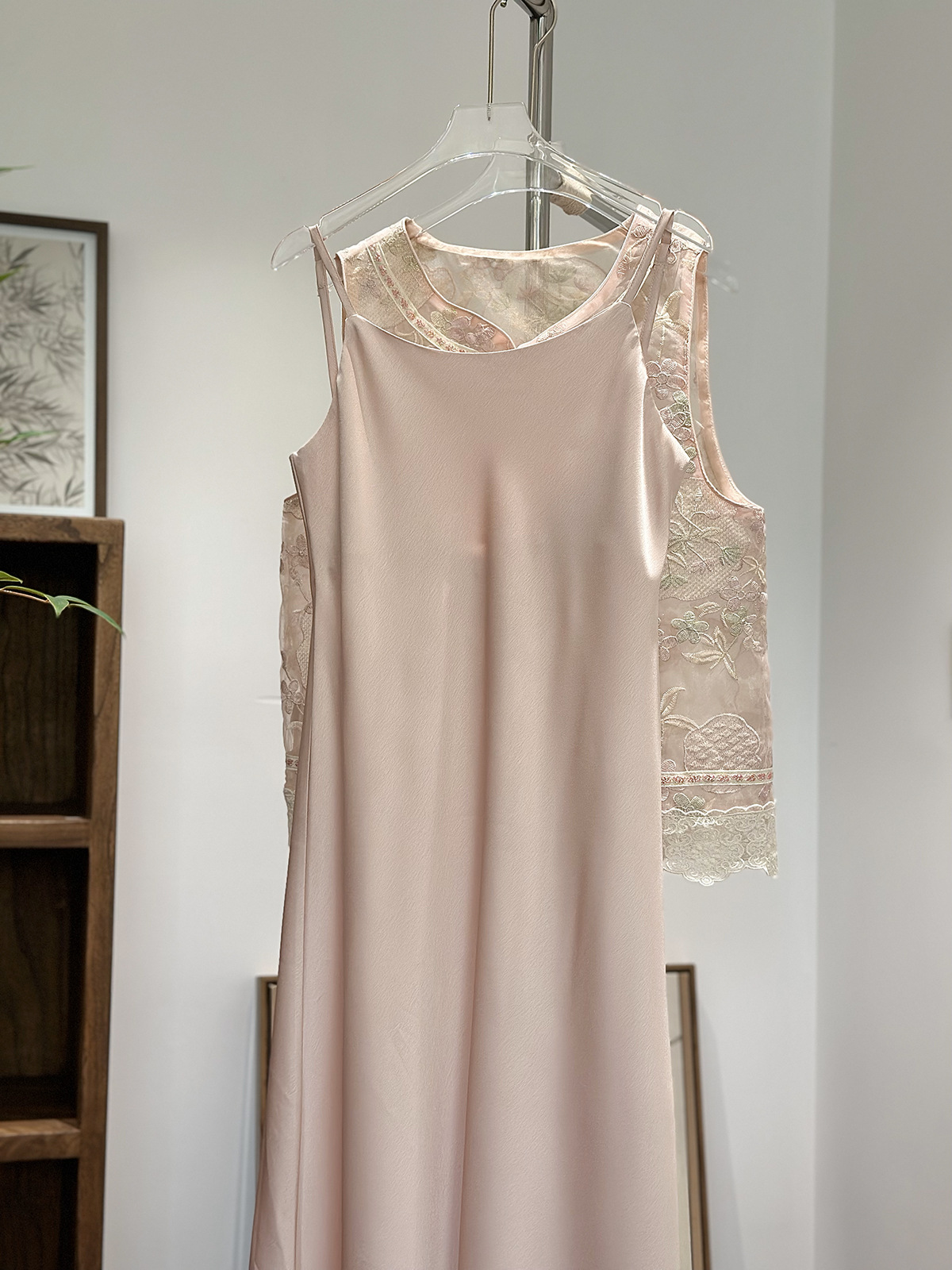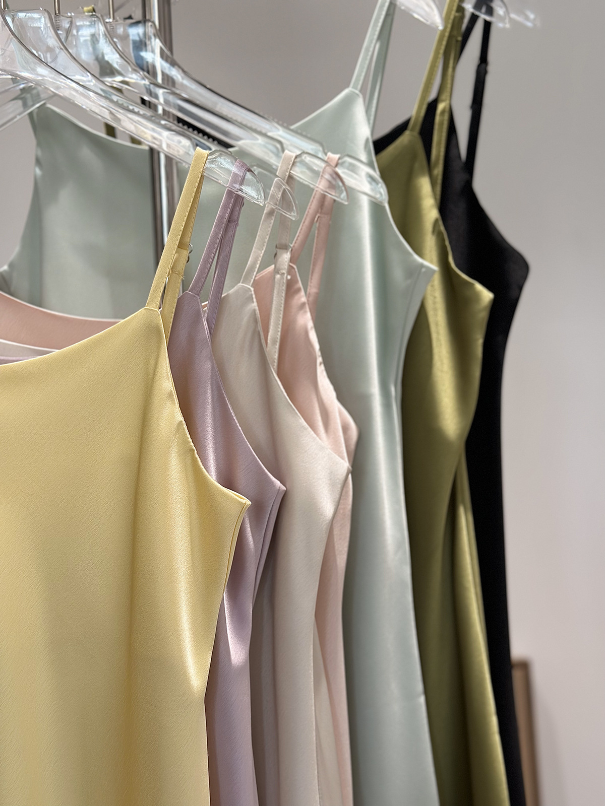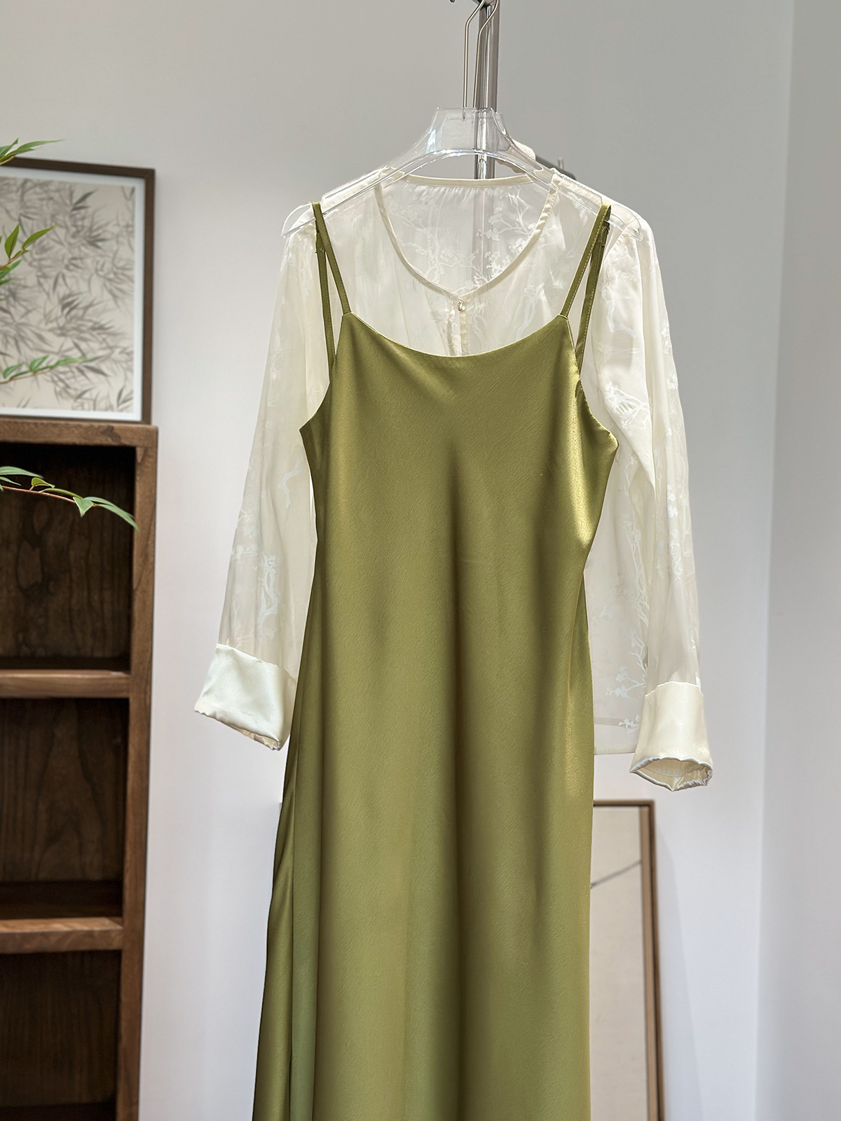 新中式国风基础款百搭醋酸吊带连衣裙女春夏季气质高级感缎面长裙
