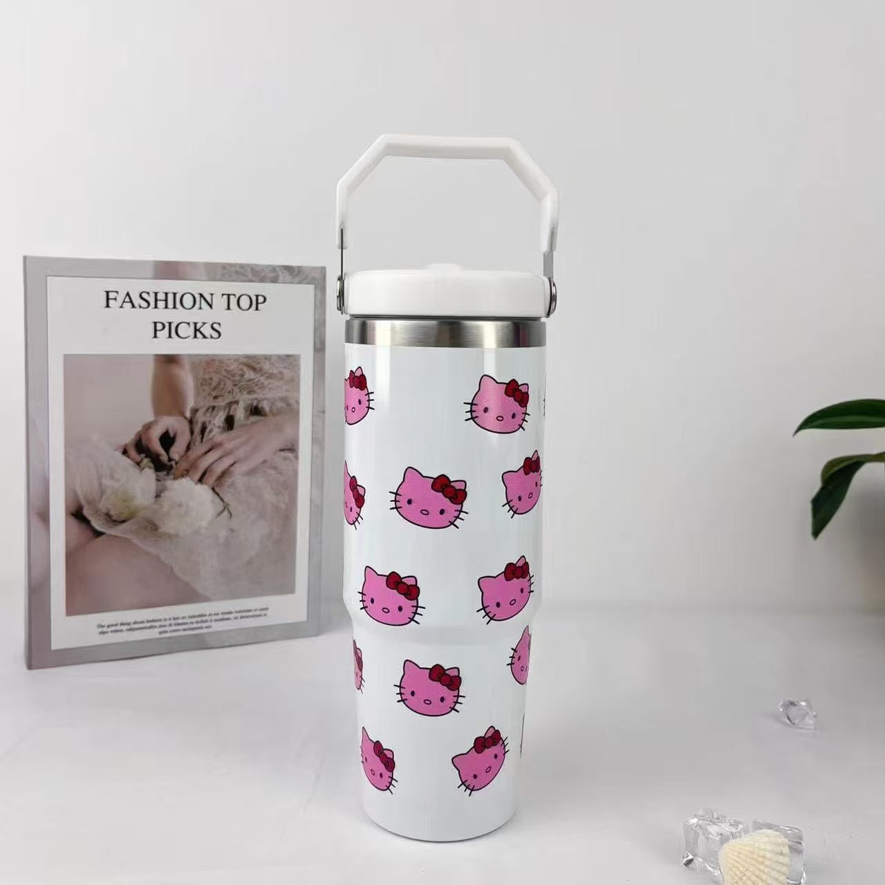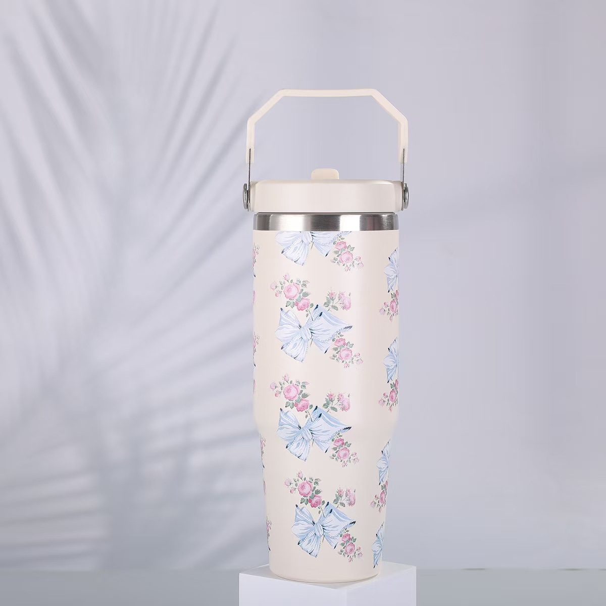 跨境亚马逊户外便携保温杯双层真空汽车杯大容量带吸管手提冰霸杯