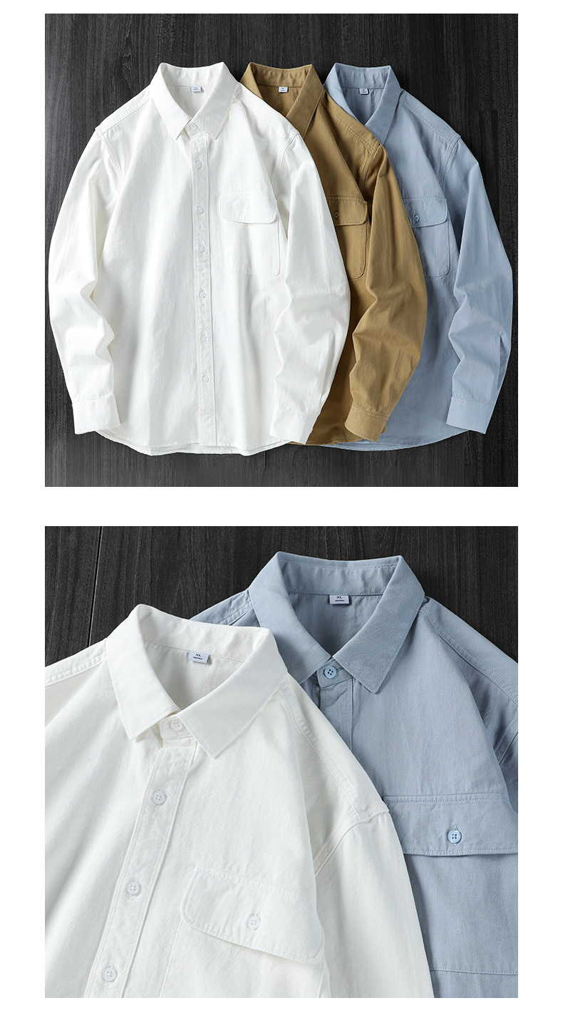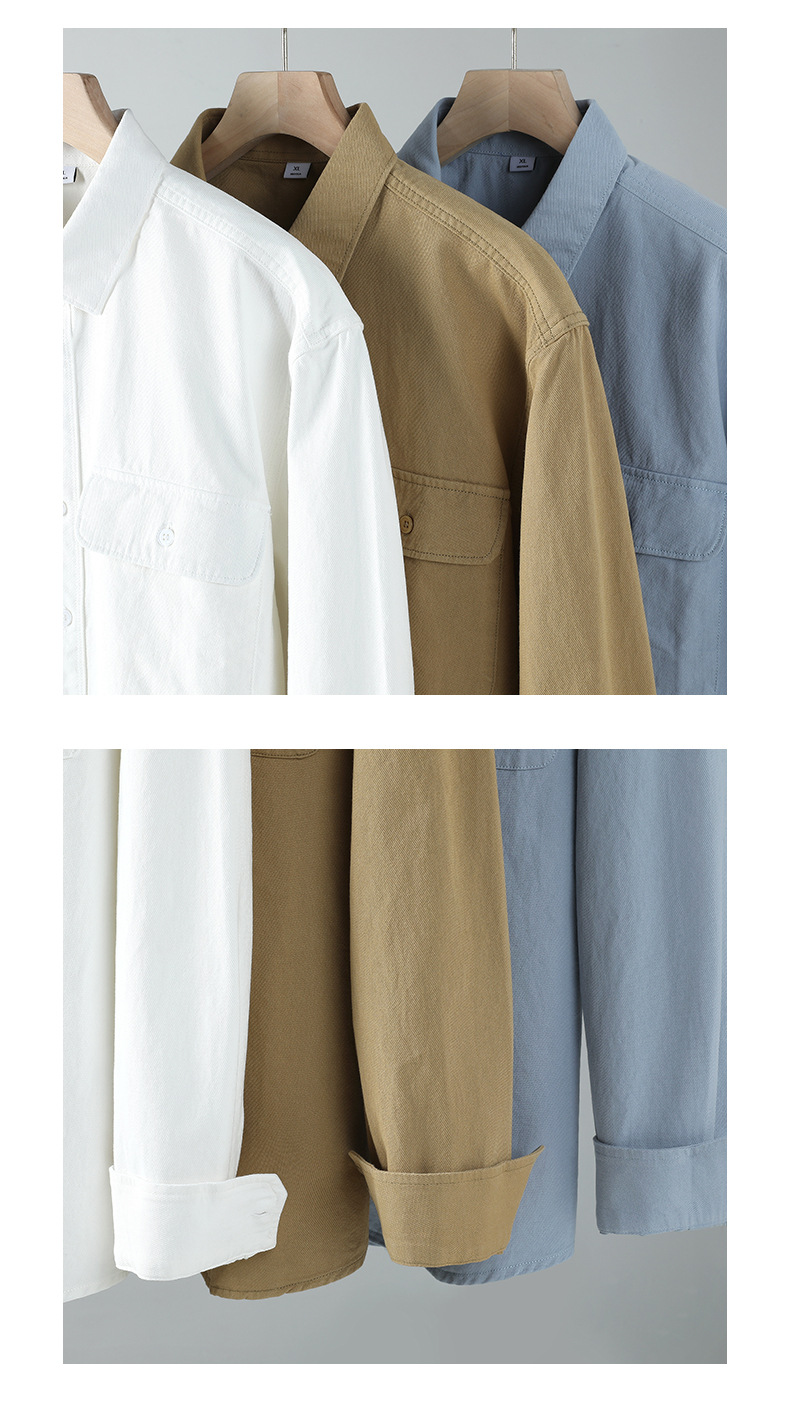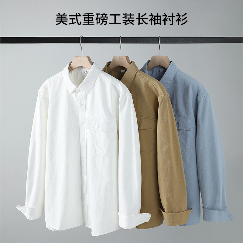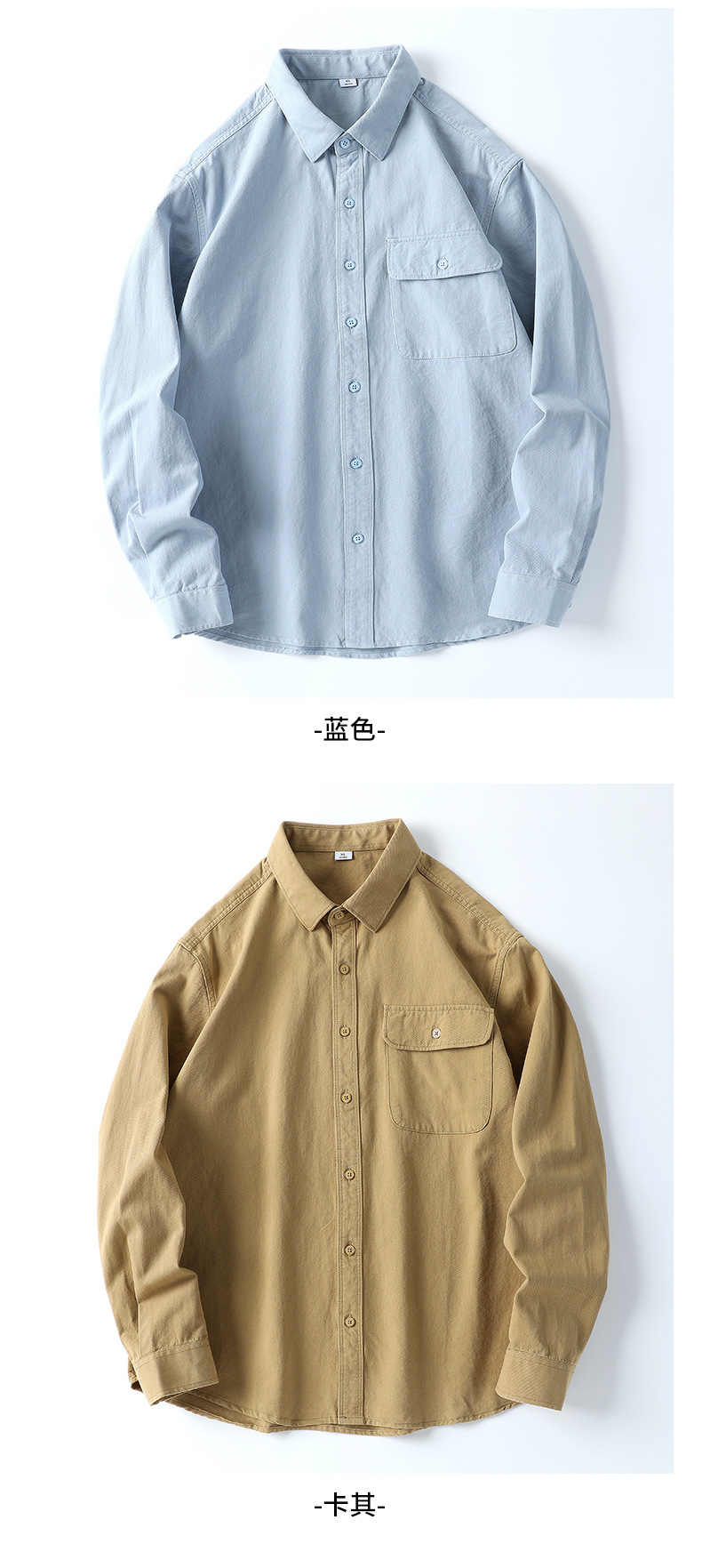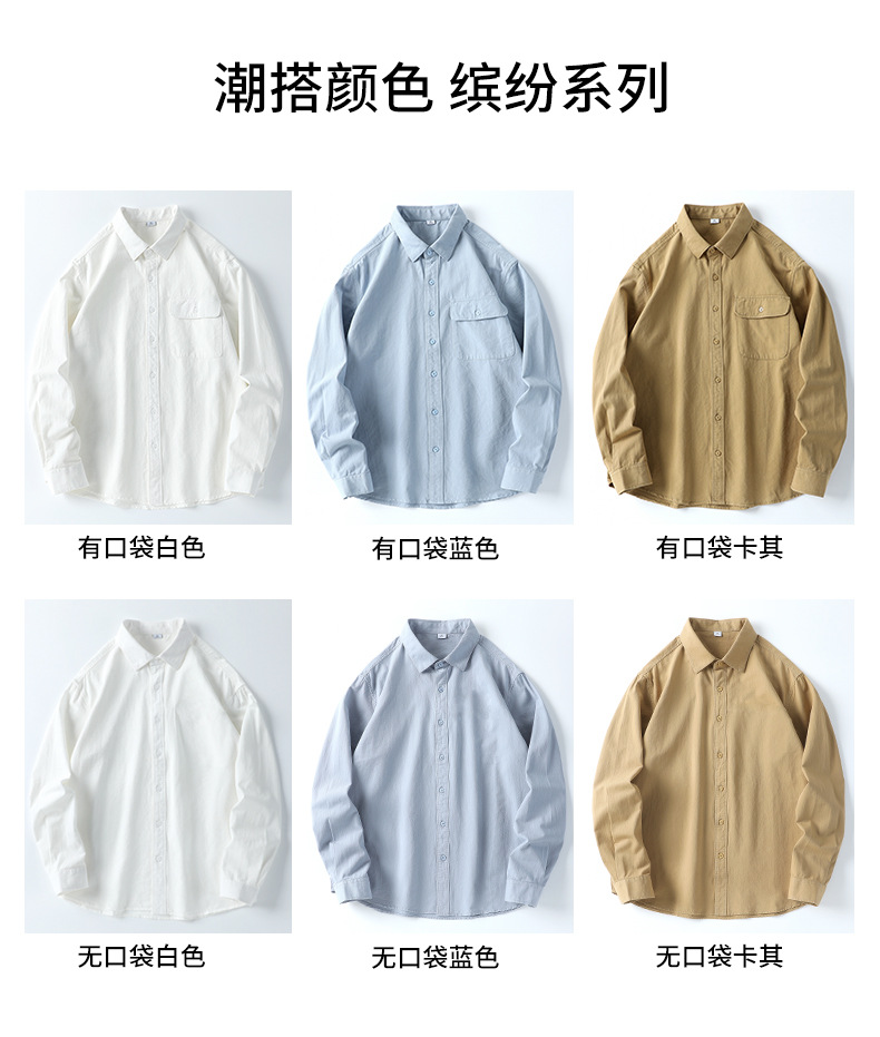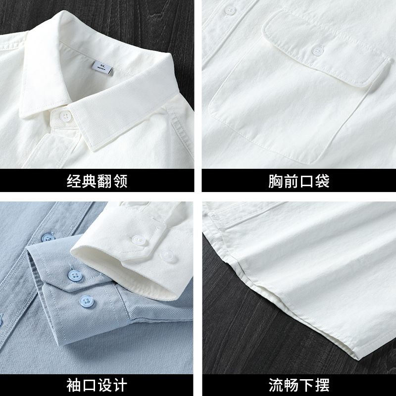 长袖衬衫男士修身寸衫纯棉宽松休闲工装衬衣春秋季外套百搭上衣服