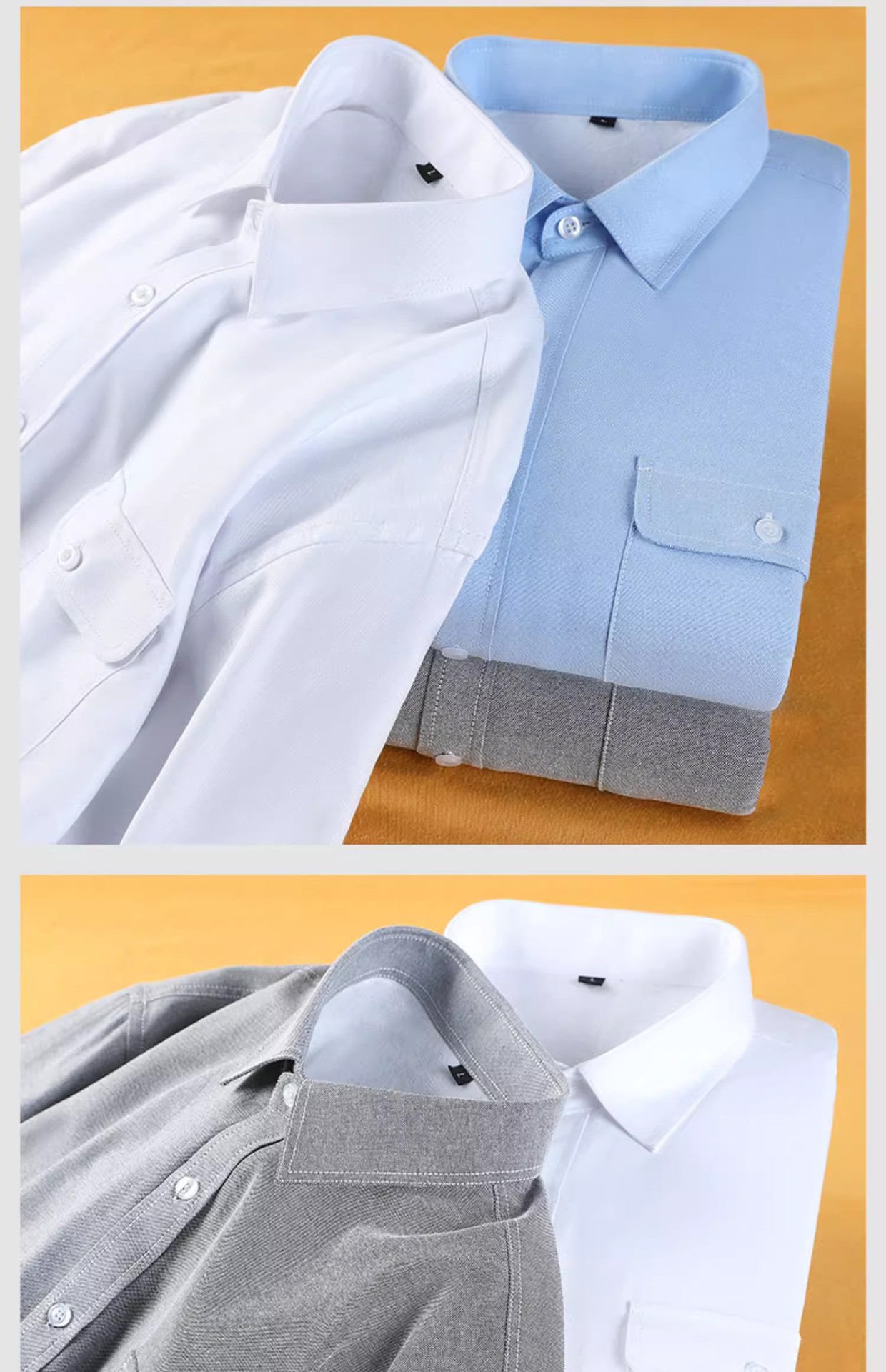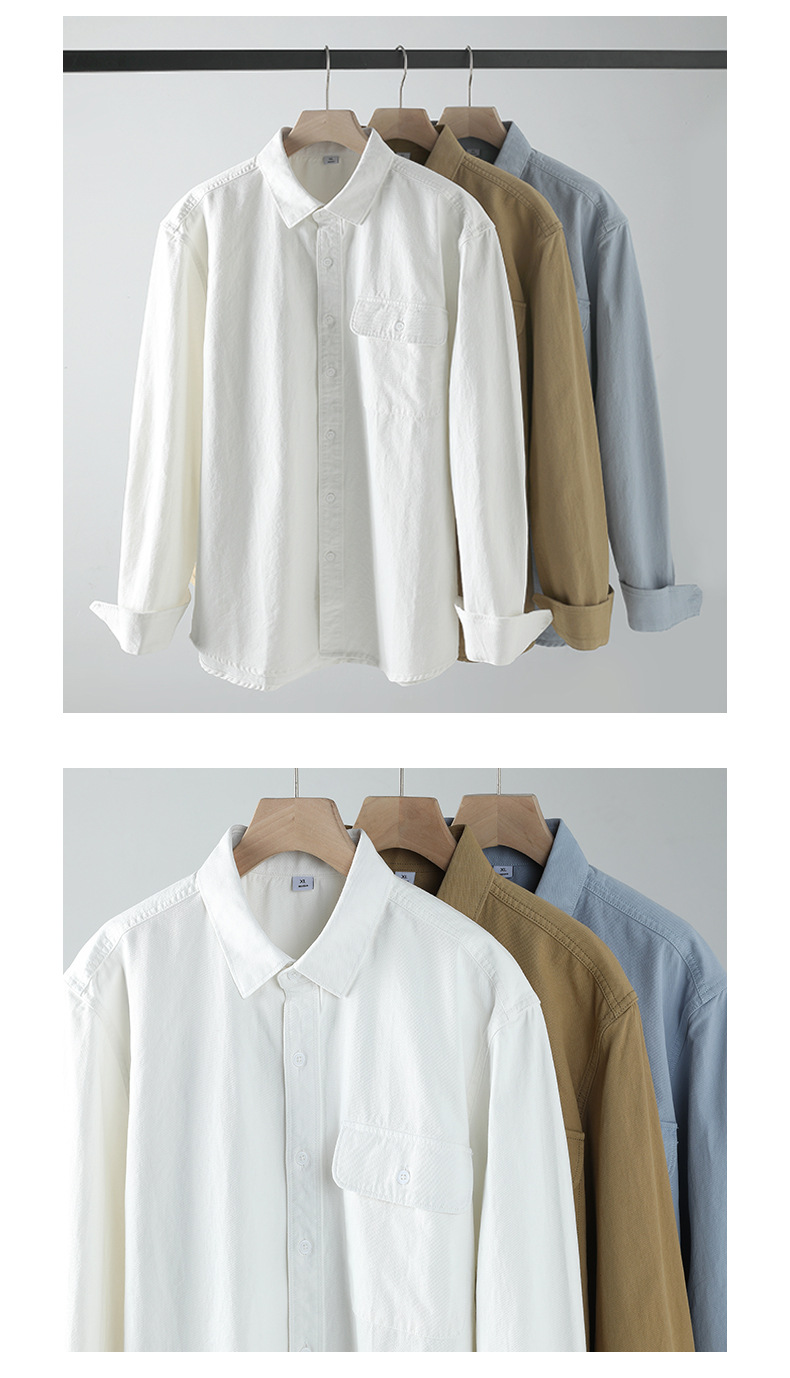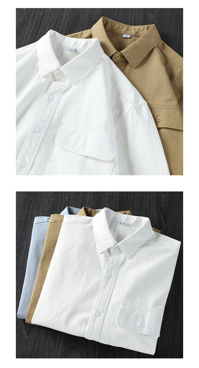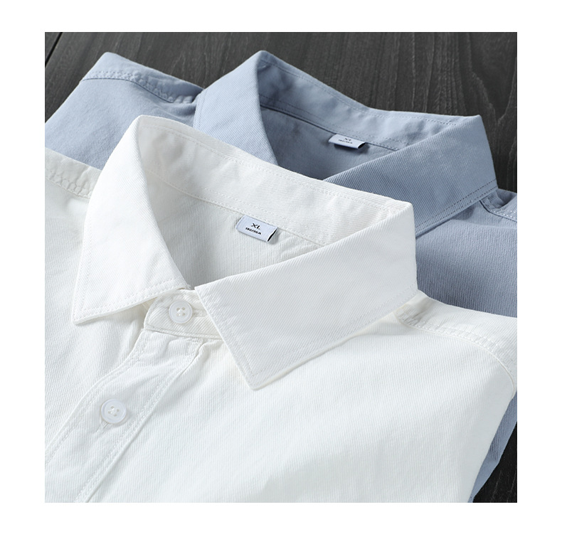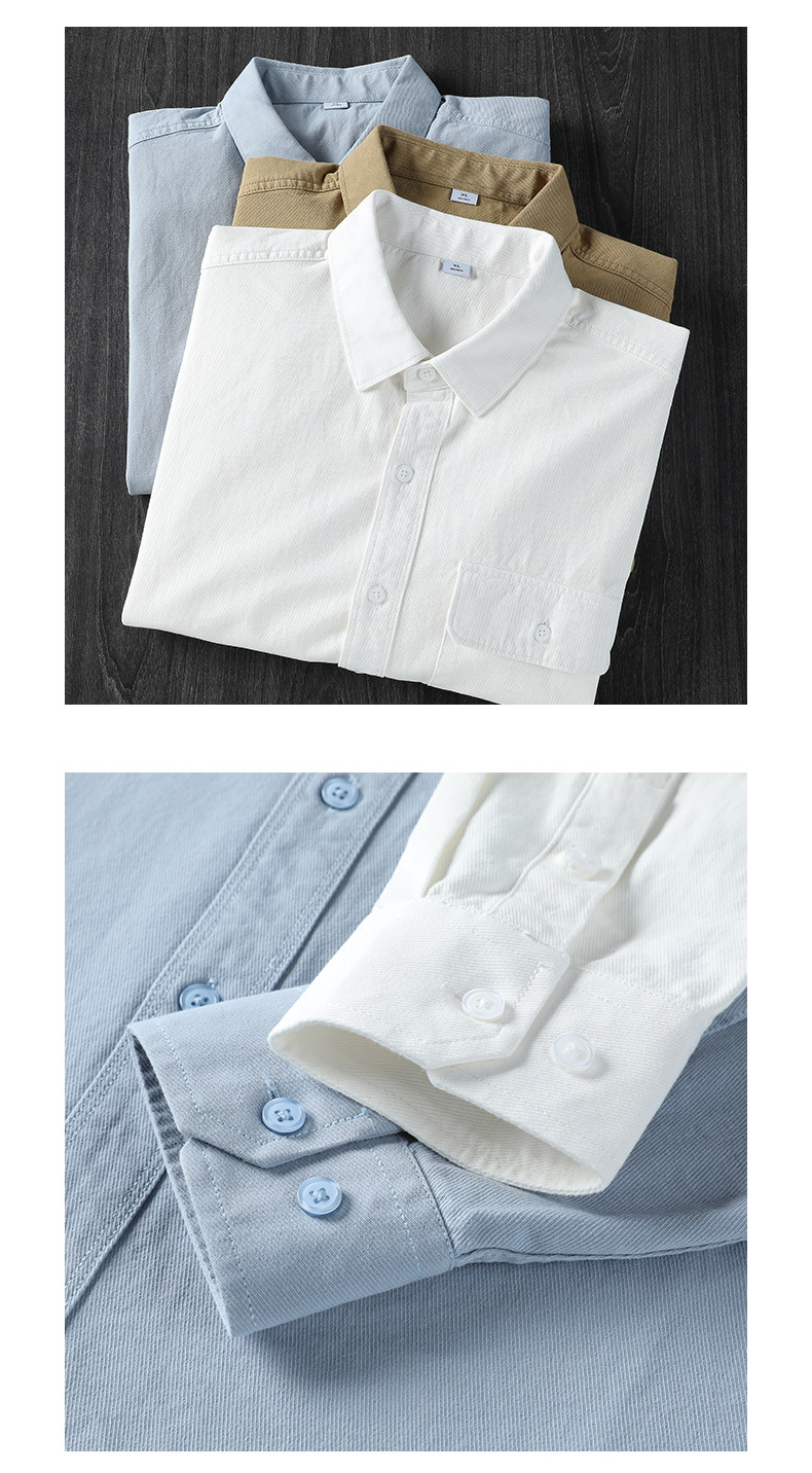 长袖衬衫男士修身寸衫纯棉宽松休闲工装衬衣春秋季外套百搭上衣服