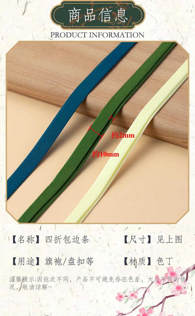恒美合旗袍包边条辅料1cm滚边条服装镶边四折压边仿真丝免烫织带