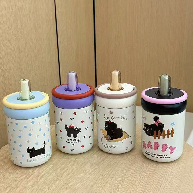 小巧简约可爱小猫保温杯高级感精致便携水杯不锈钢随手喝水杯子