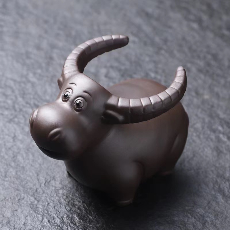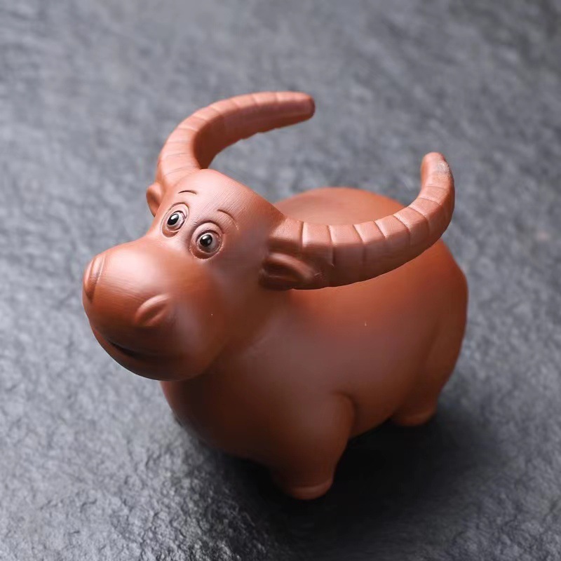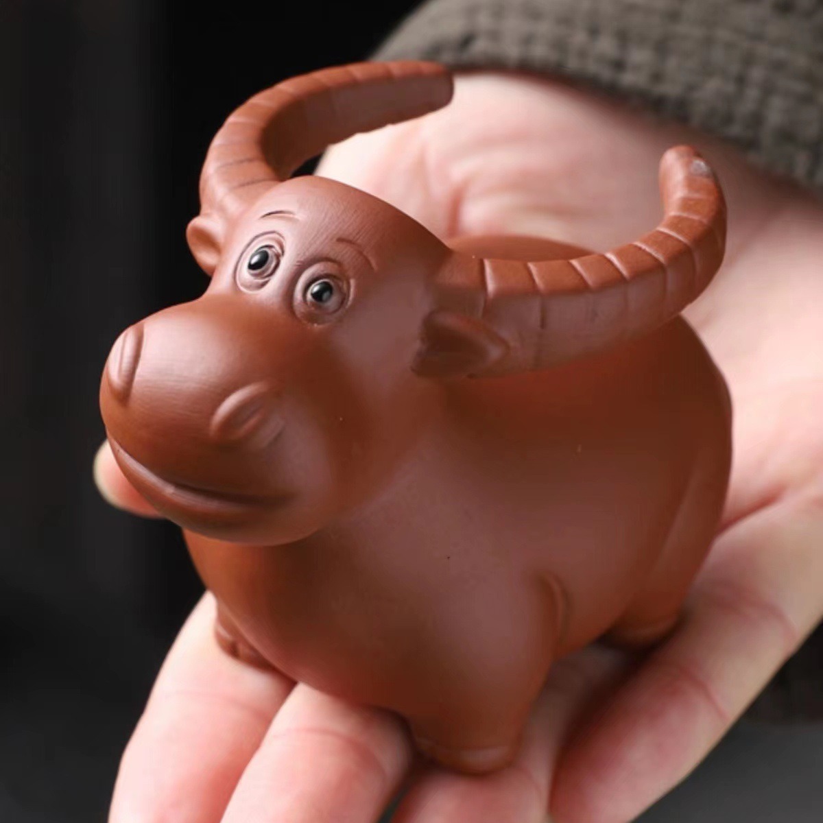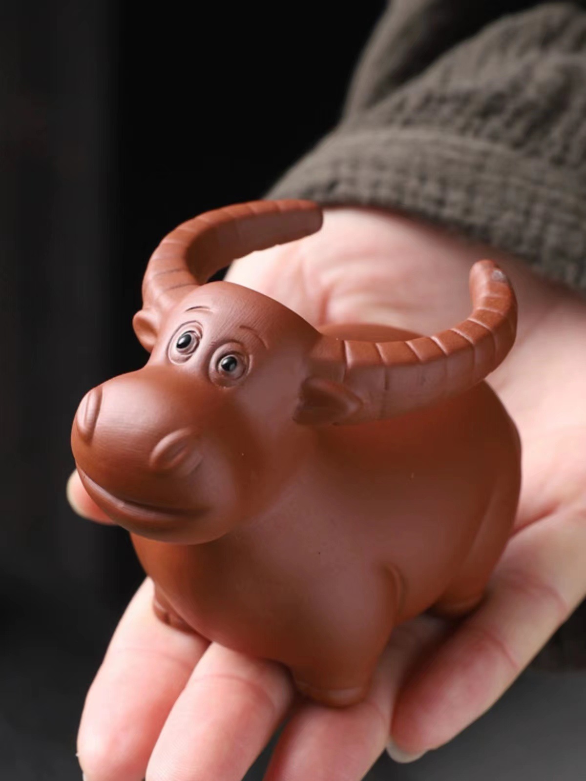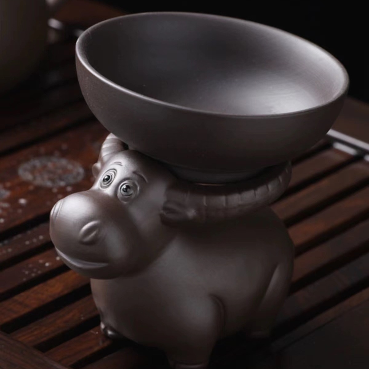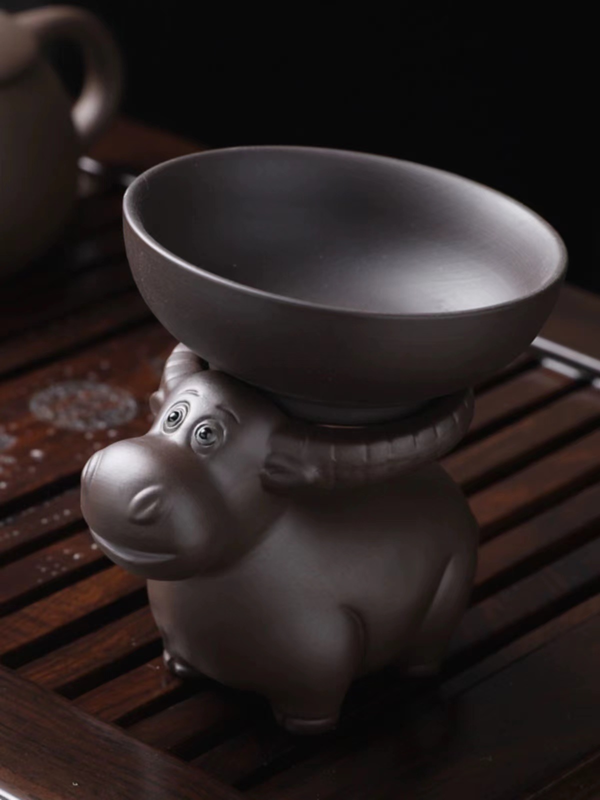 紫砂茶宠生肖牛转乾坤茶玩手工摆件茶漏托架茶盘配件茶艺茶道可养