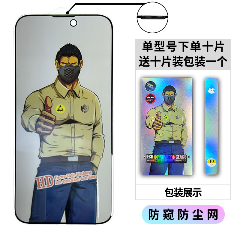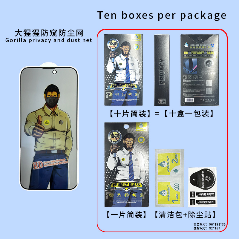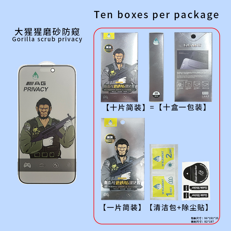 大猩猩钢化膜适用苹果17ProMax防窥iPhone16磨砂15防指纹13玻璃膜