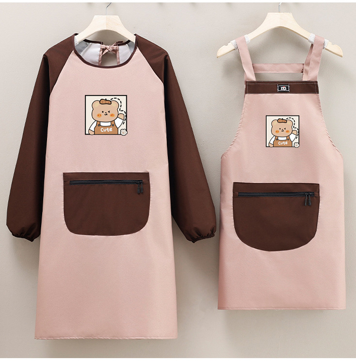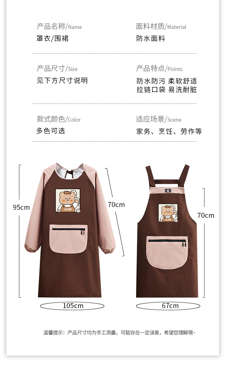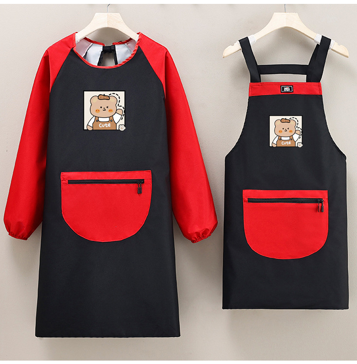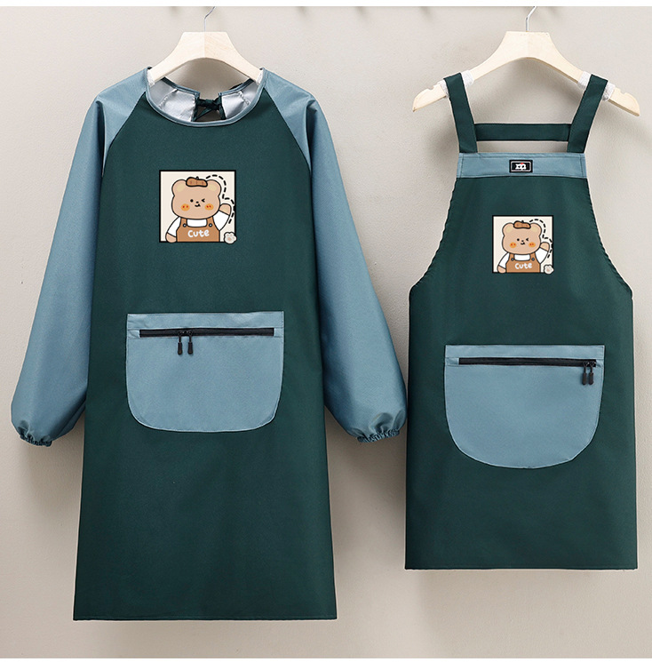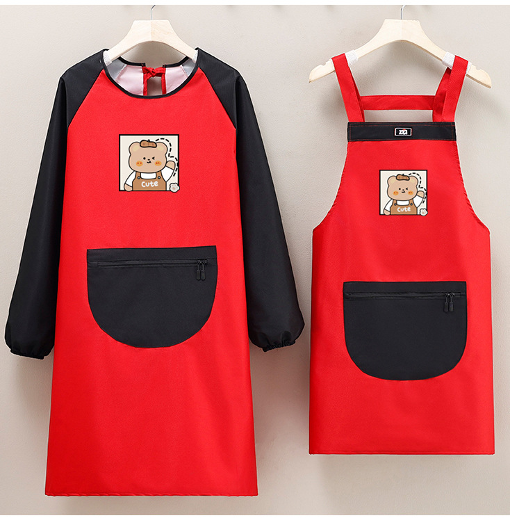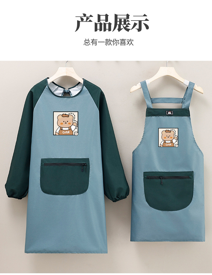 新款防水围裙厨房家用长袖防油餐厅上班免洗耐脏罩衣工作服男印字