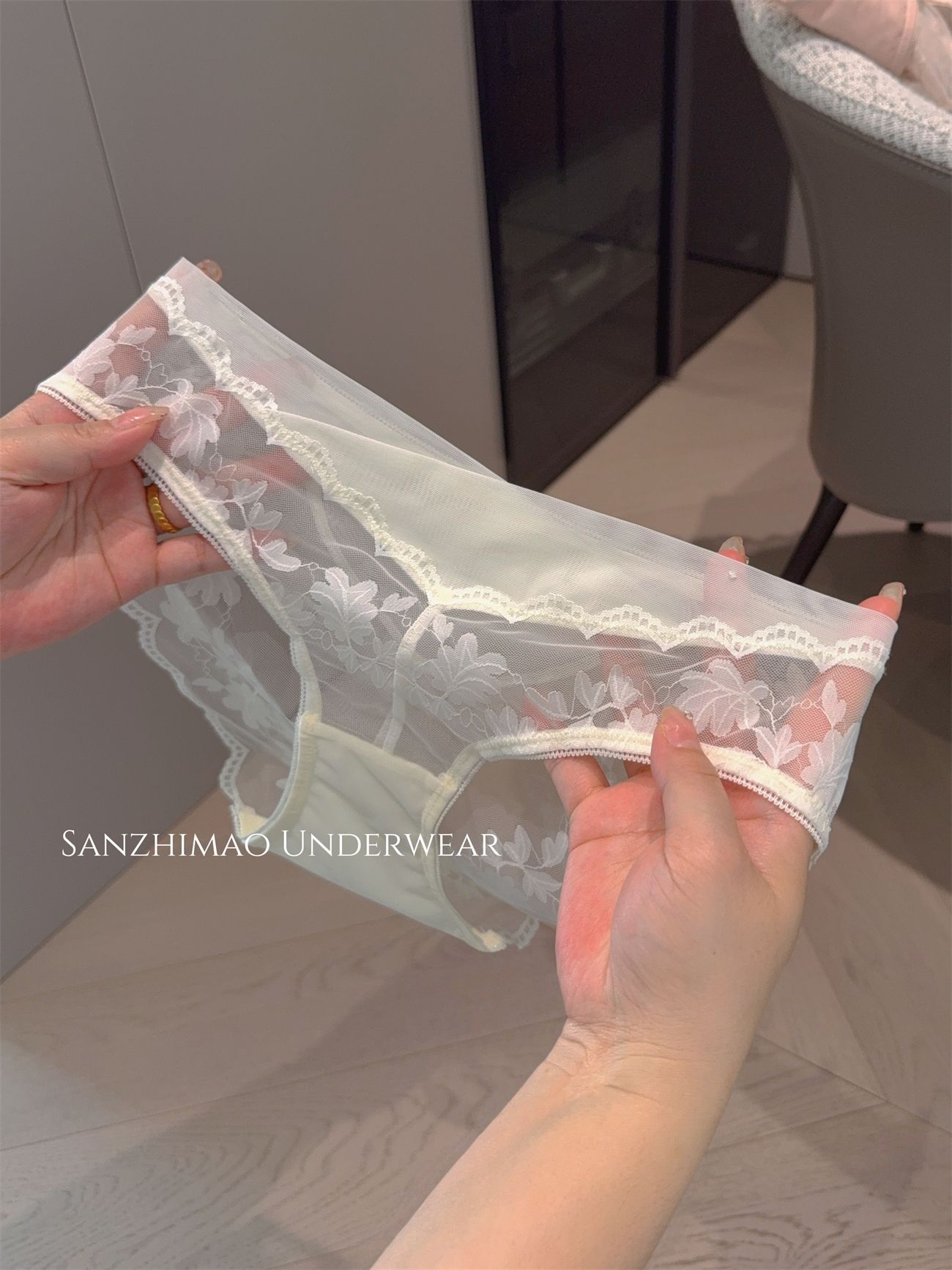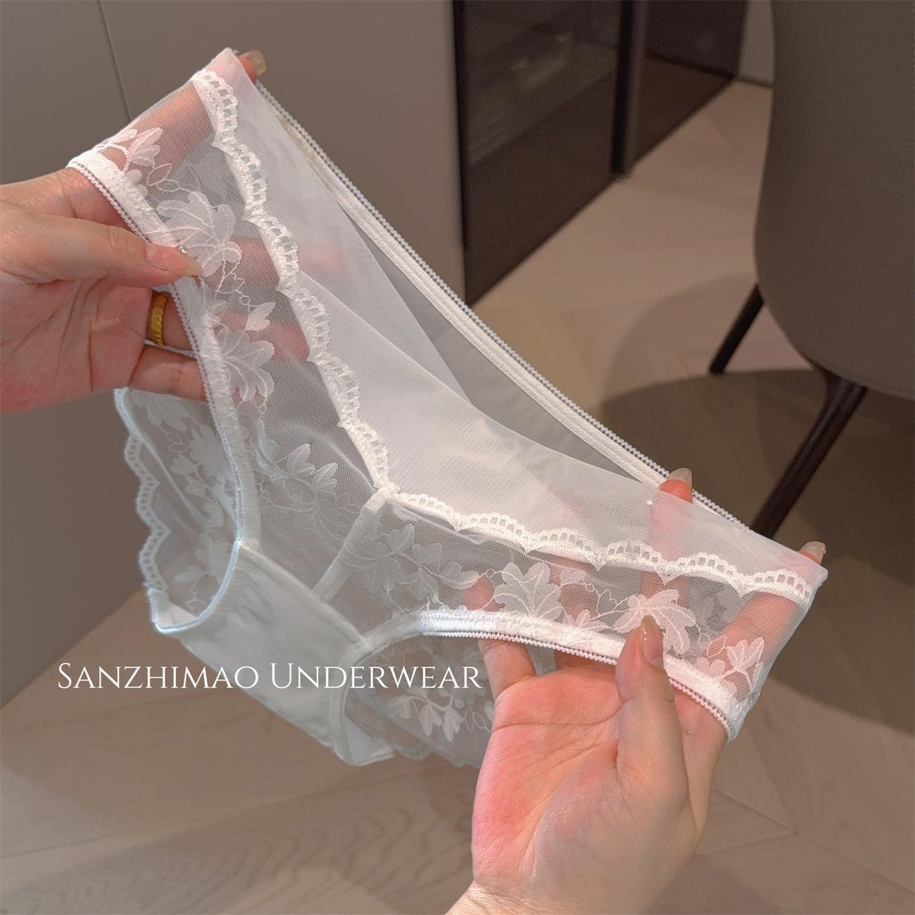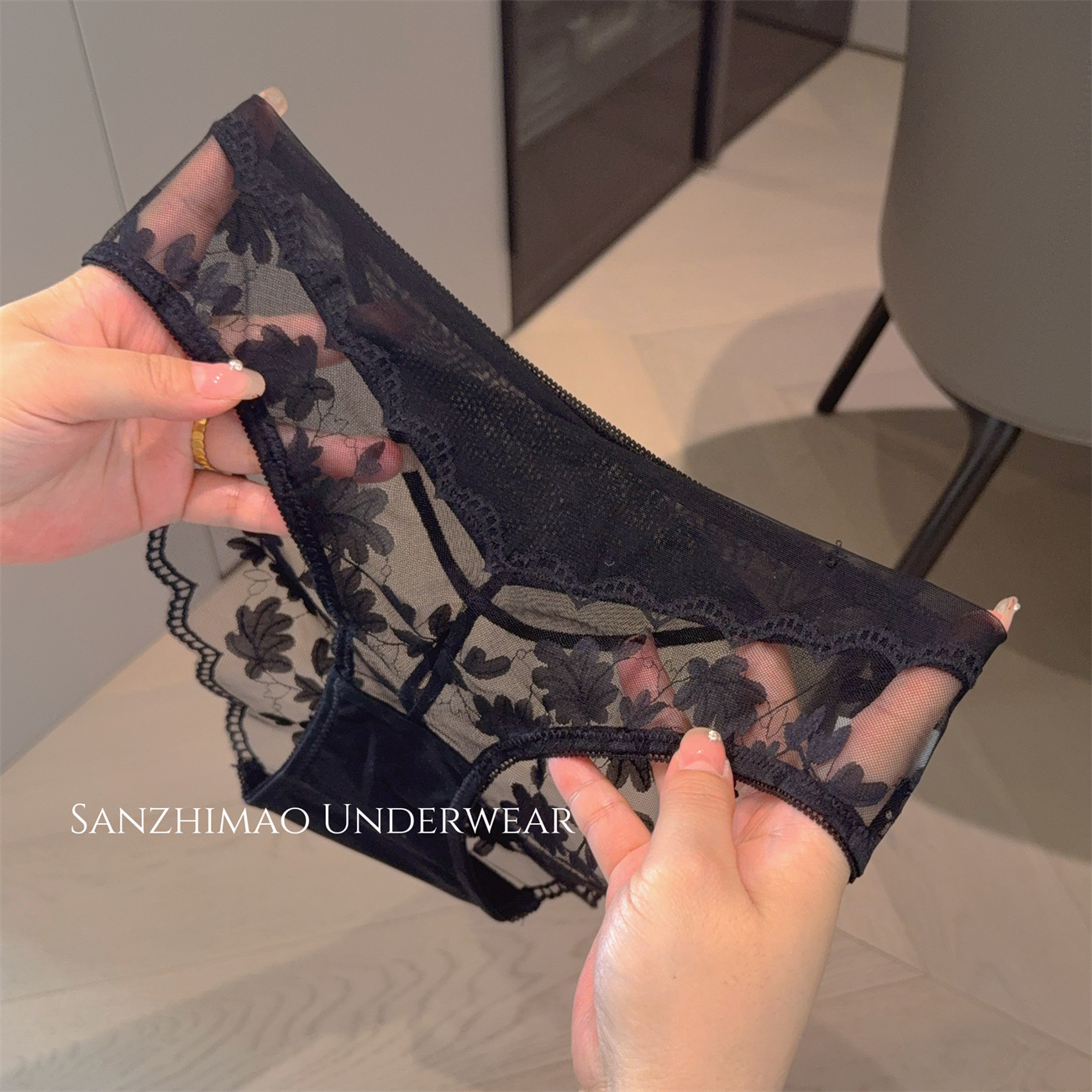 2025新款法式蕾丝女士内裤缎面镂空网纱透气全棉裆低腰女三角裤