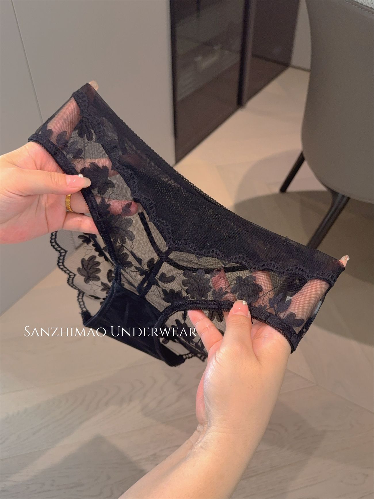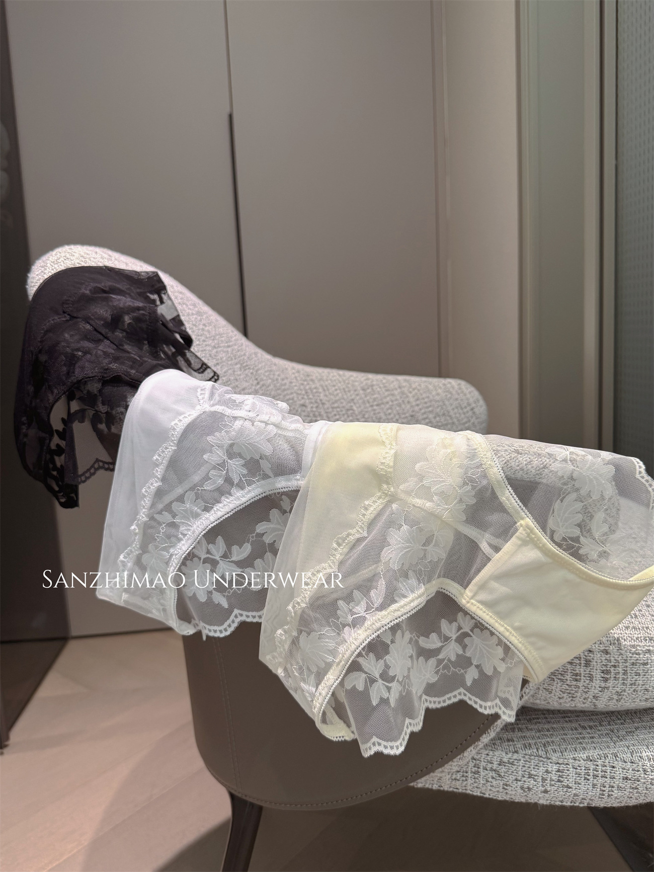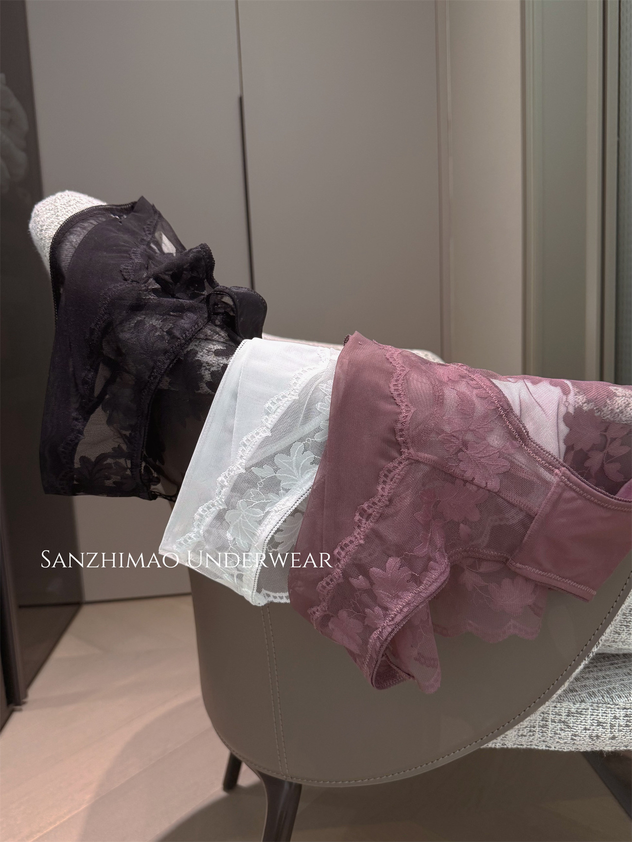 2025新款法式蕾丝女士内裤缎面镂空网纱透气全棉裆低腰女三角裤