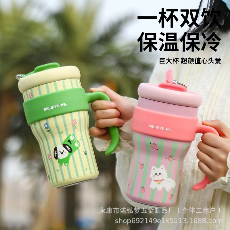 316不锈钢800ML保温杯真空汽车杯便携手柄吸管杯卡通杯大容量水壶