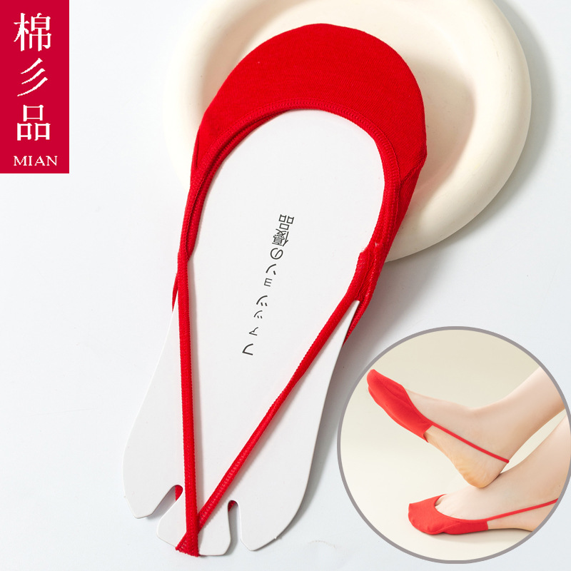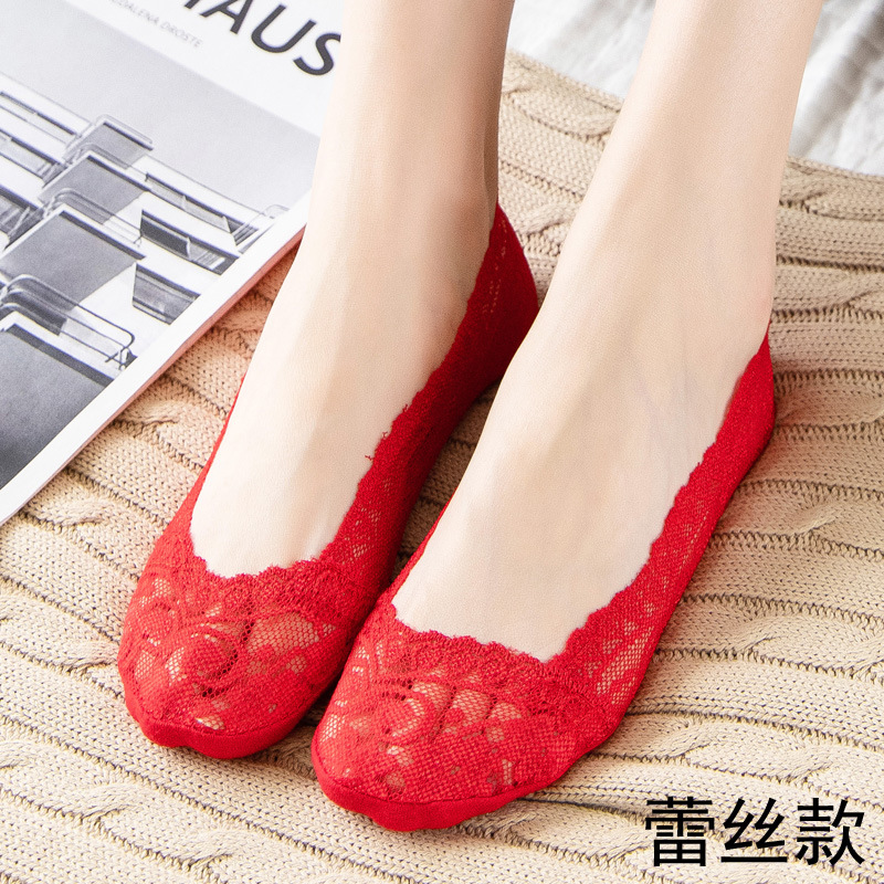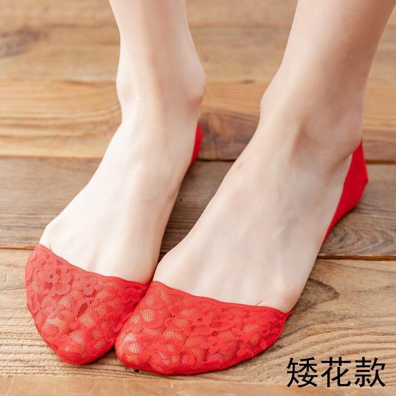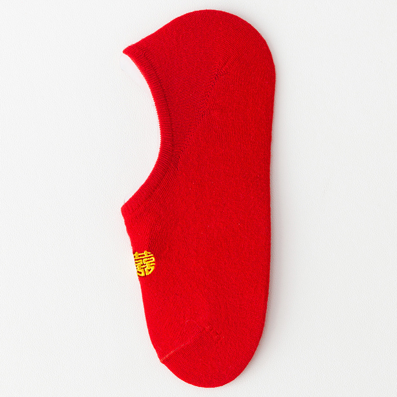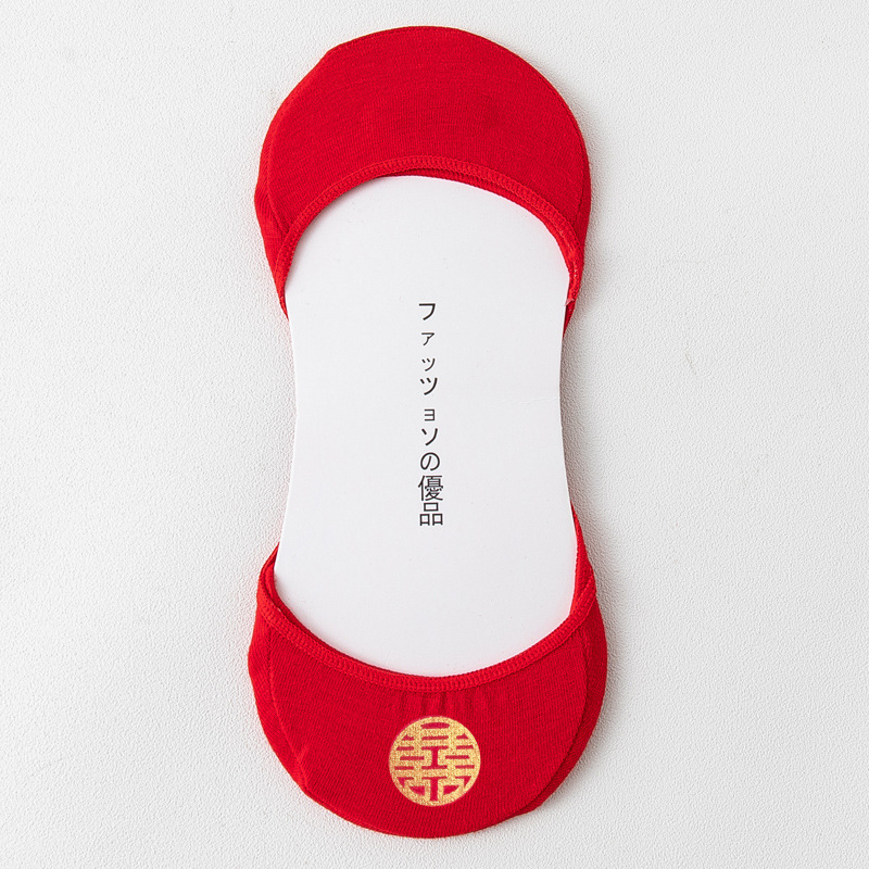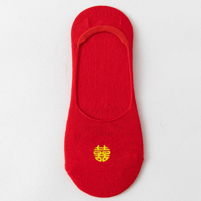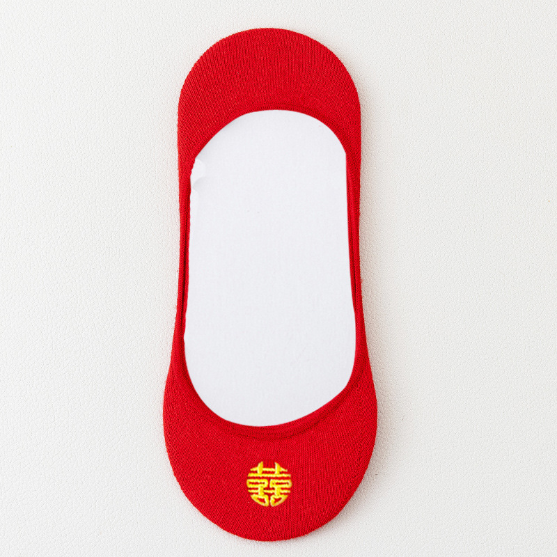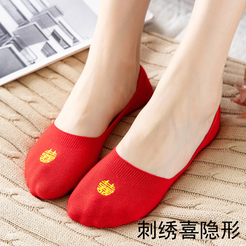 结婚女袜喜庆大红色船袜高跟鞋专用隐形袜红袜子本命年女士浅口棉