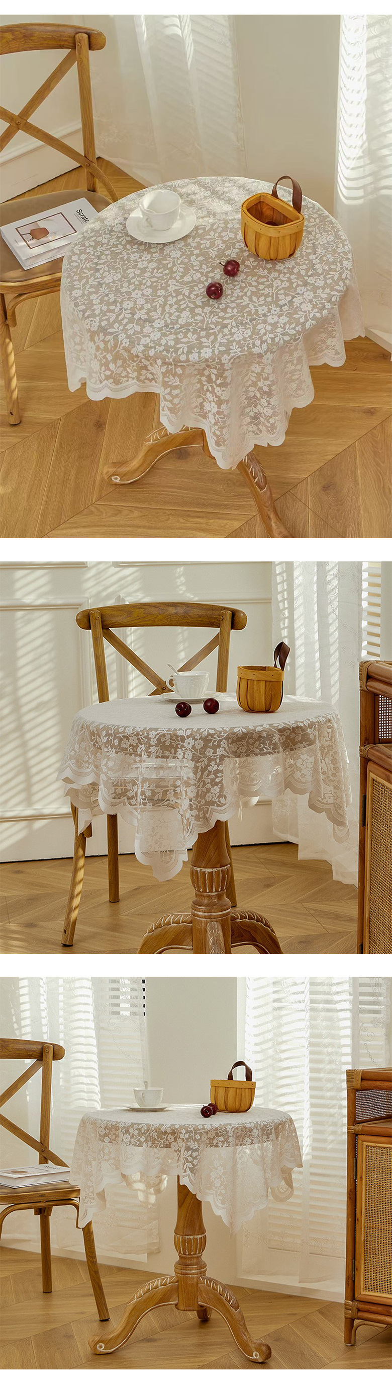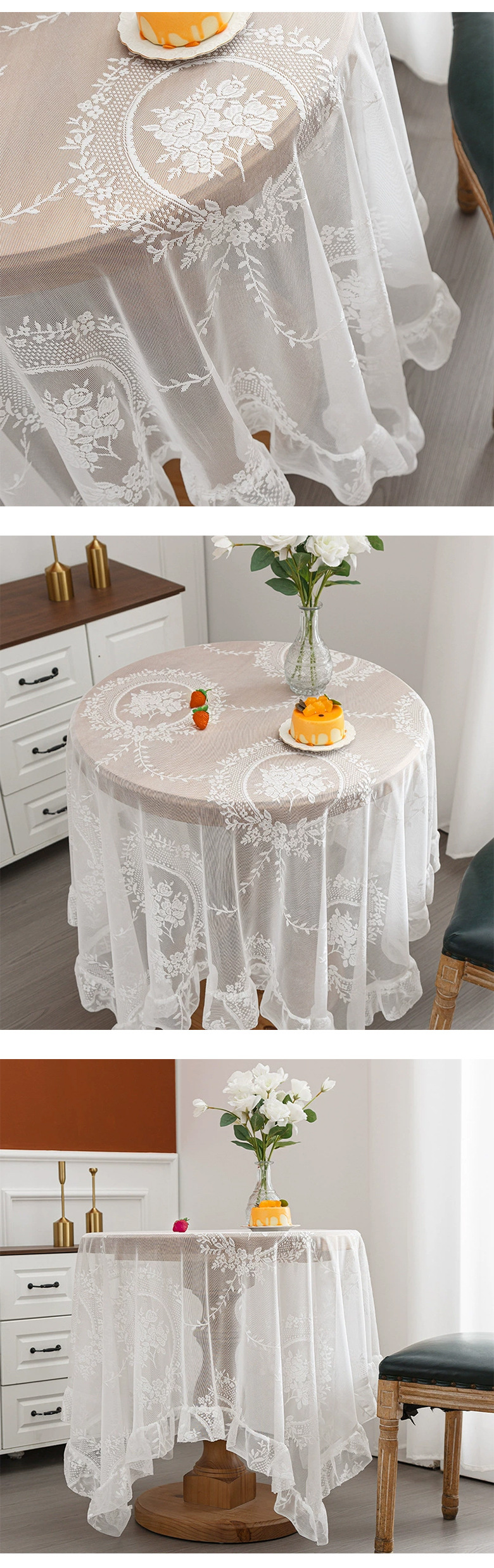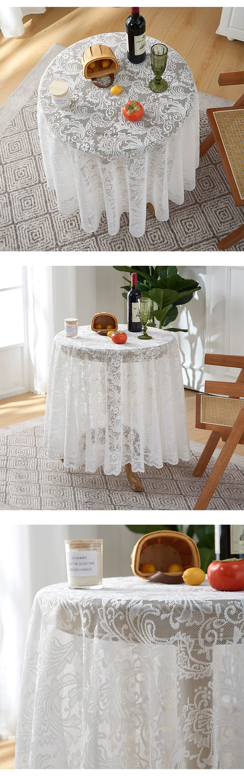 小户型空间桌布白色太阳花蕾丝针织家用小圆桌布学生宿舍桌布批发