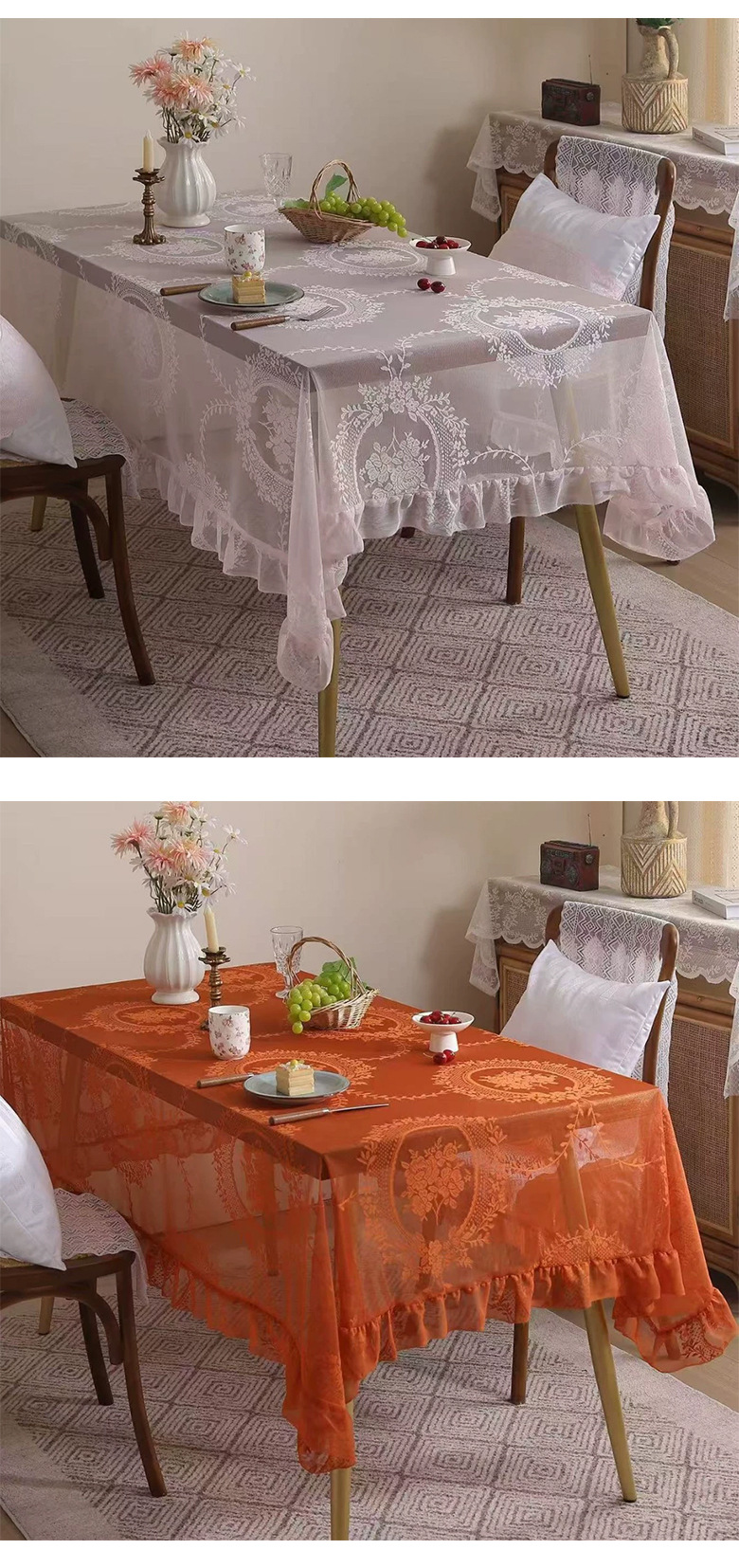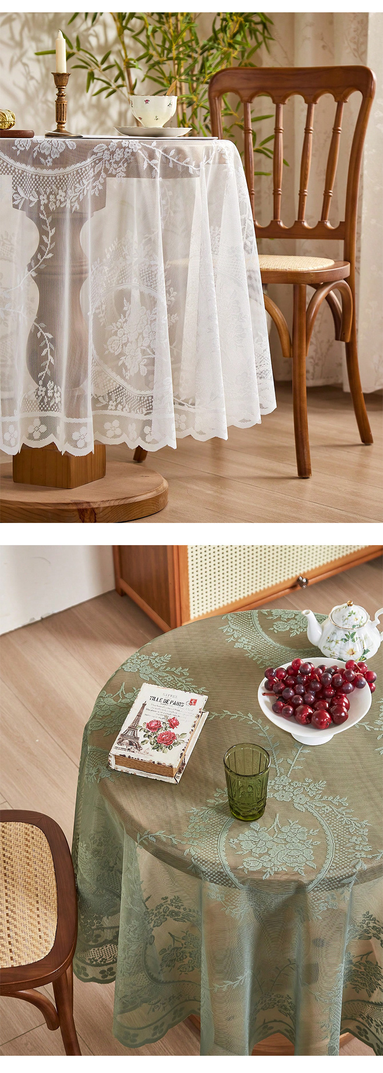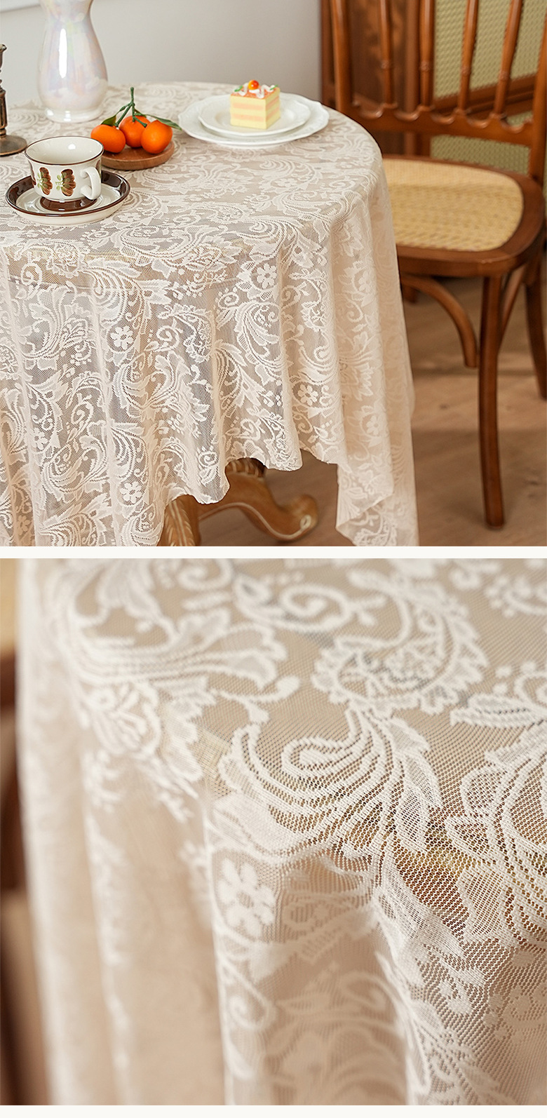 小户型空间桌布白色太阳花蕾丝针织家用小圆桌布学生宿舍桌布批发