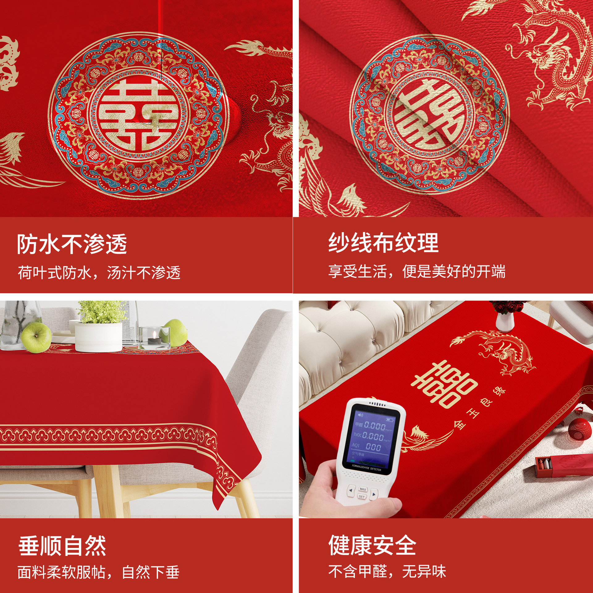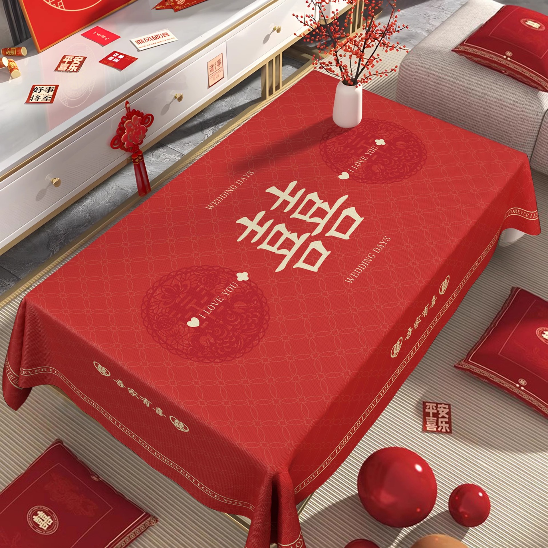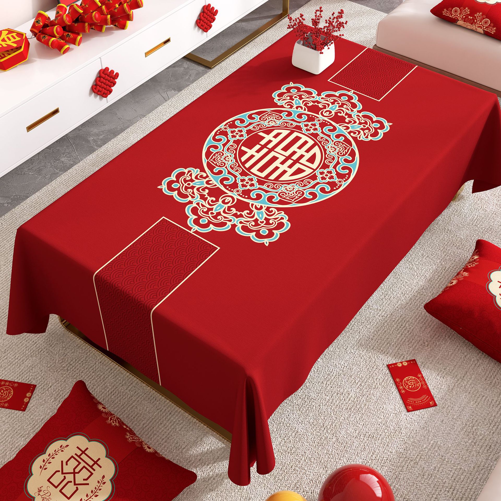 结婚专用红色氛围感客厅茶几垫子防水防油桌布新款中式风家用台布