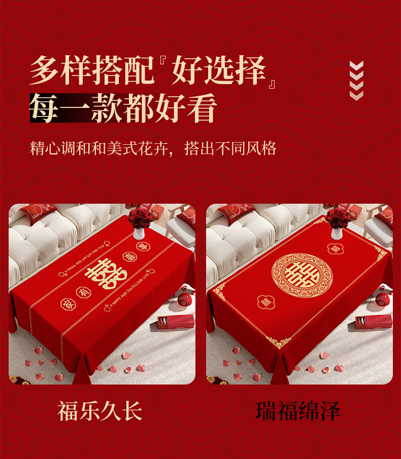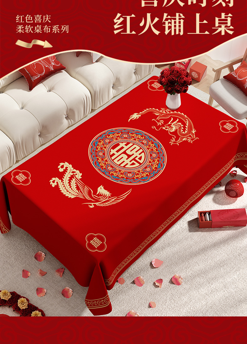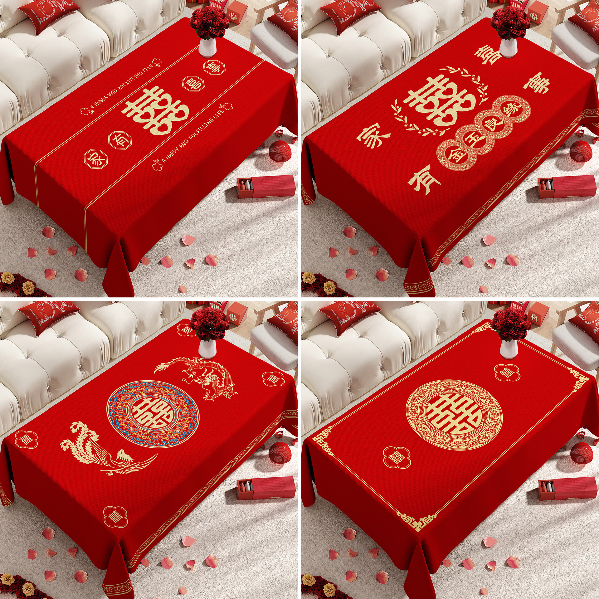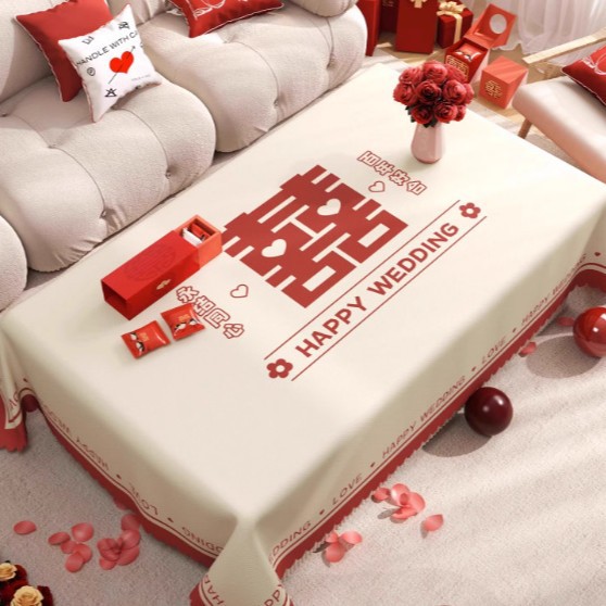 结婚专用红色氛围感客厅茶几垫子防水防油桌布新款中式风家用台布
