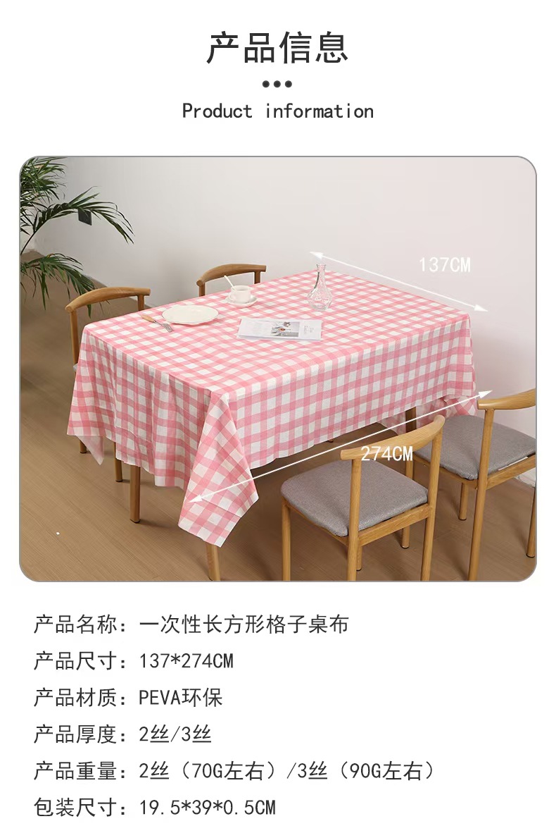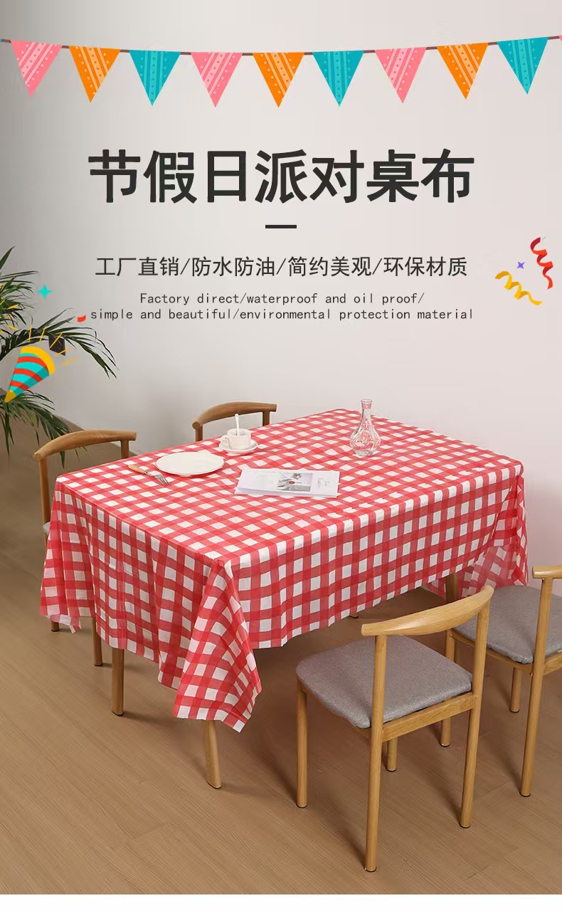 厂家直销现货批发 亚马逊格子派对桌布 一次性塑料桌布137*274