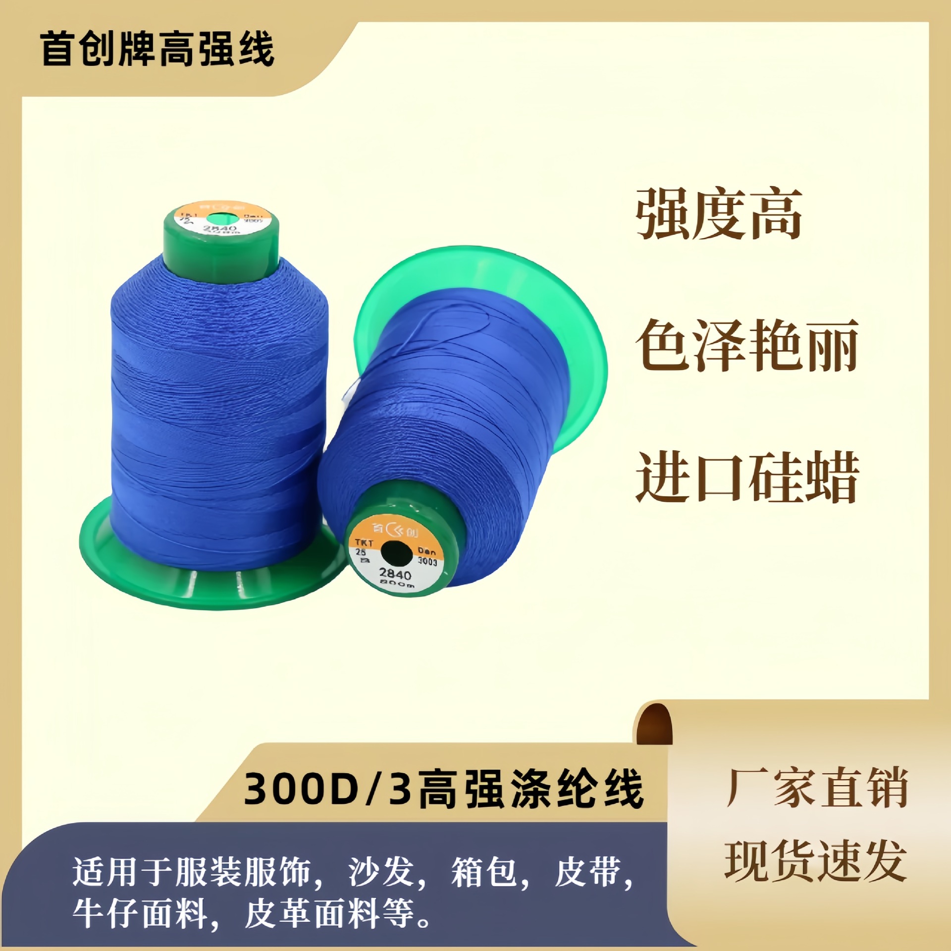 300d涤纶丝光线高强线3股服装皮革箱包粗线丝光缝纫线缝纫机专用