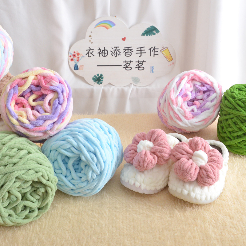 冰条线小熊围巾粗毛线手工编织DIY毛线坐垫拖鞋线粗线新款不掉毛