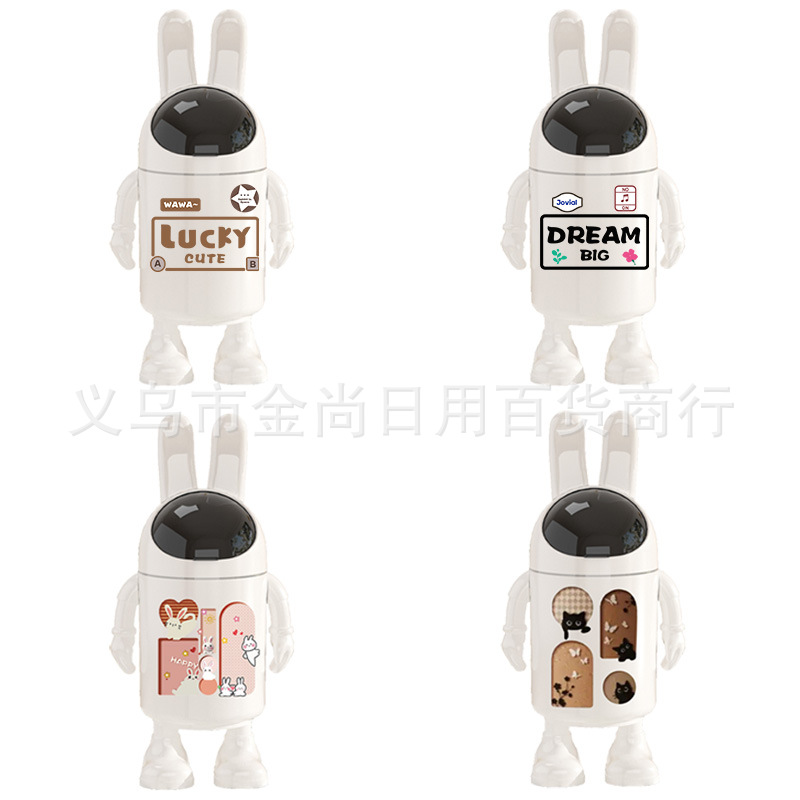 高颜值太空熊兔太空人垃圾桶家用客厅厨房卫生间轻奢翻盖垃圾桶