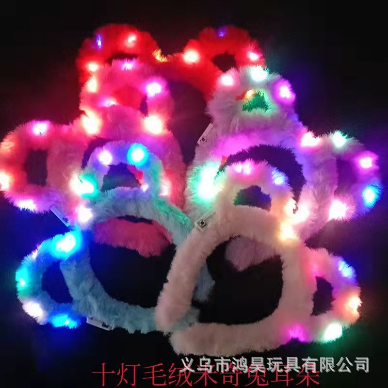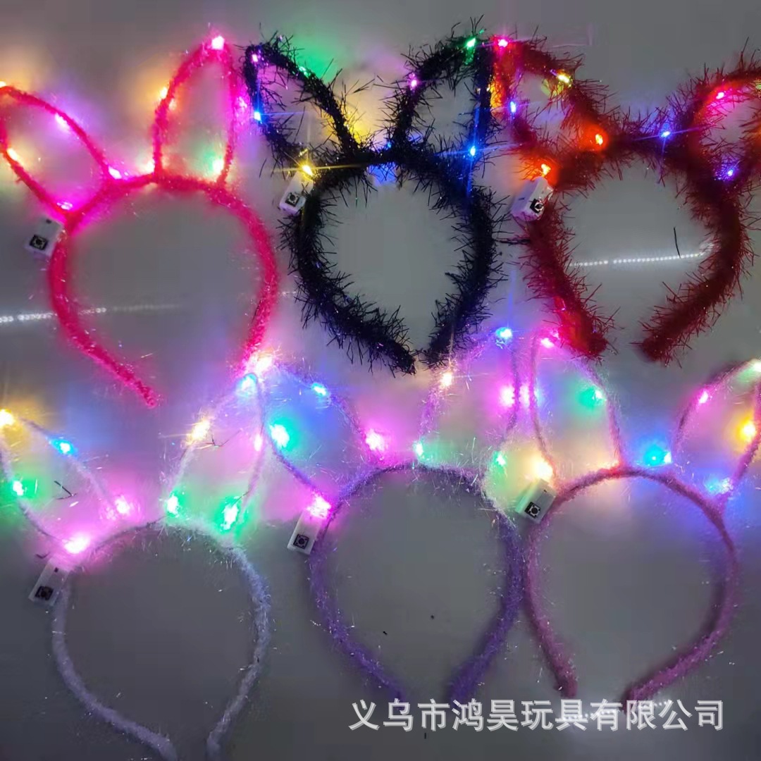 新款加长发光羽毛兔子耳朵闪光头饰头箍仙女亮灯发夹花环派对道具