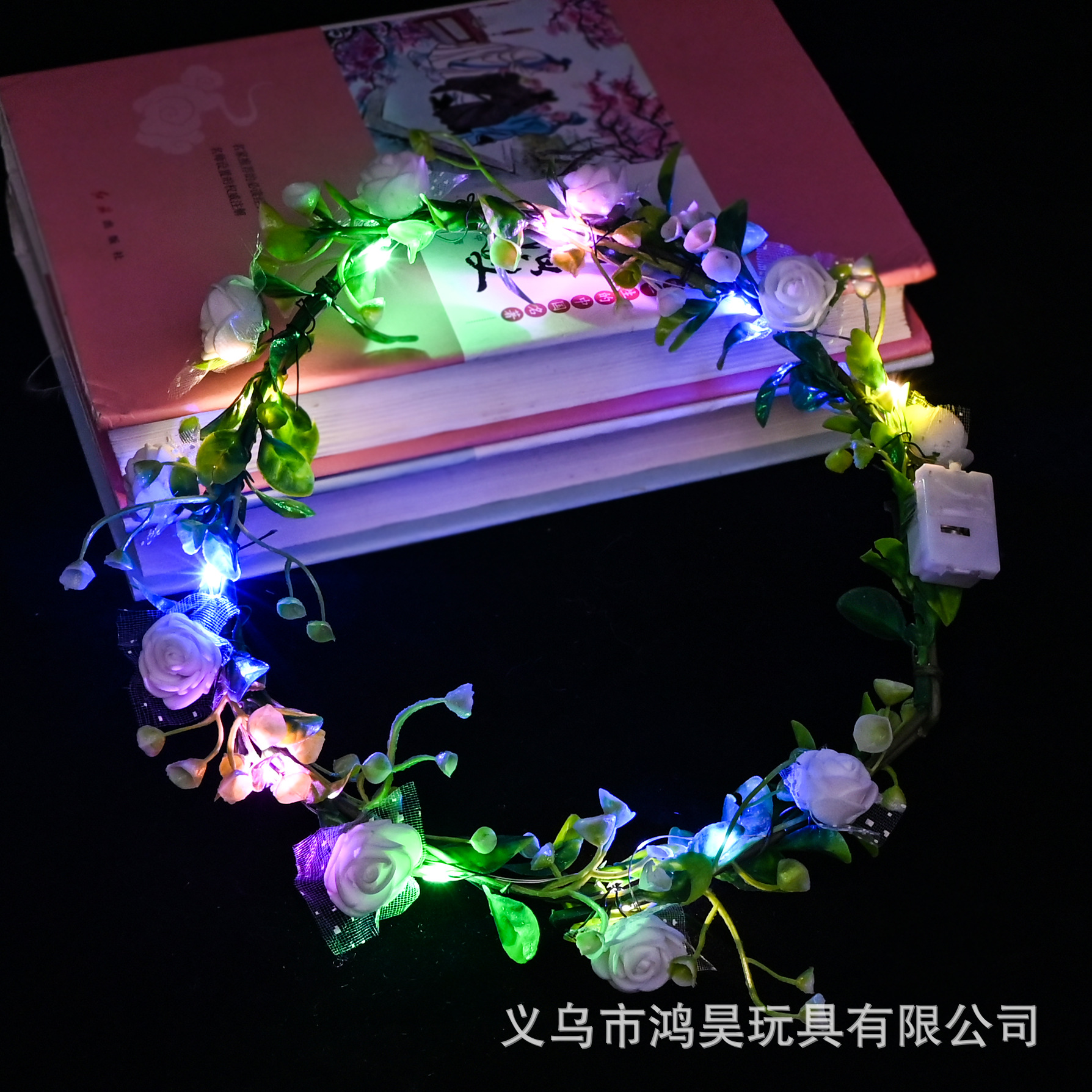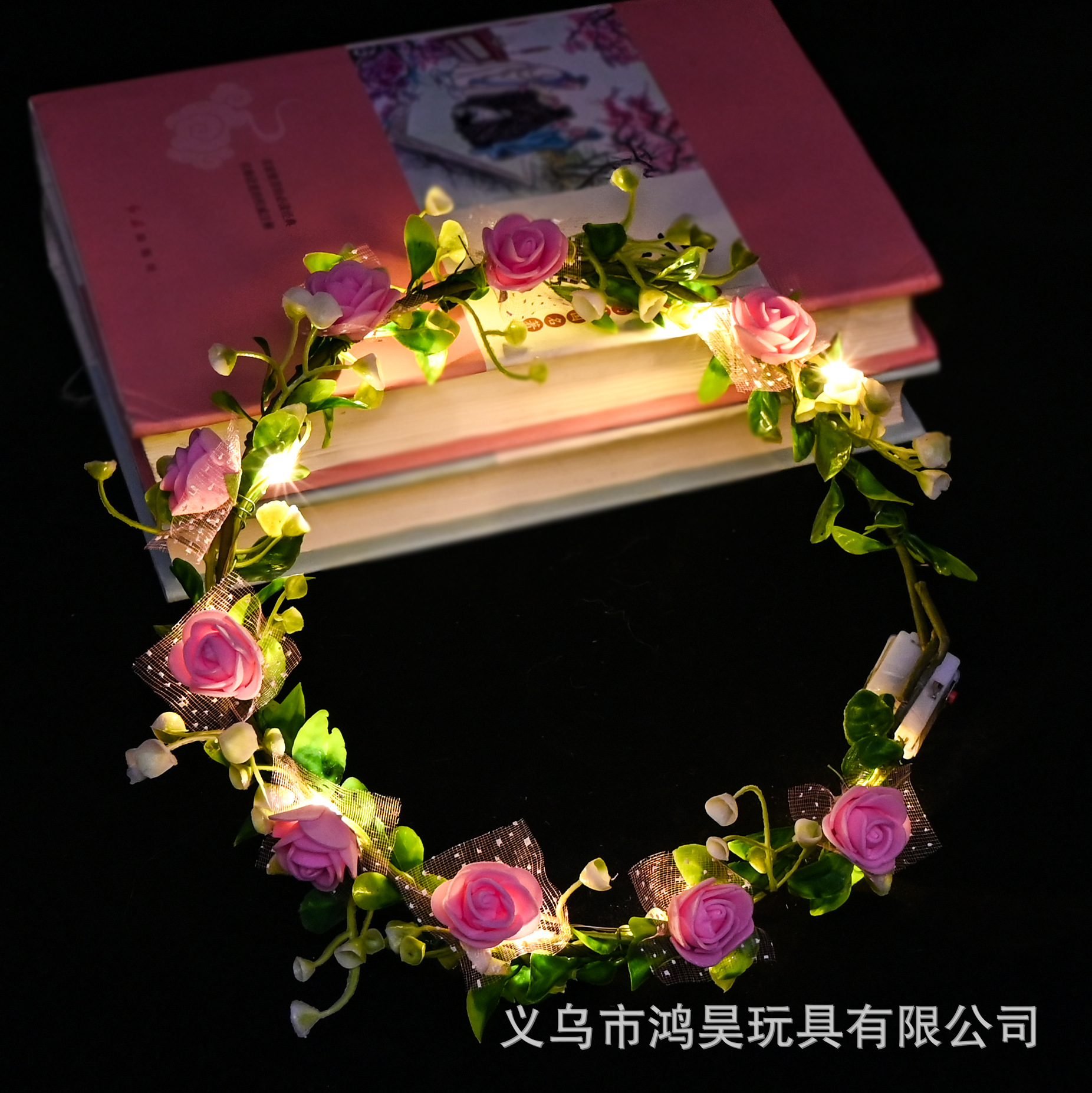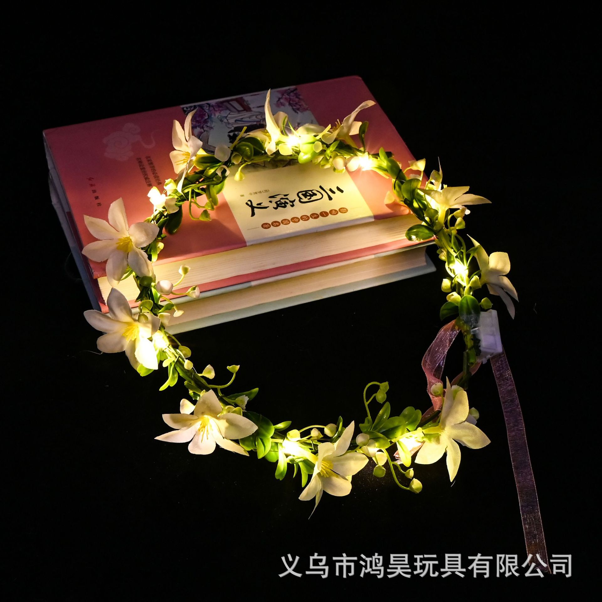 森系儿童发光闪光藤条花环超仙发箍新娘花朵头饰头箍拍照表演摆摊