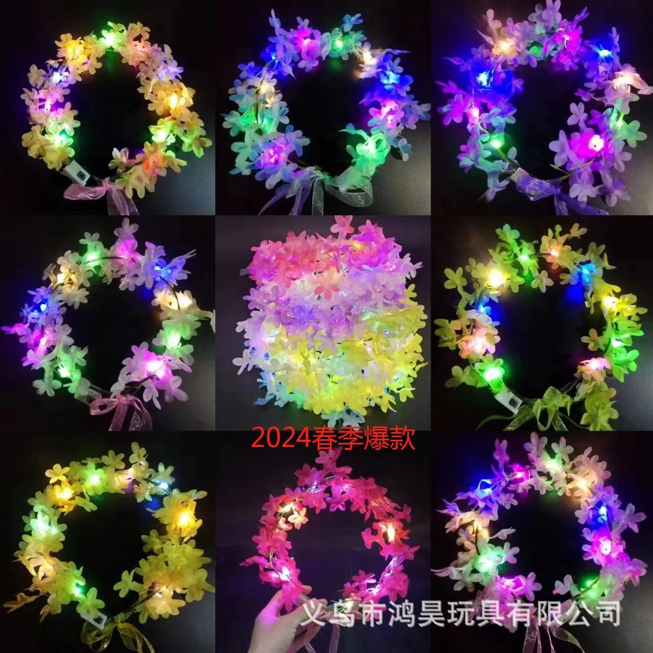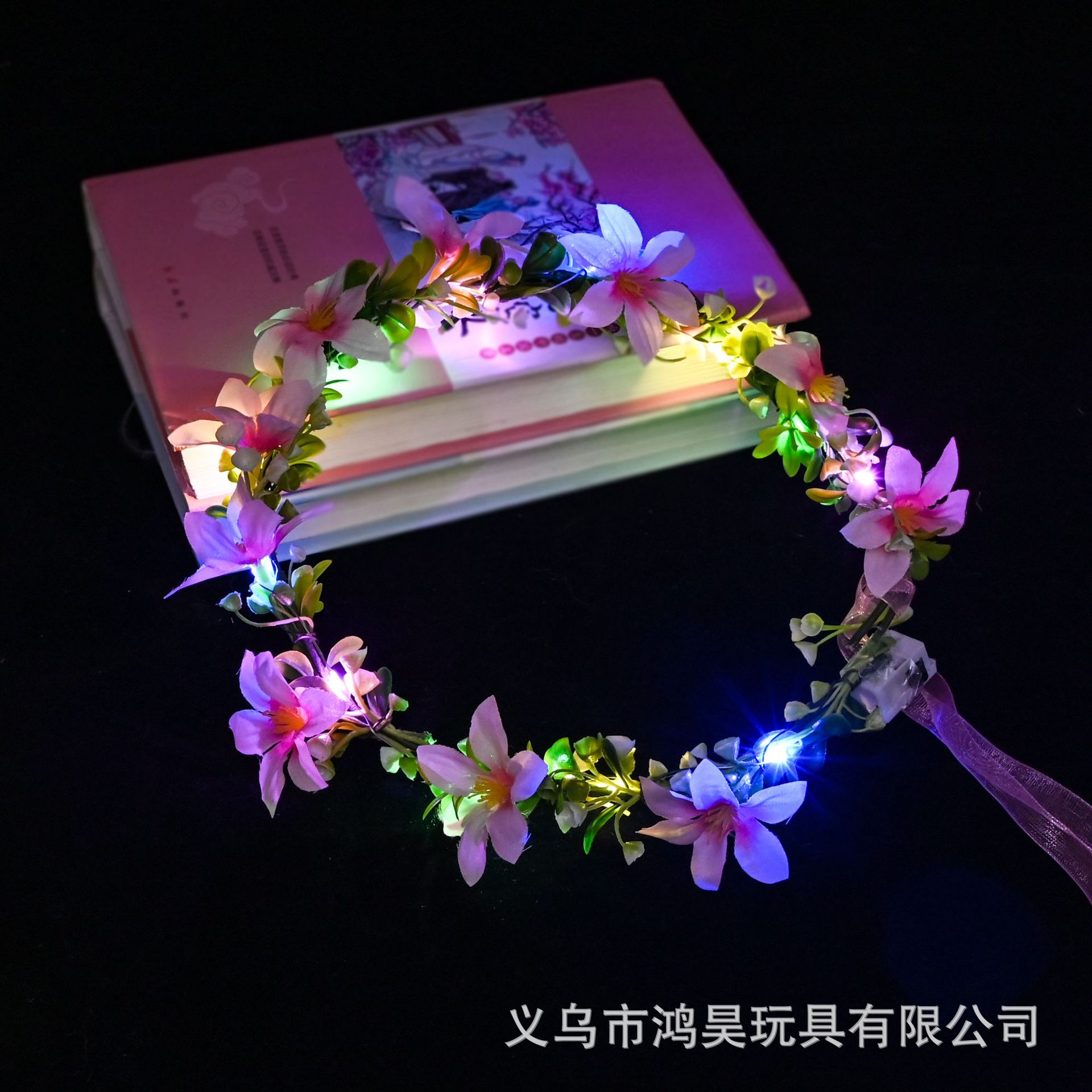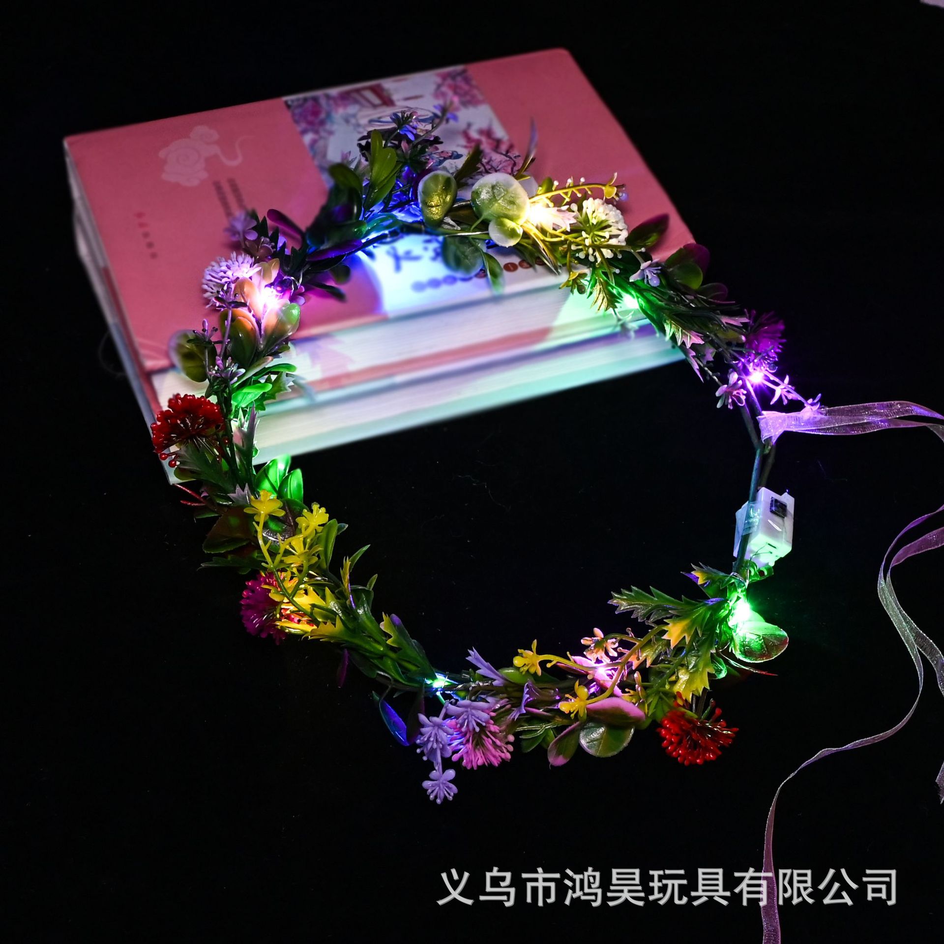 森系儿童发光闪光藤条花环超仙发箍新娘花朵头饰头箍拍照表演摆摊
